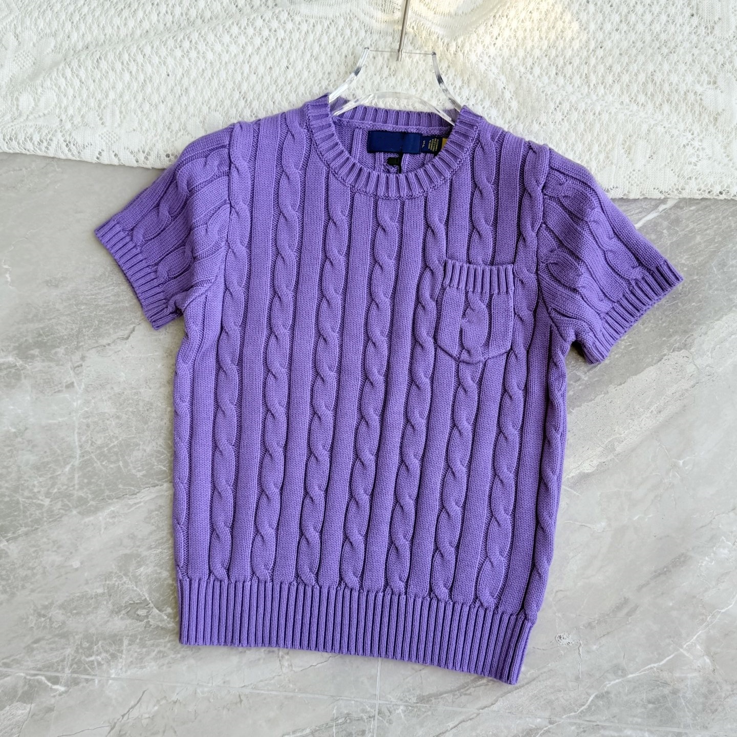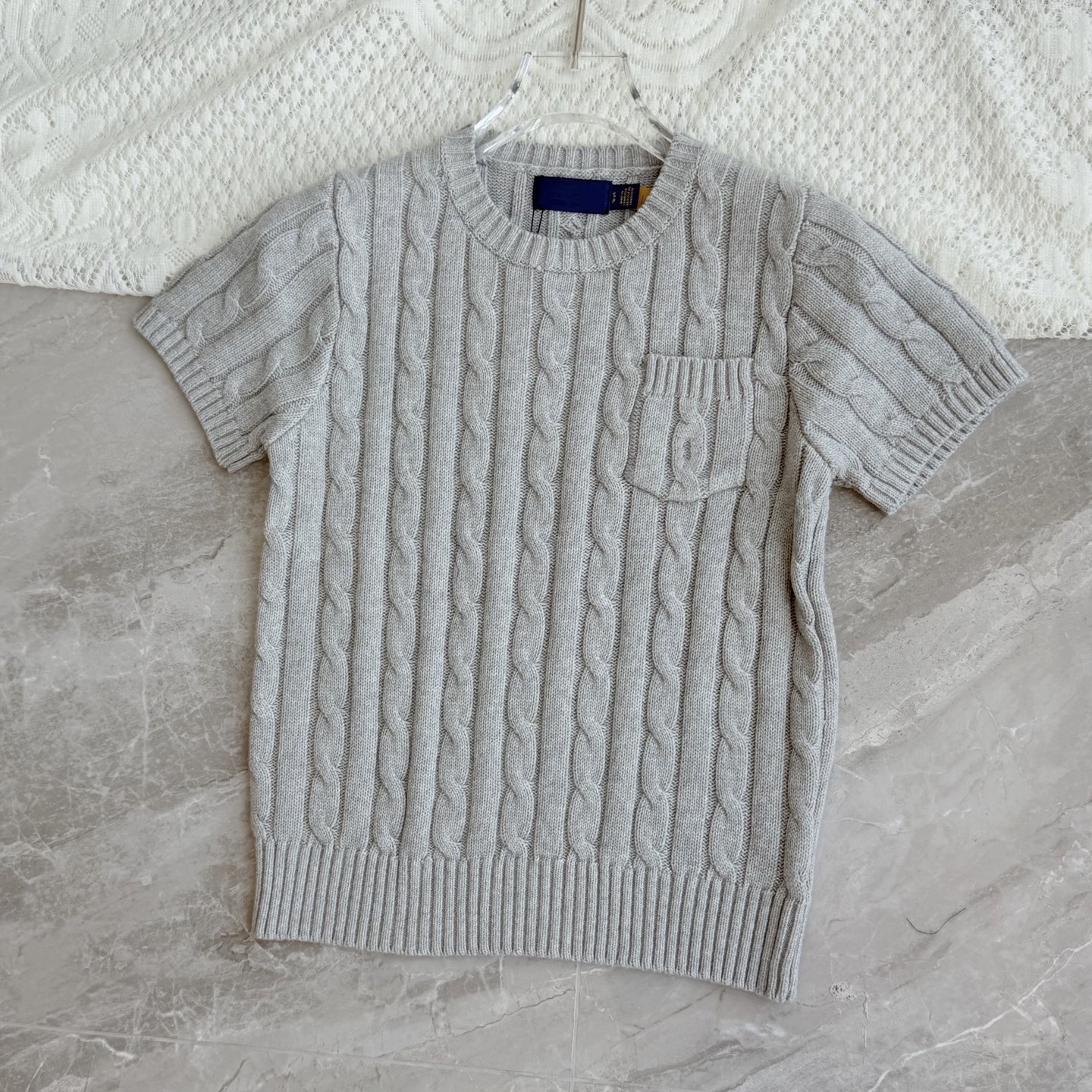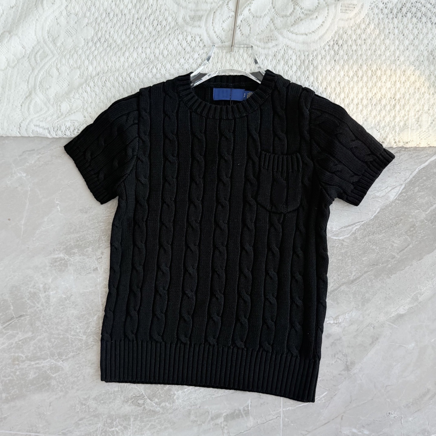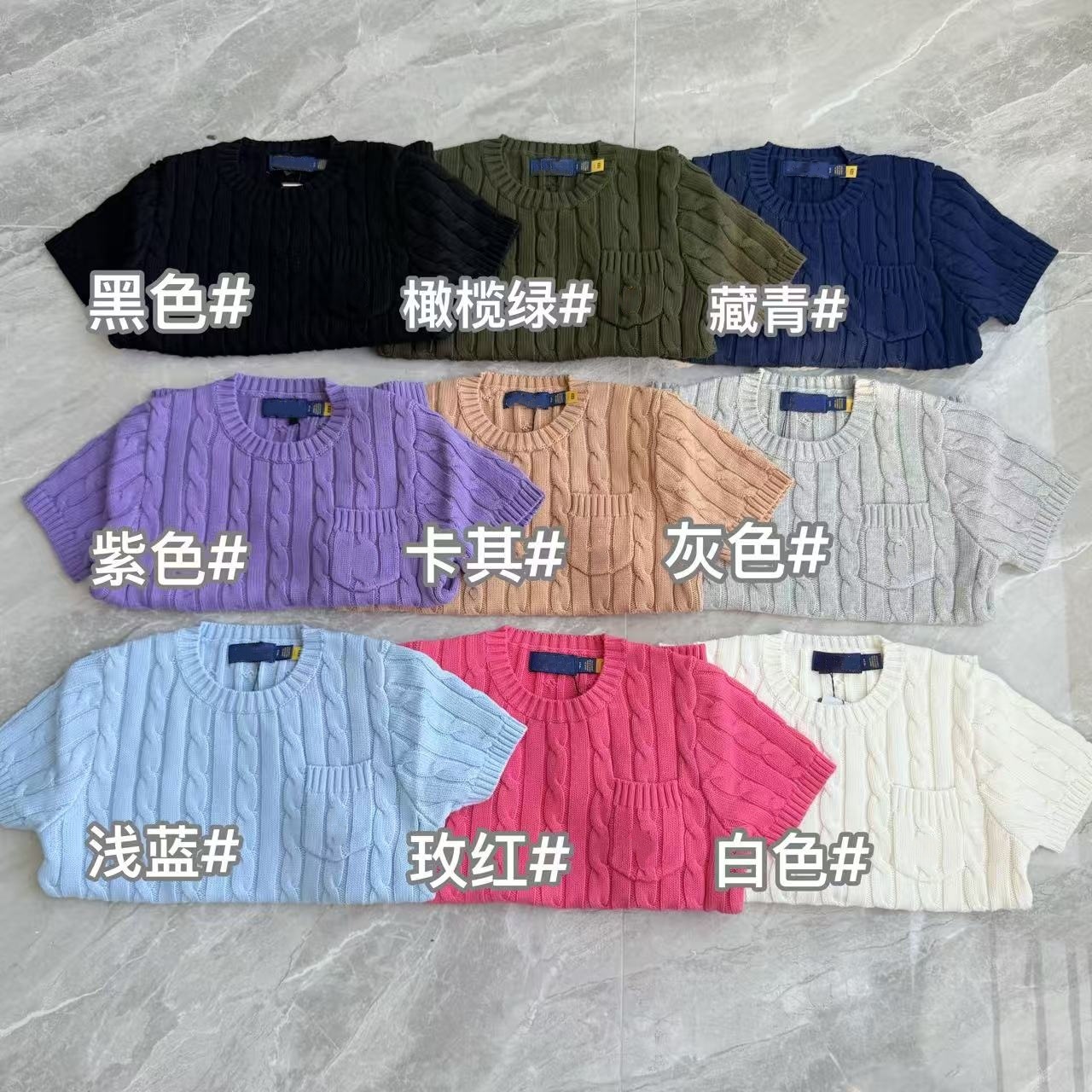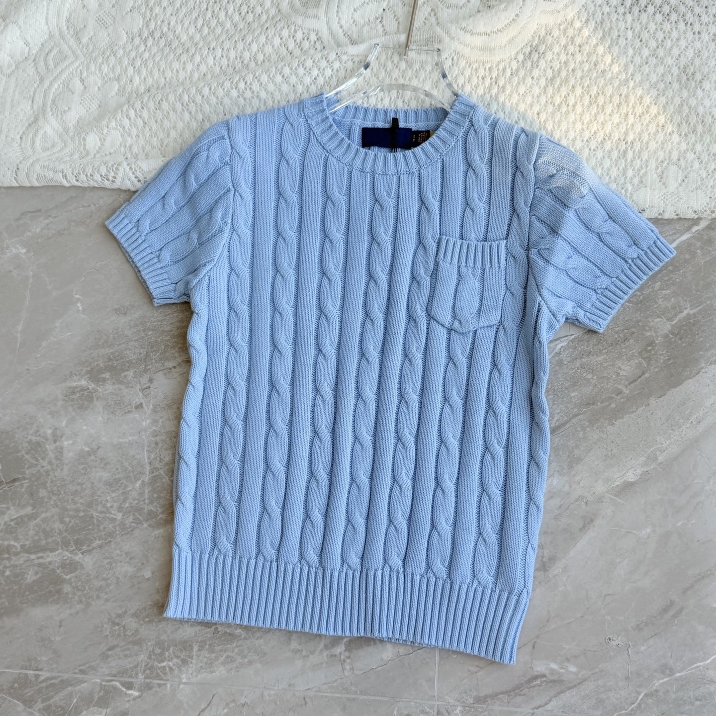 고품질/스캔코드 가능 라프 라운드넥 포켓 소마자수 니트 반팔 트위스트 상의 여성용스토어 가기
