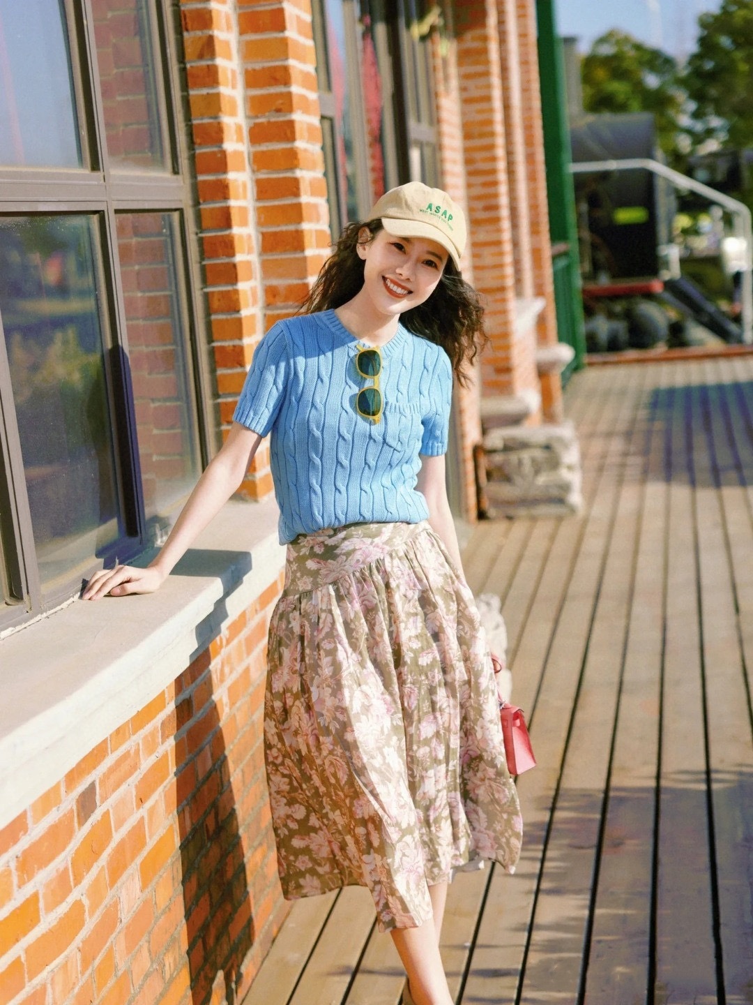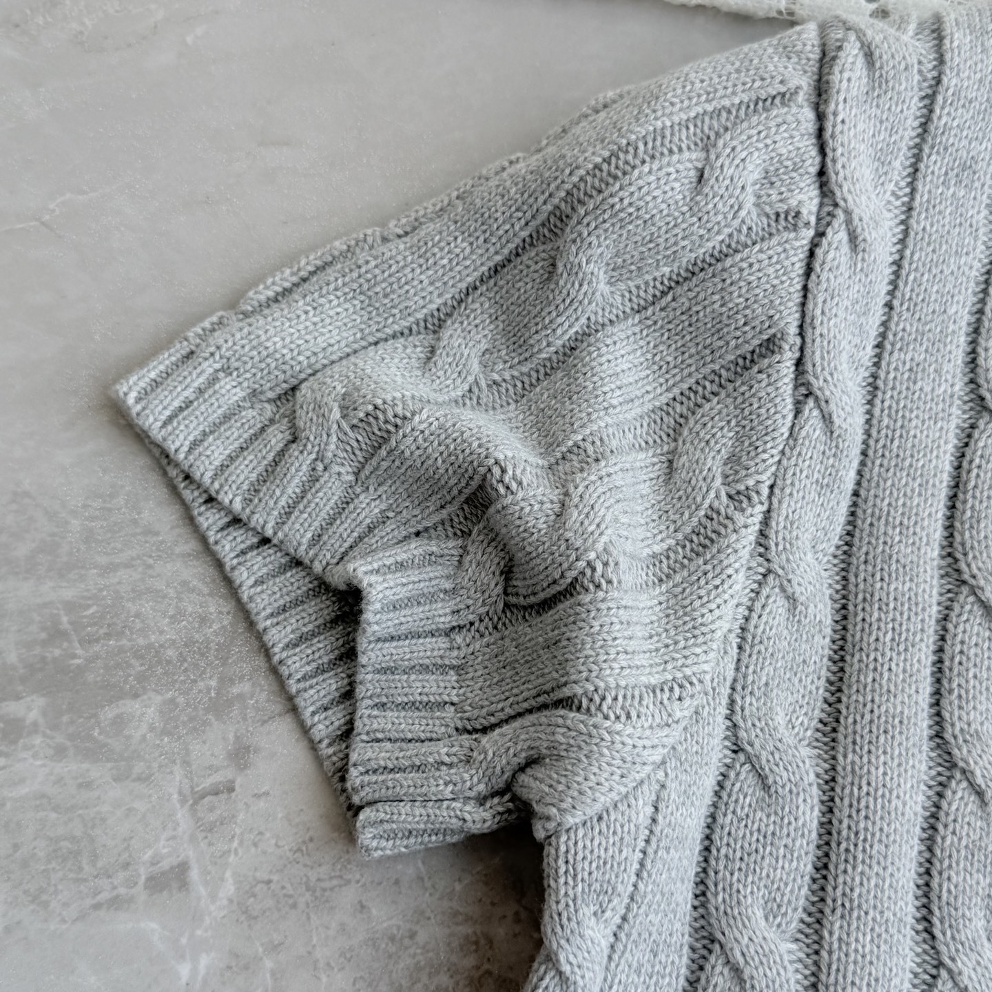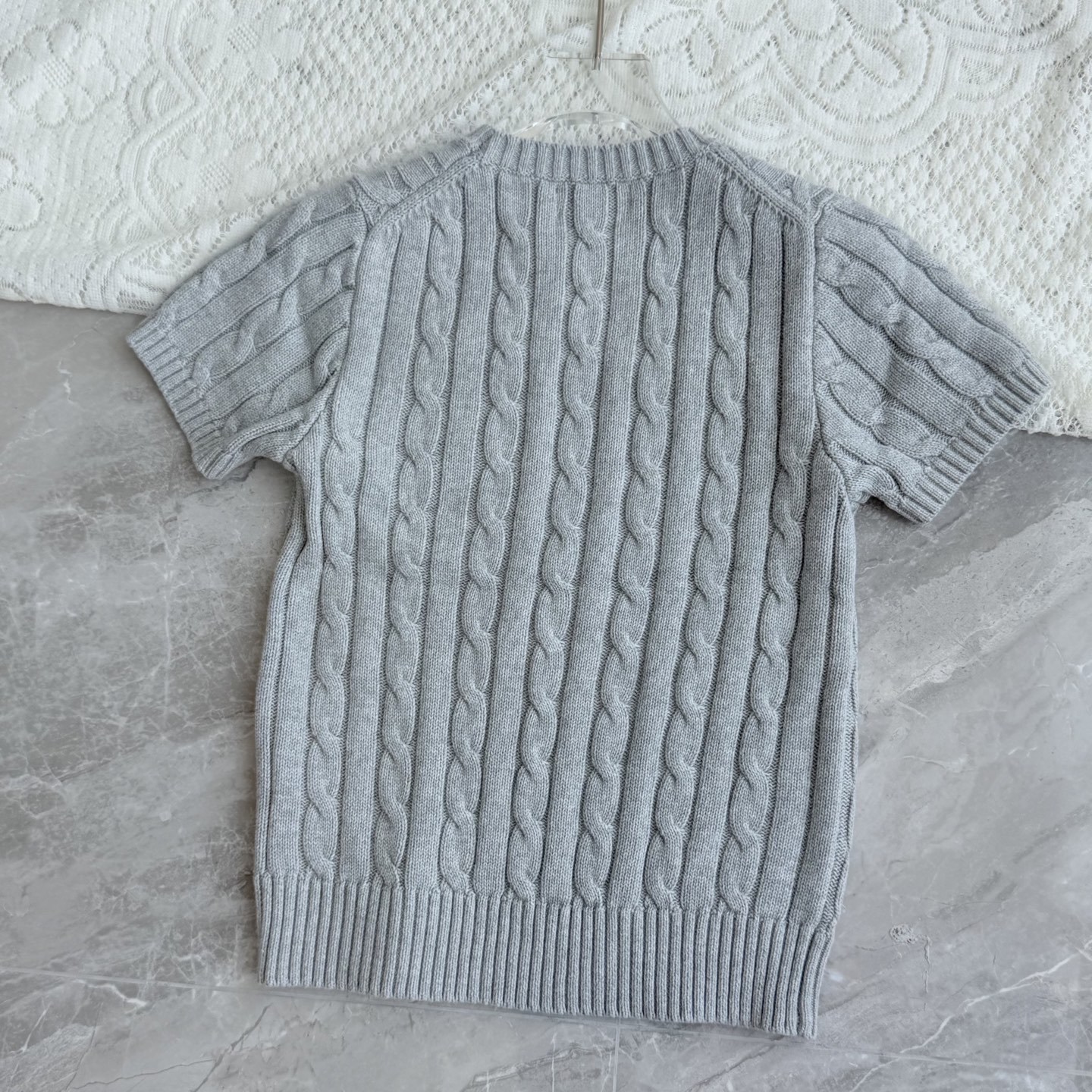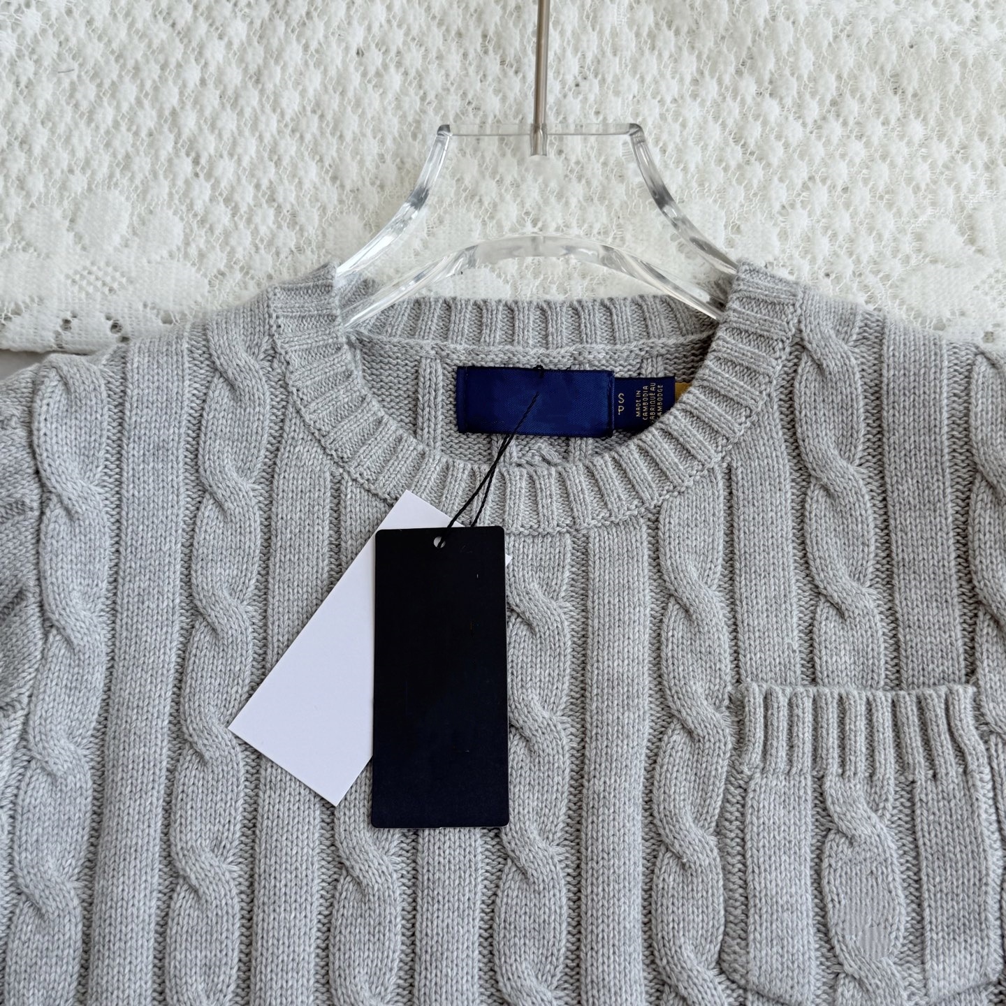 고품질/스캔코드 가능 라프 라운드넥 포켓 소마자수 니트 반팔 트위스트 상의 여성용스토어 가기