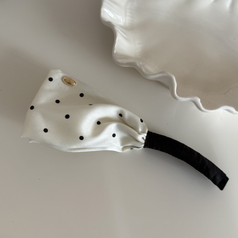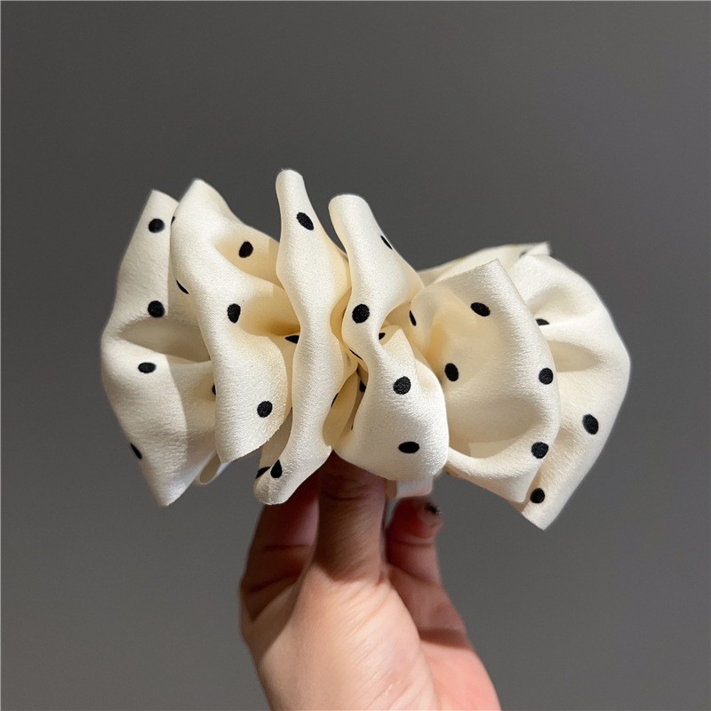• 화이트 폴카 도트 플리츠 바나나 클립