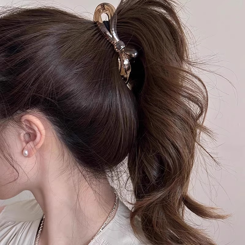 2025 신형 바나나 클립 세로 포니테일 머리핀 광택 클립 뒷머리 볼 헤어 클립 여성용 머리핀