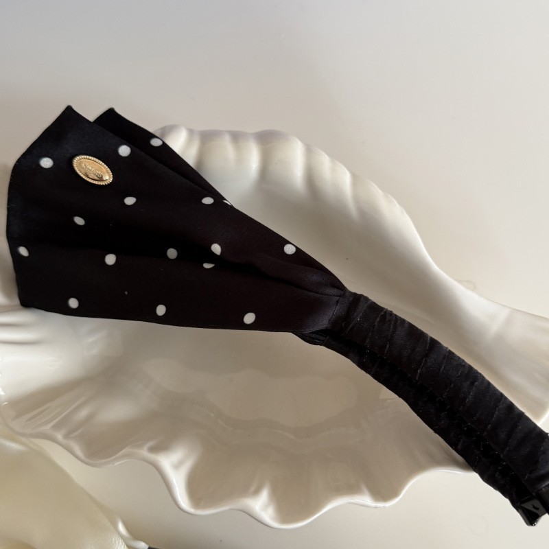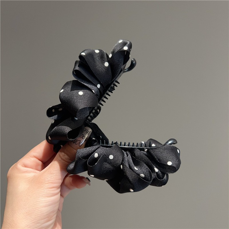 • 블랙 폴카 도트 플리츠 바나나 클립