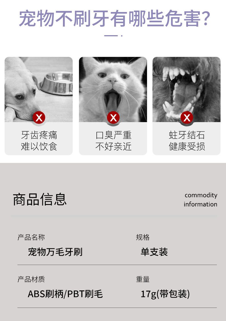 现货宠物牙刷猫咪狗狗口腔清洁小头塑料软毛宠物牙刷宠物用品批发