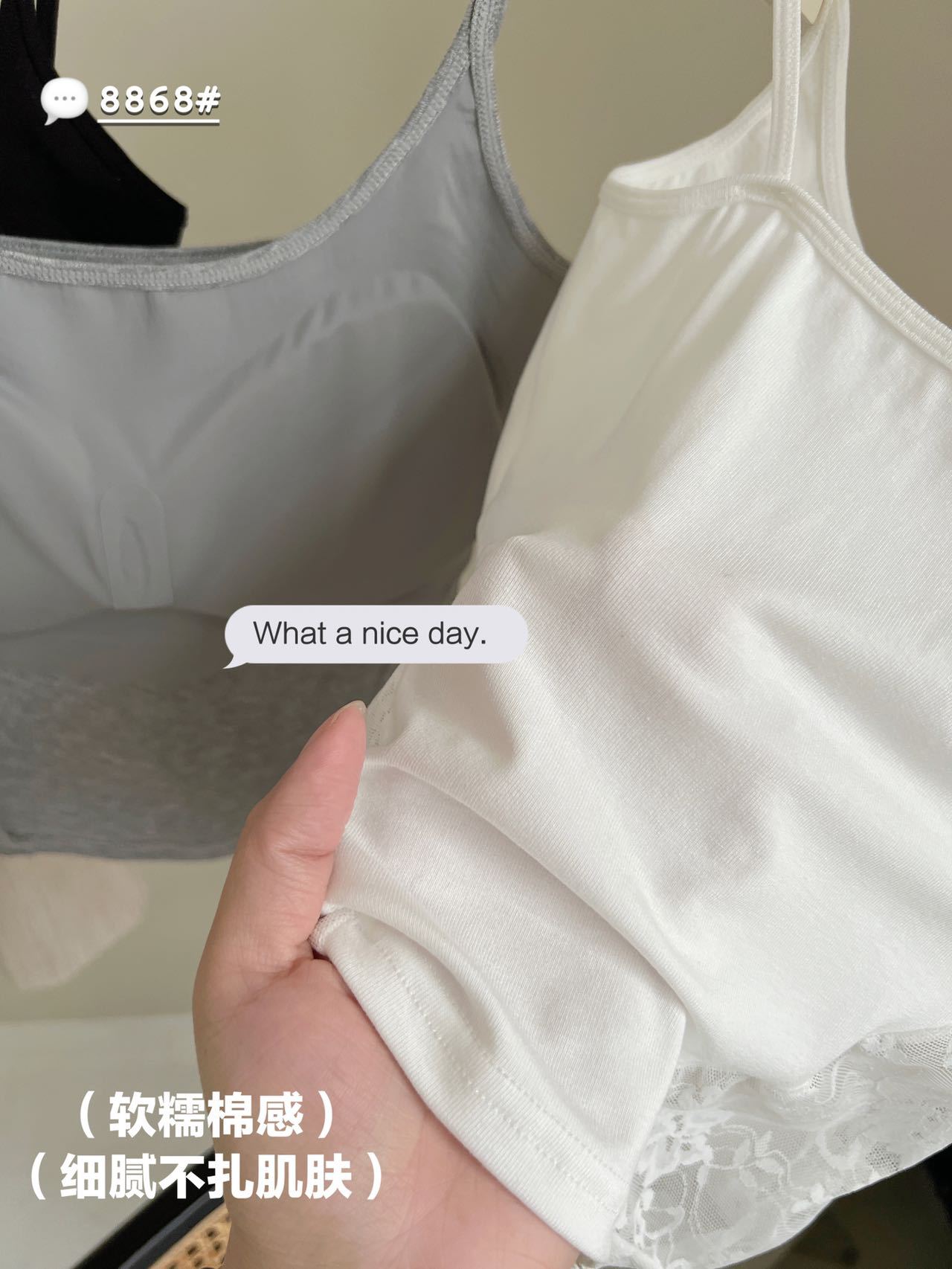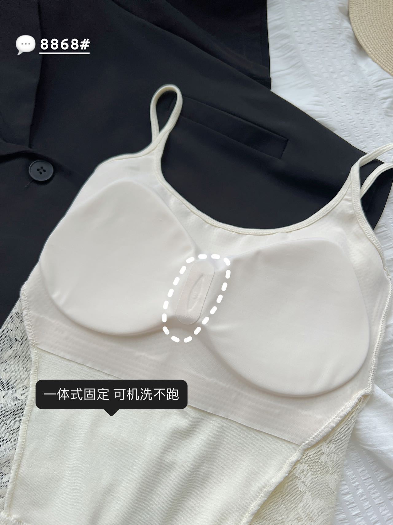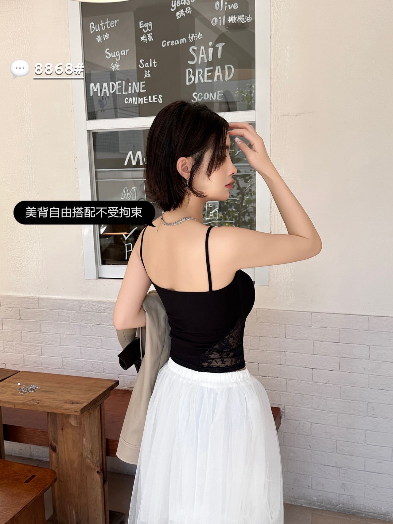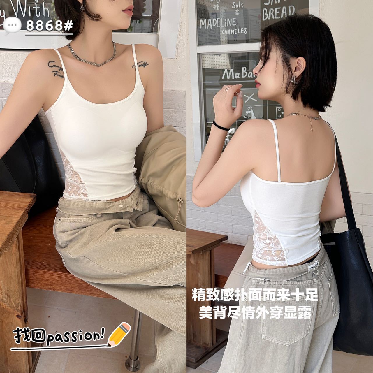 Hot Girl Pure Desire 속이 빈 레이스 캐미솔, 고정된 두꺼운 가슴 패드, 가슴 수축, 내부 및 외부 착용, 아름다운 백 탑스토어 가기