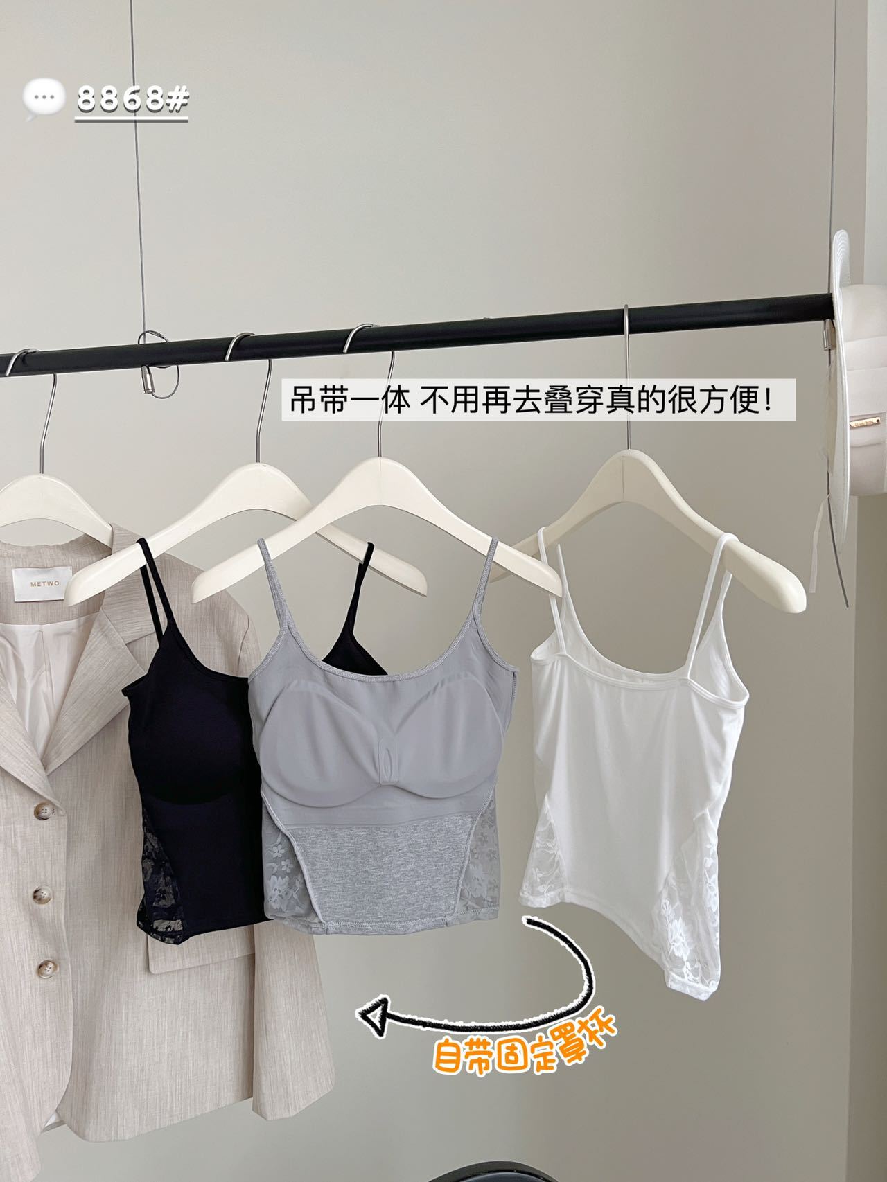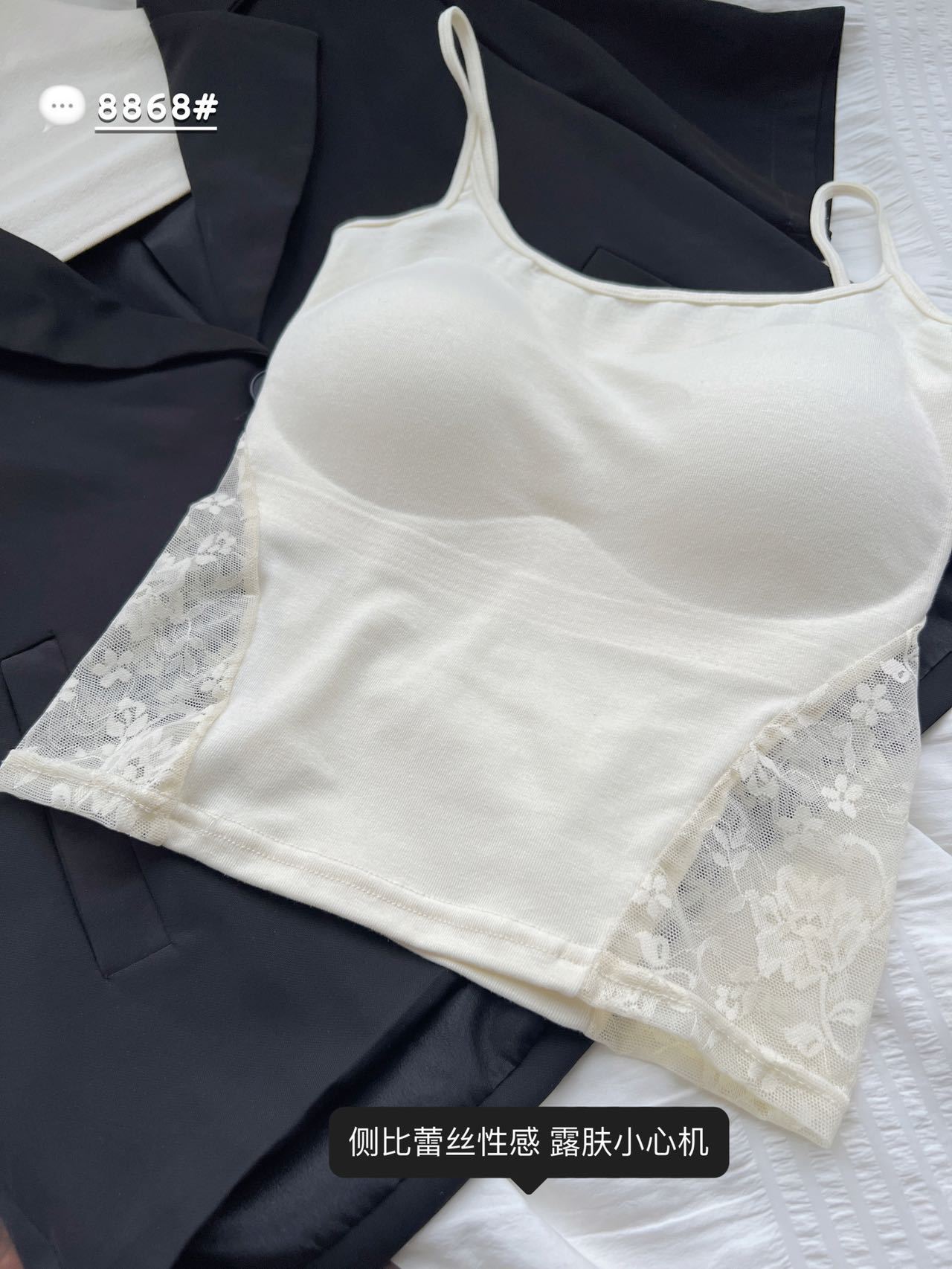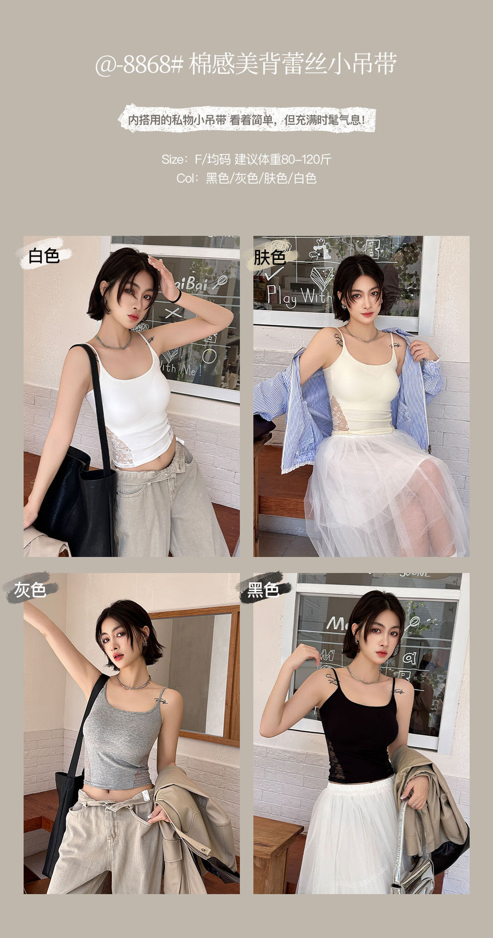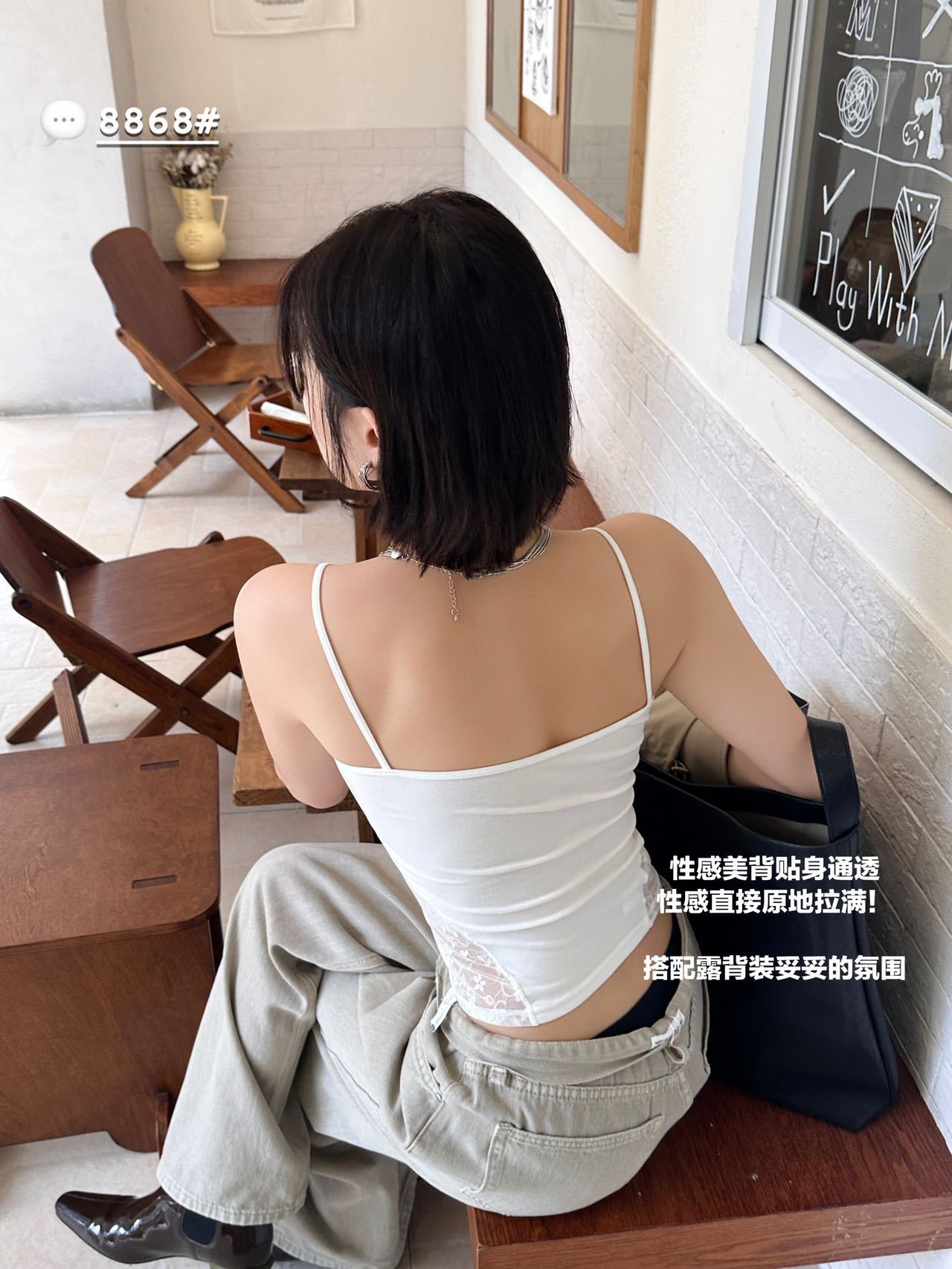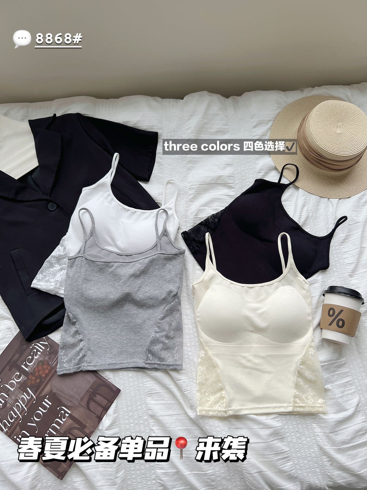 Hot Girl Pure Desire 속이 빈 레이스 캐미솔, 고정된 두꺼운 가슴 패드, 가슴 수축, 내부 및 외부 착용, 아름다운 백 탑스토어 가기