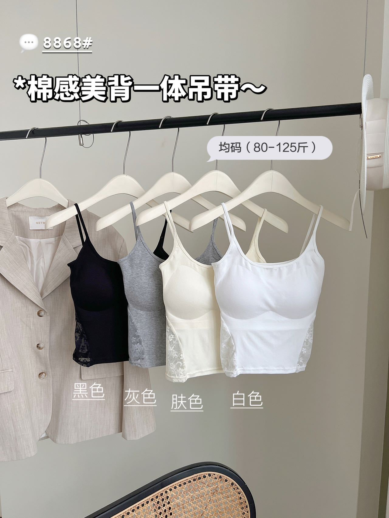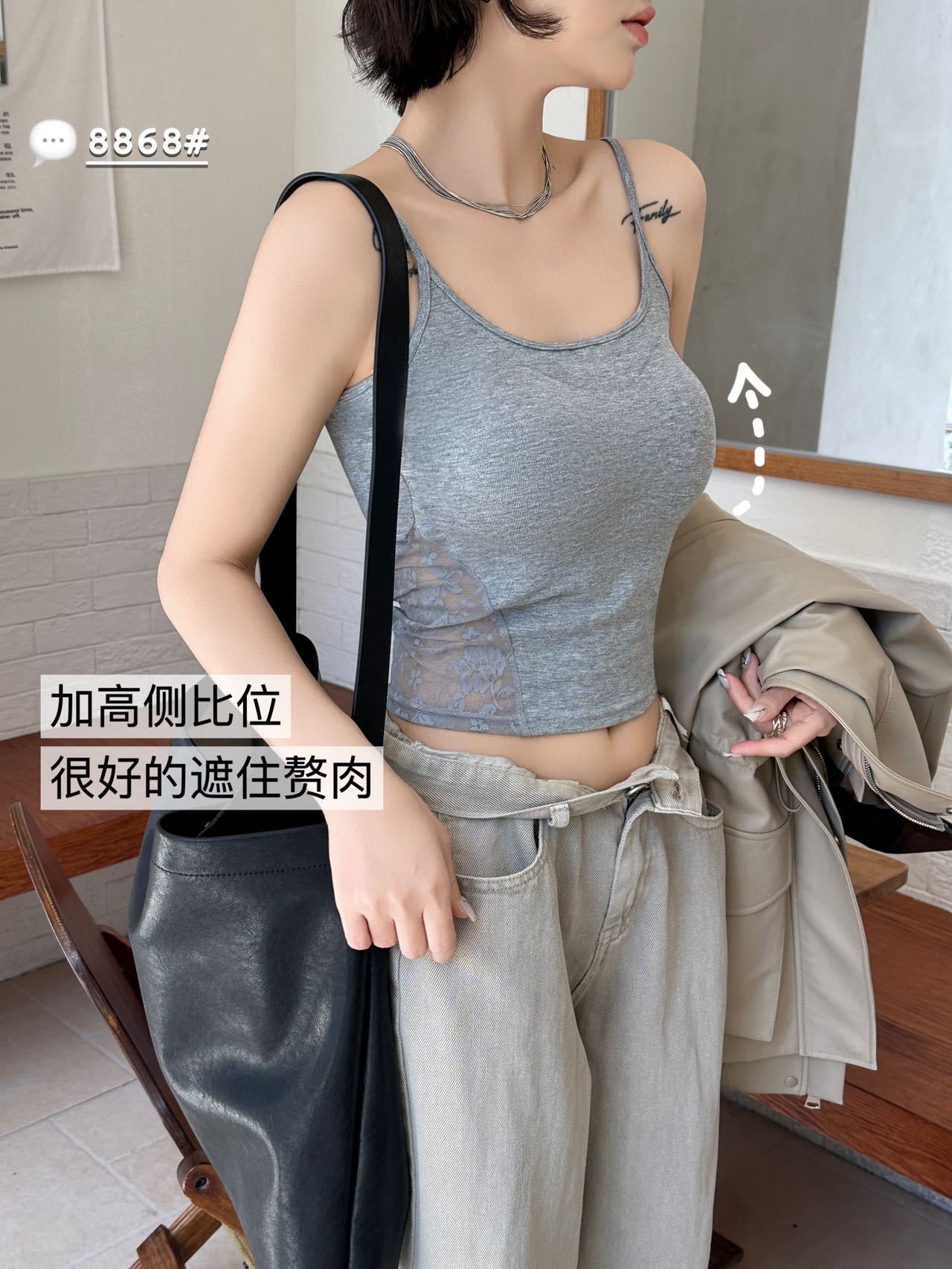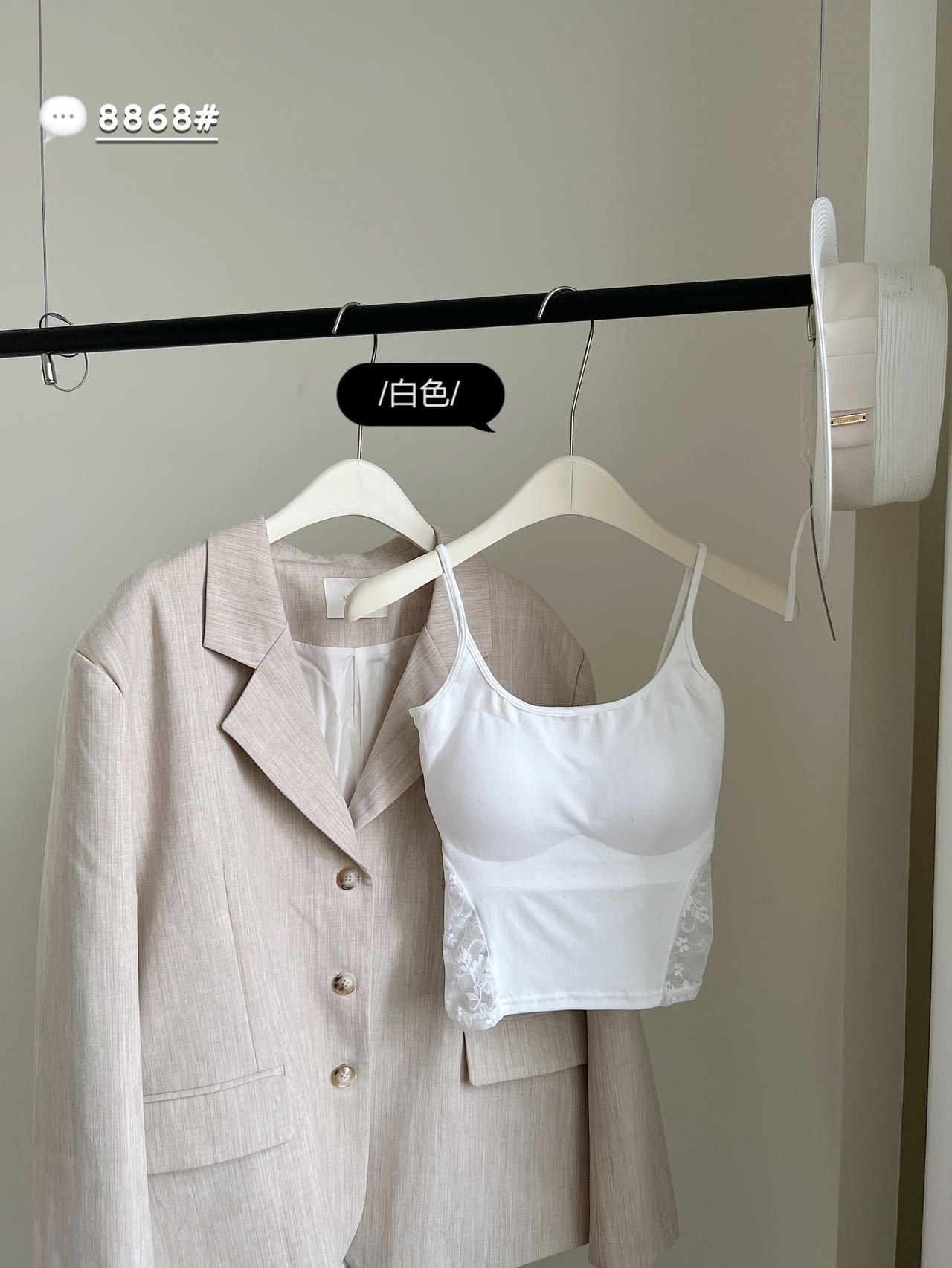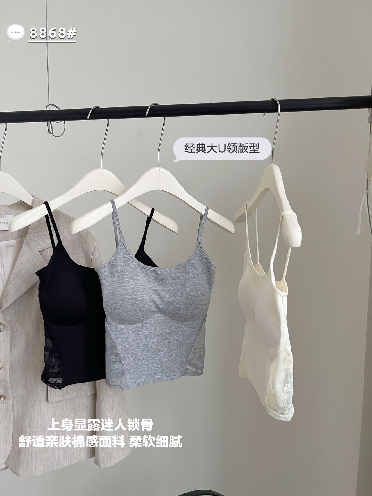 Hot Girl Pure Desire 속이 빈 레이스 캐미솔, 고정된 두꺼운 가슴 패드, 가슴 수축, 내부 및 외부 착용, 아름다운 백 탑스토어 가기
