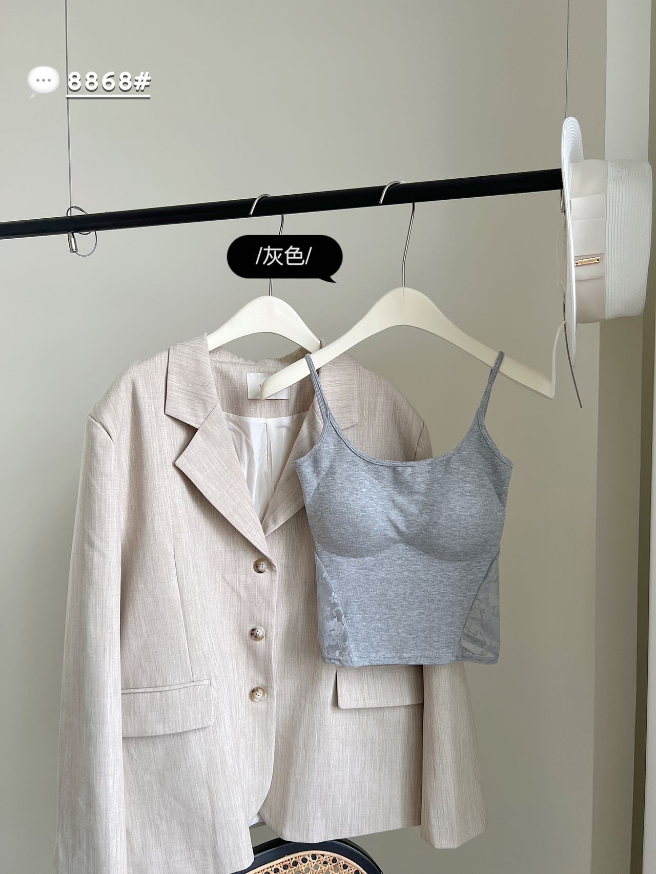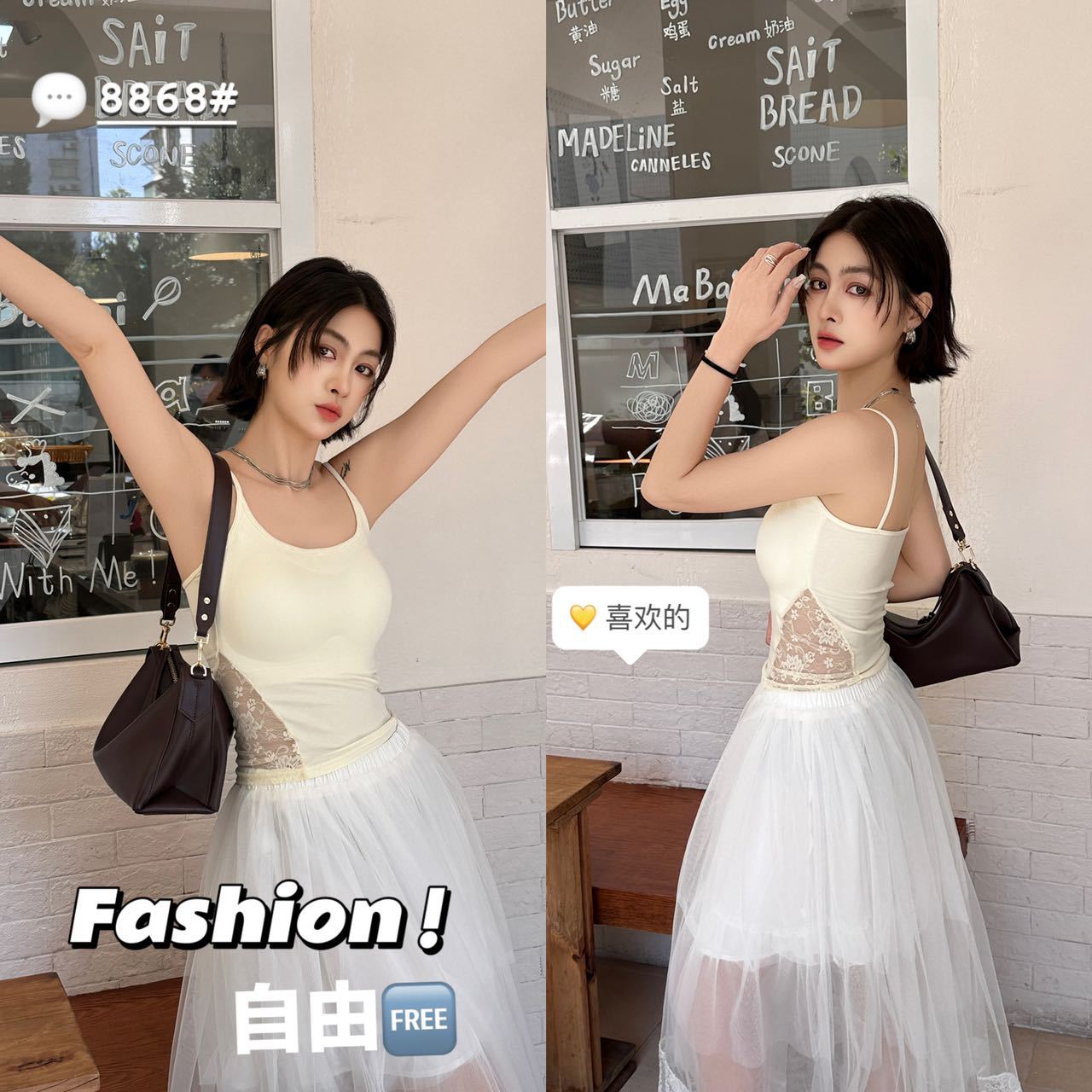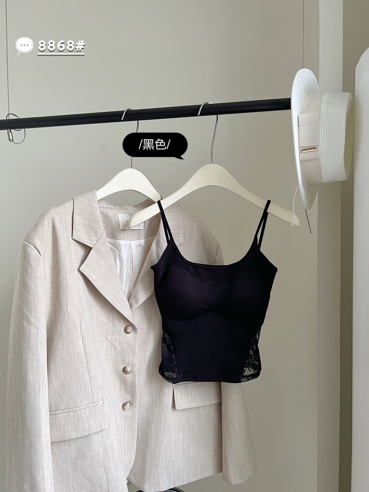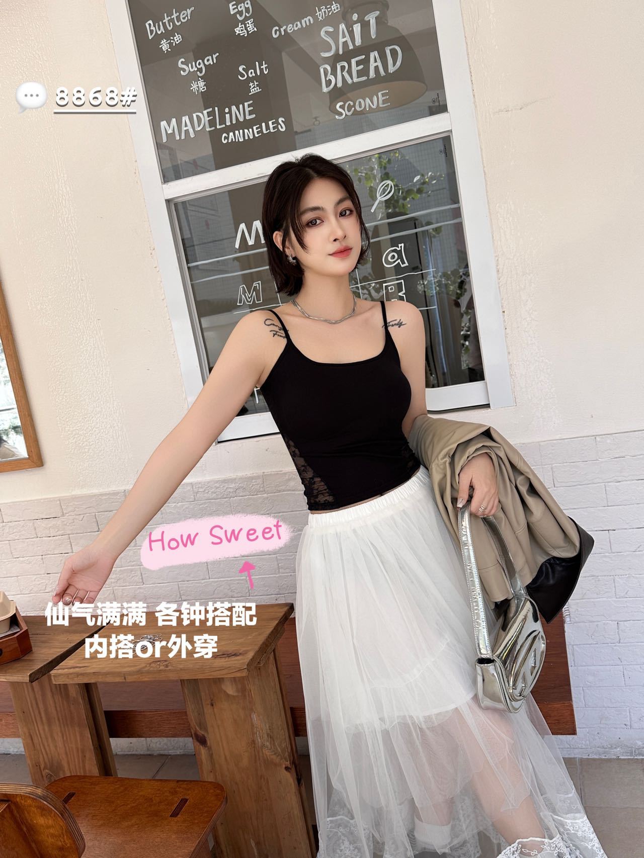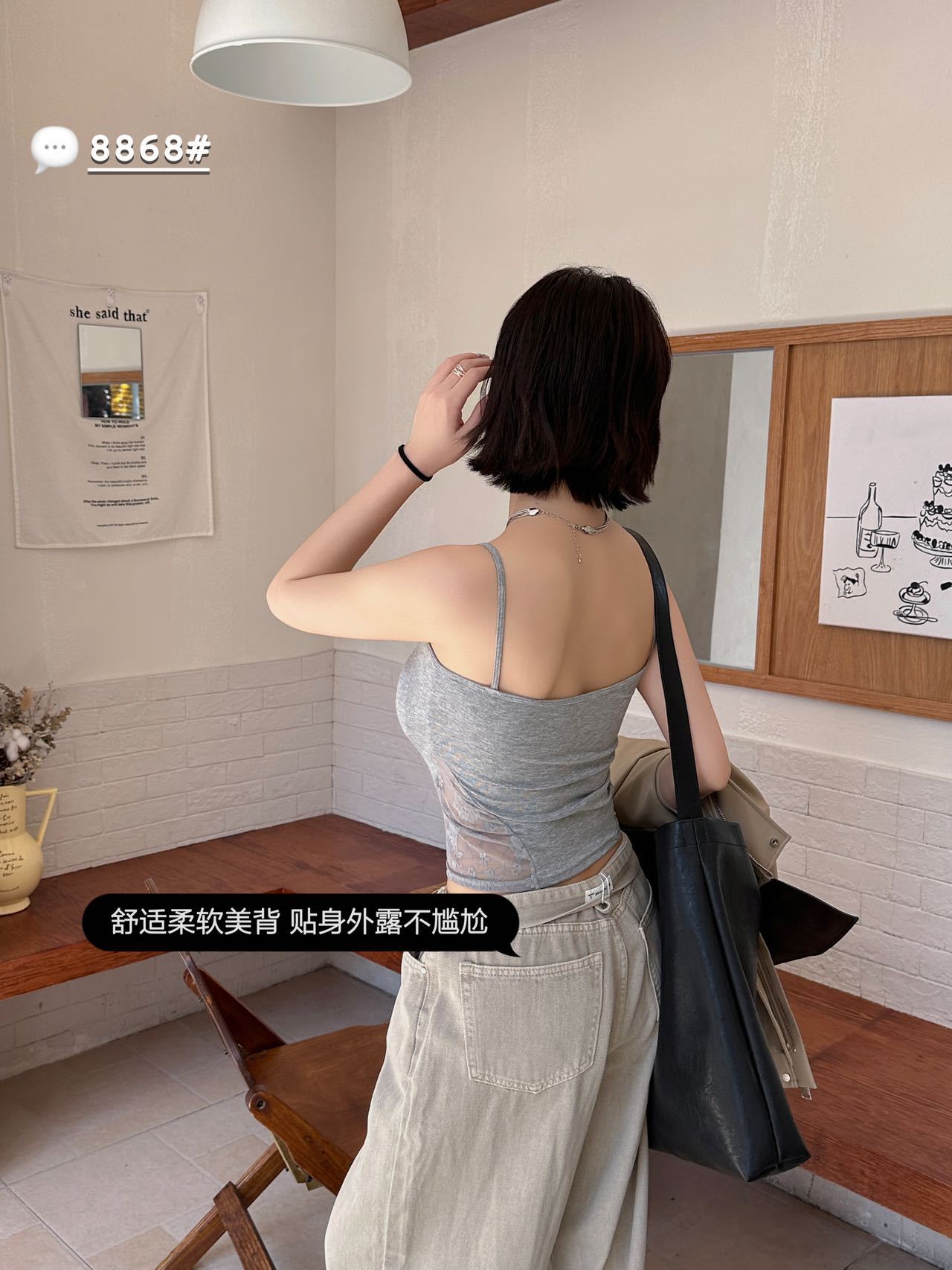 Hot Girl Pure Desire 속이 빈 레이스 캐미솔, 고정된 두꺼운 가슴 패드, 가슴 수축, 내부 및 외부 착용, 아름다운 백 탑스토어 가기