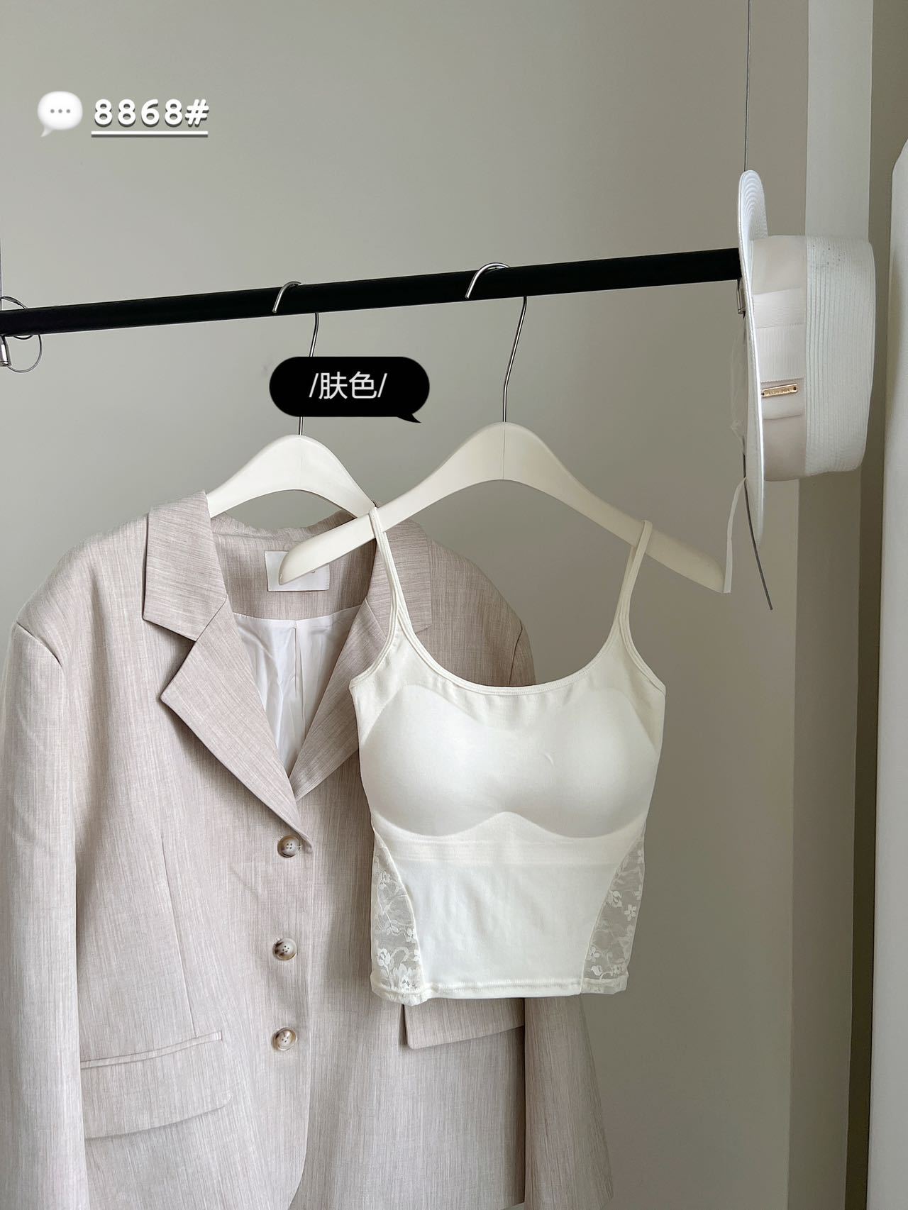Hot Girl Pure Desire 속이 빈 레이스 캐미솔, 고정된 두꺼운 가슴 패드, 가슴 수축, 내부 및 외부 착용, 아름다운 백 탑
