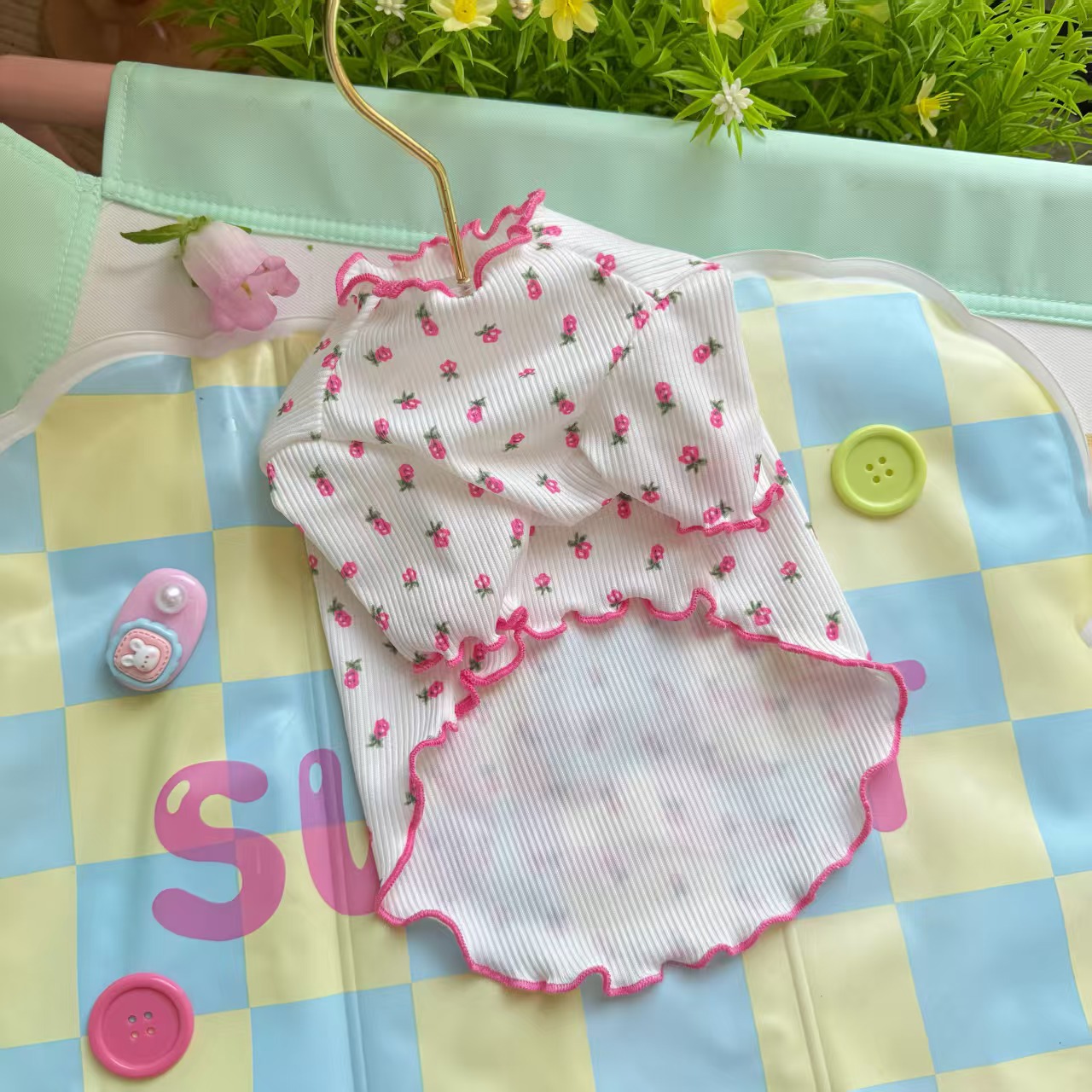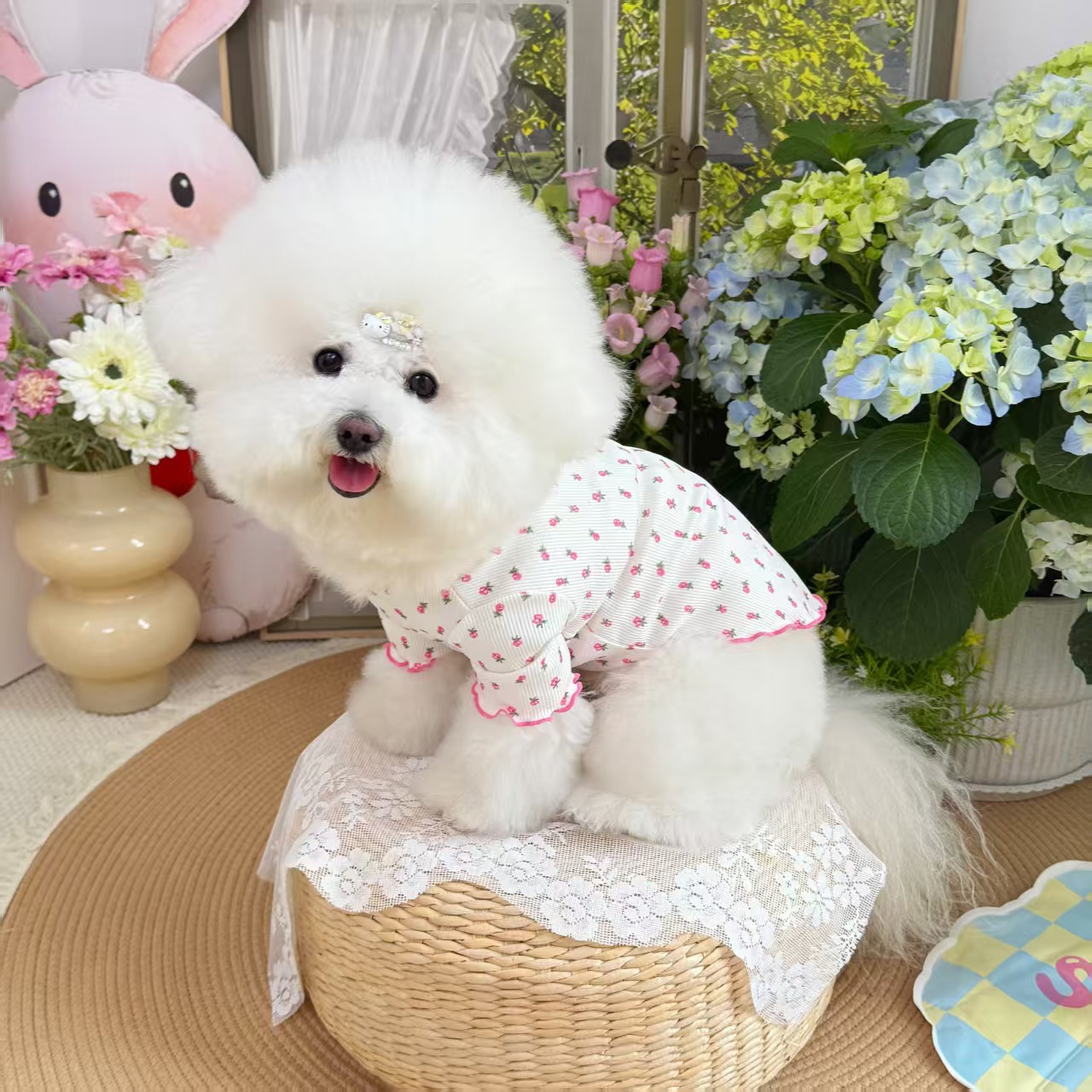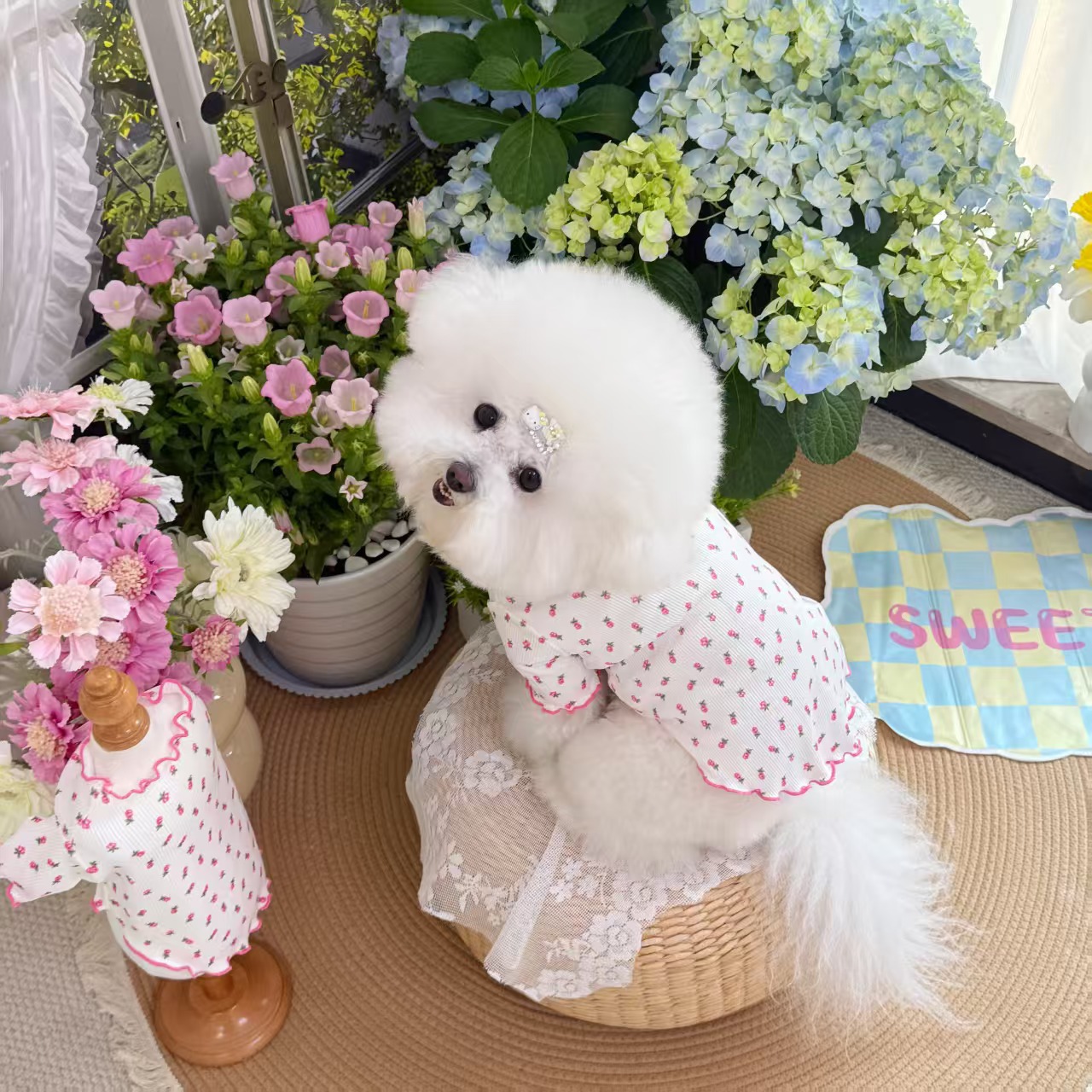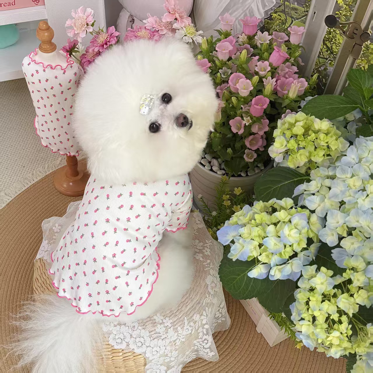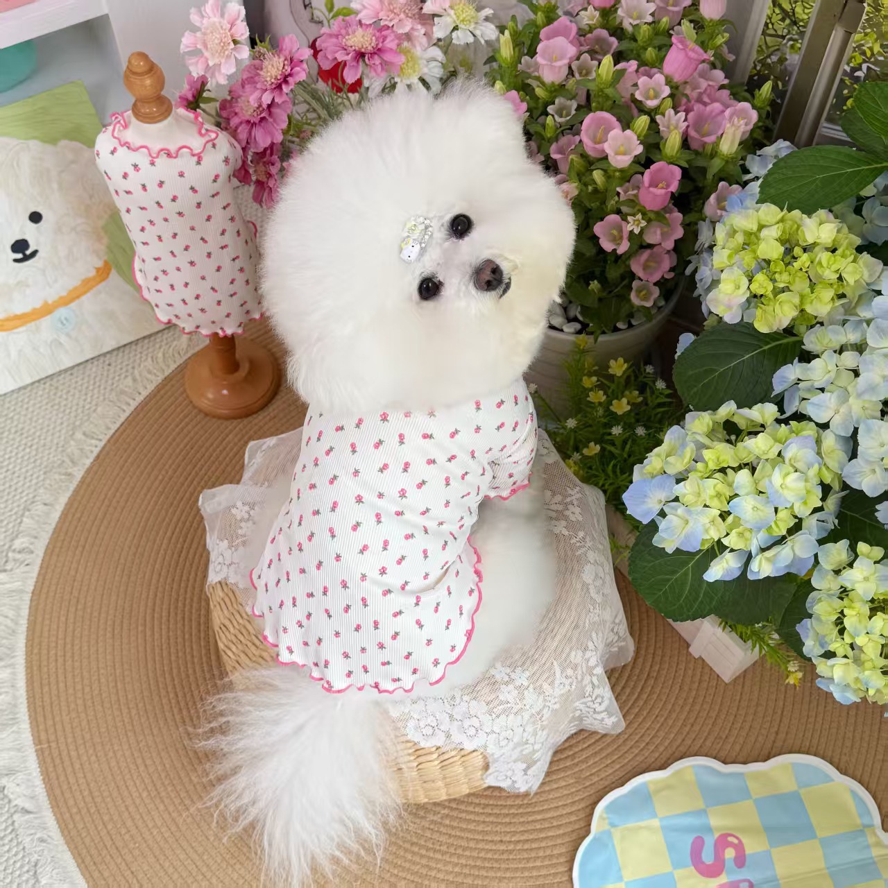 봄과 여름 애완 동물 얼음 실크 레이스 바닥 셔츠 얇은 통기성 개와 고양이 옷 유행 브랜드 반팔스토어 가기