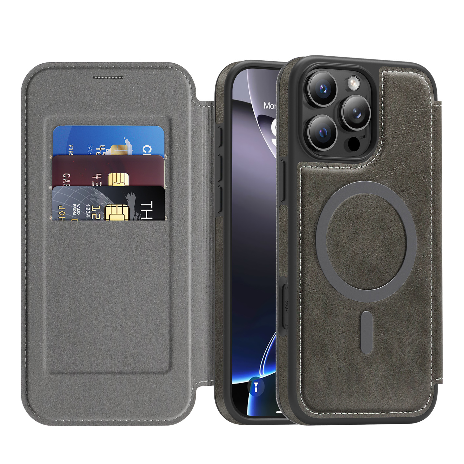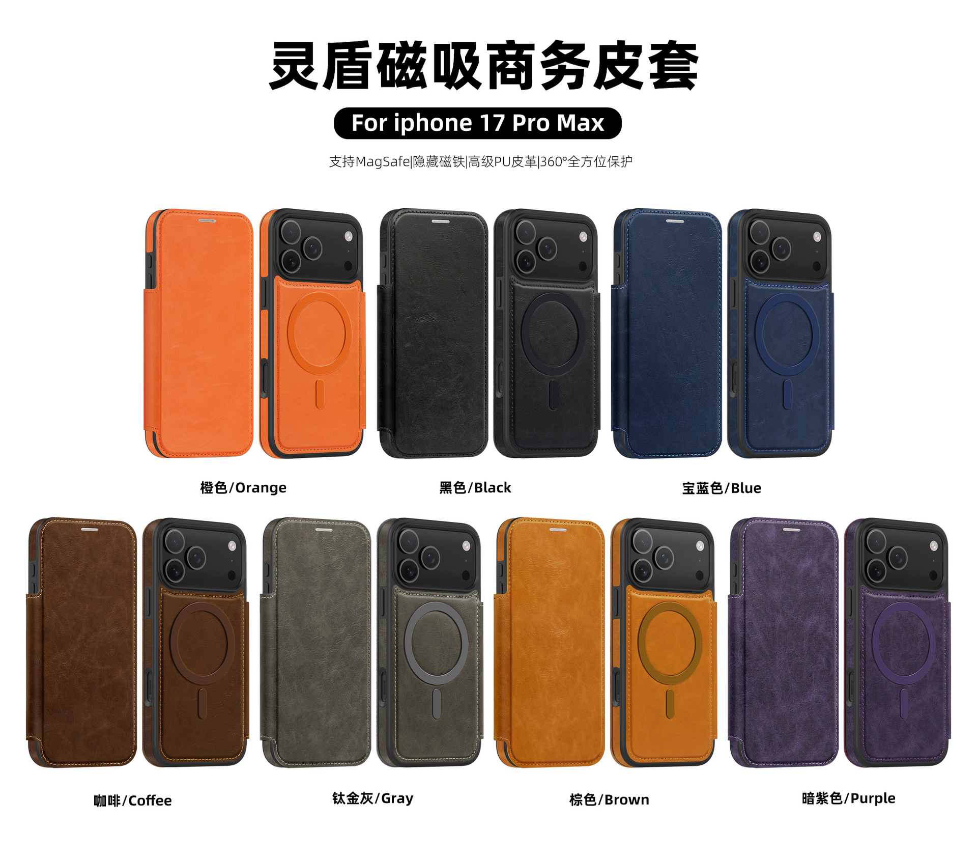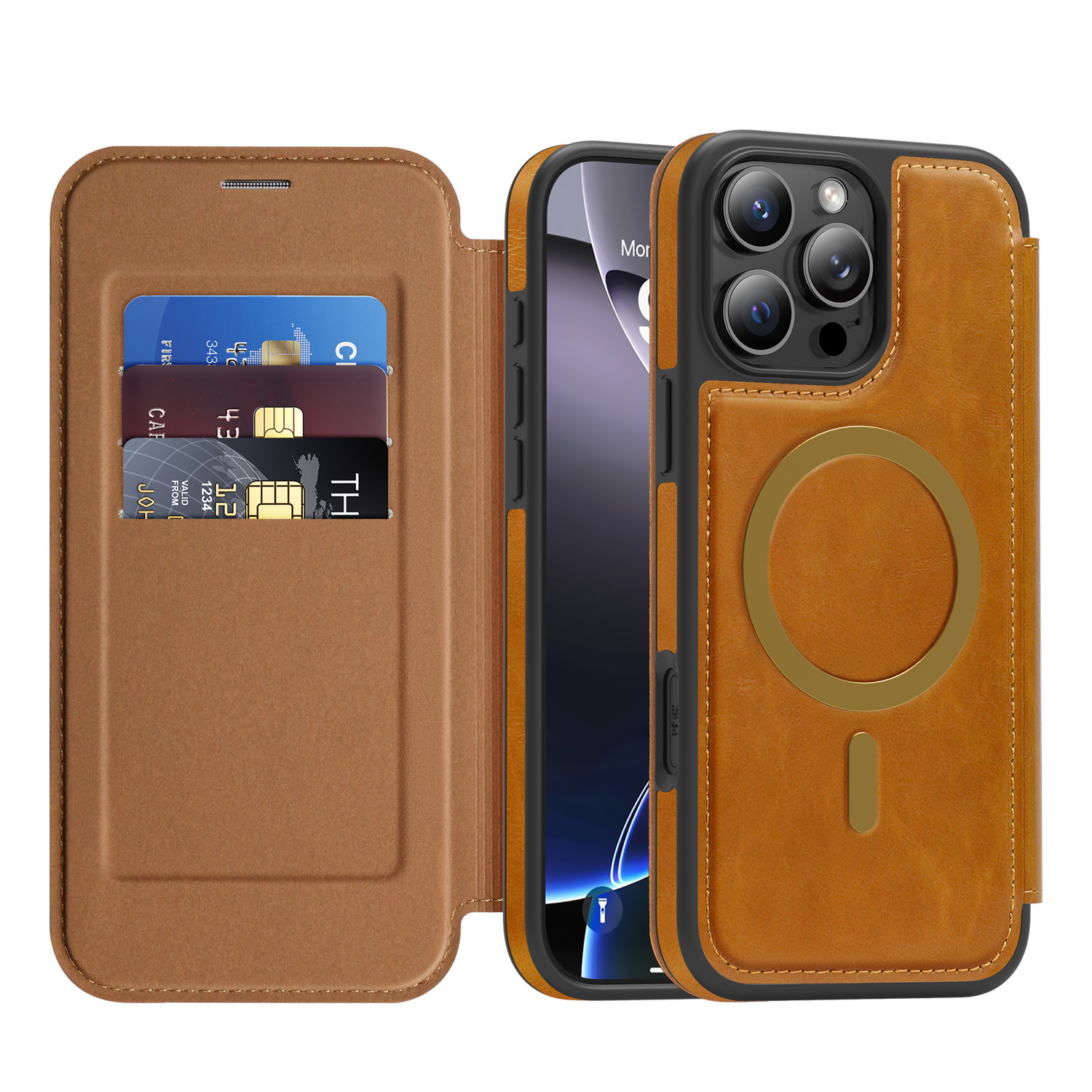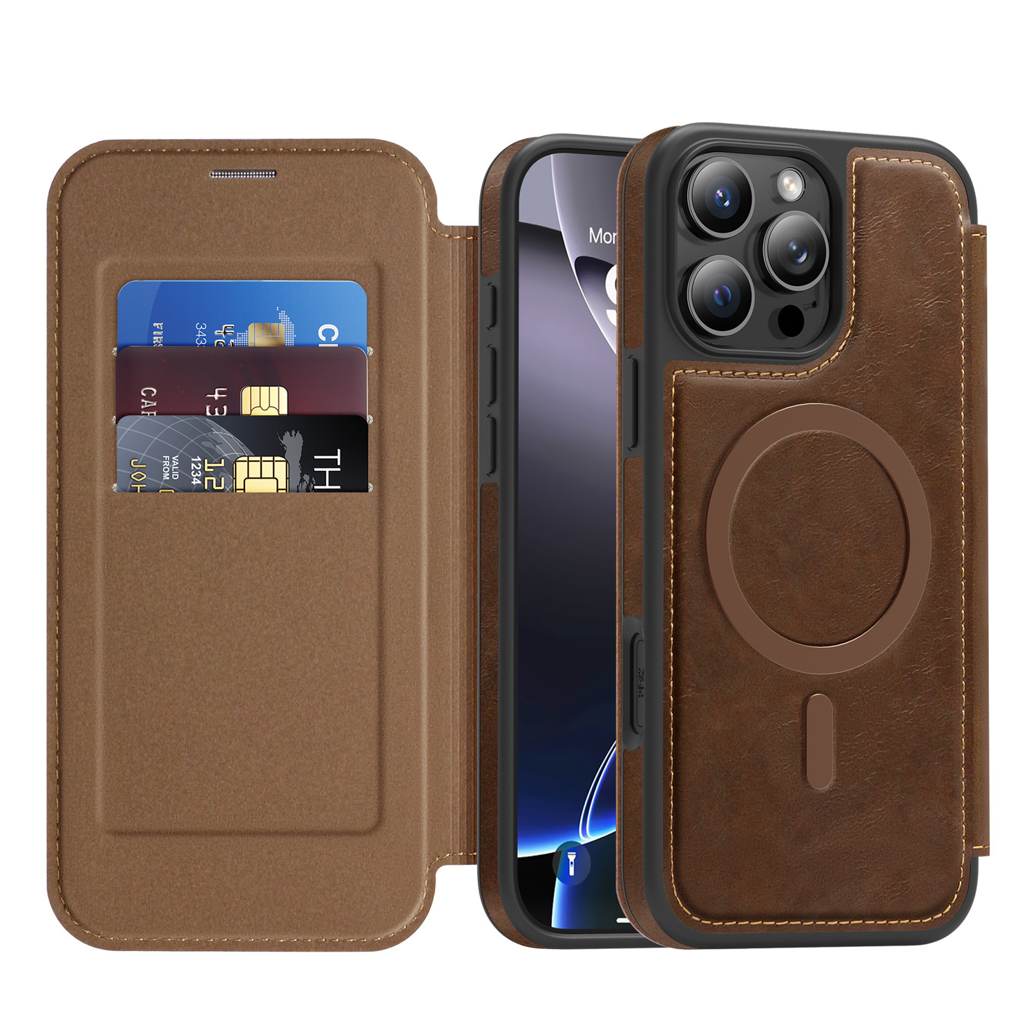 아이폰17 휴대폰 케이스에 적합, 린덴 마그네틱 플립 가죽 케이스, 애플 16ProMax 카드 수납 보호 케이스, 수출용
