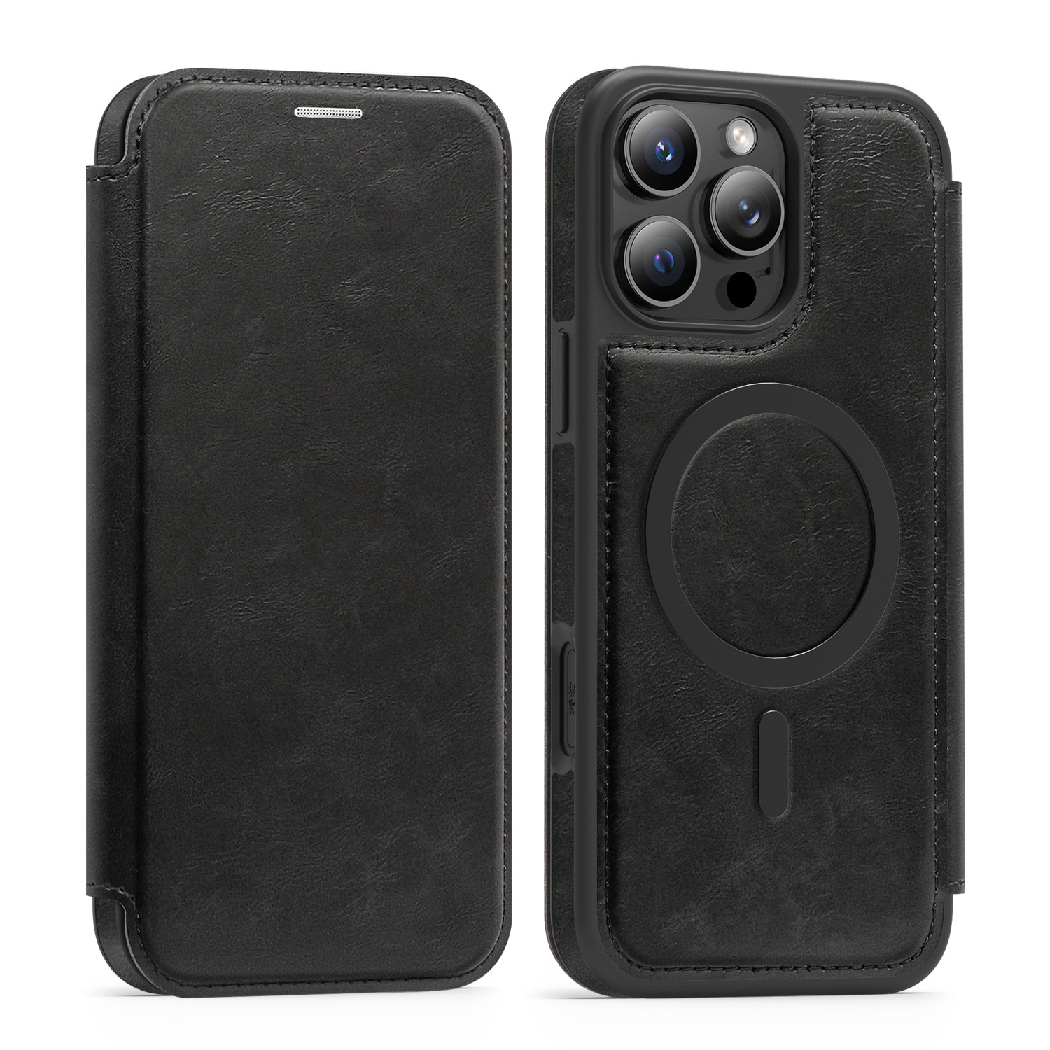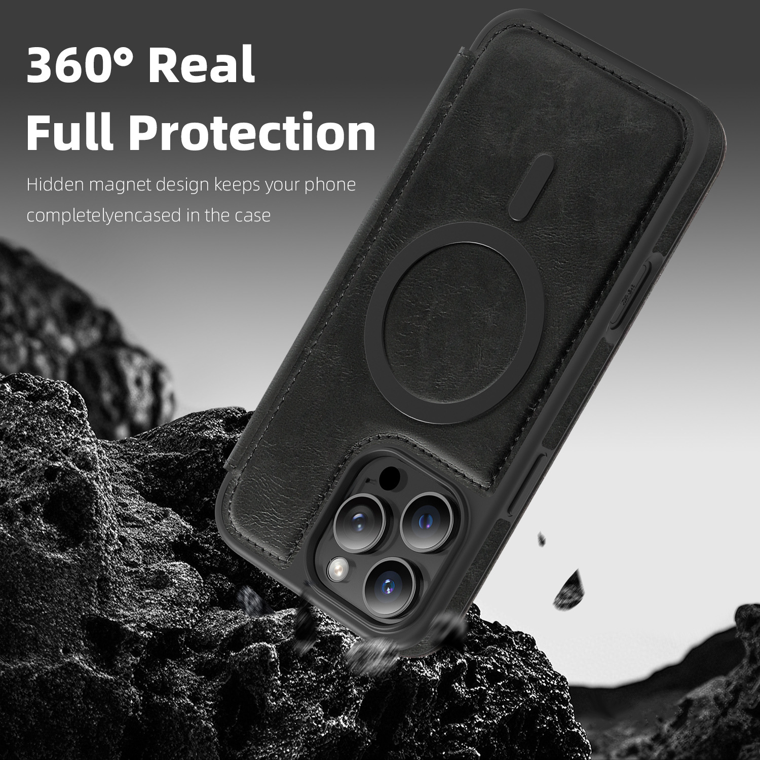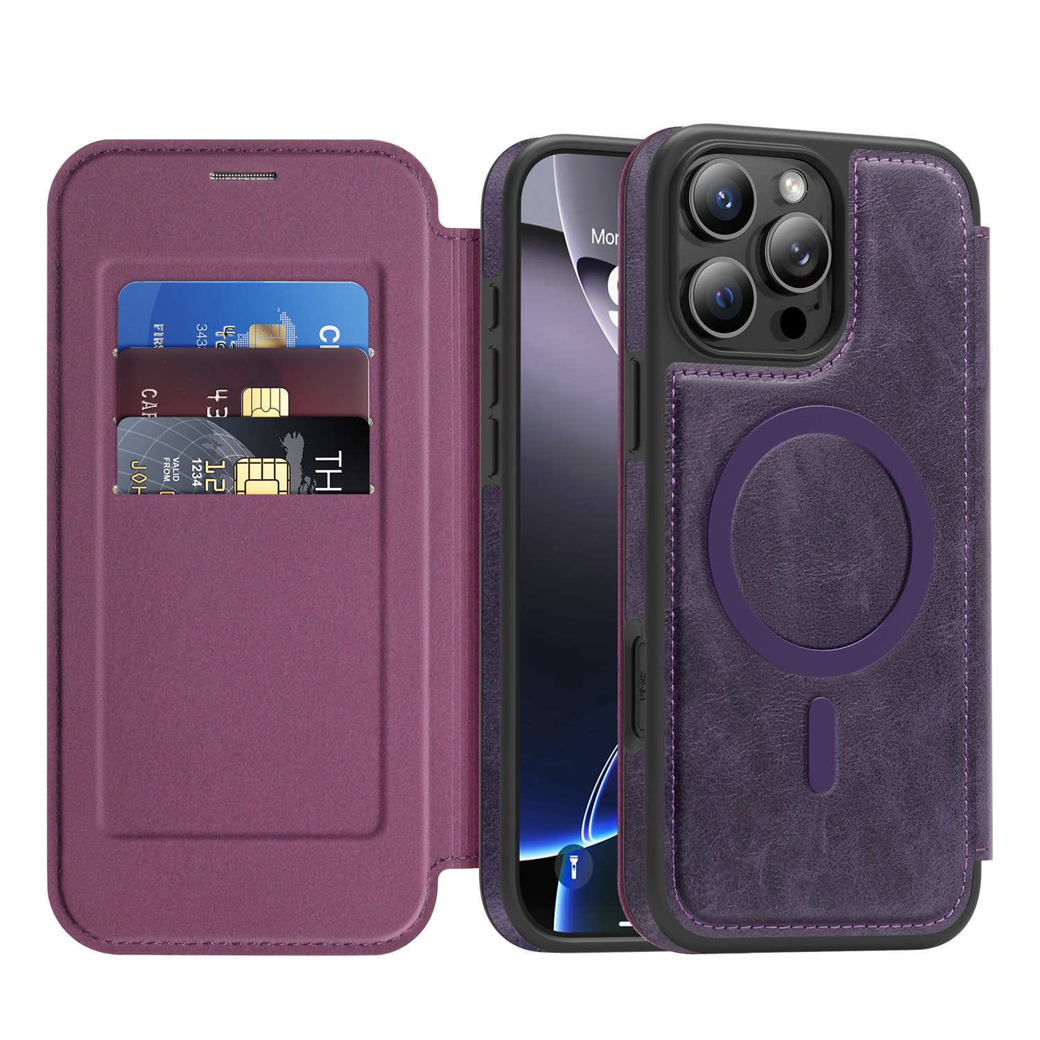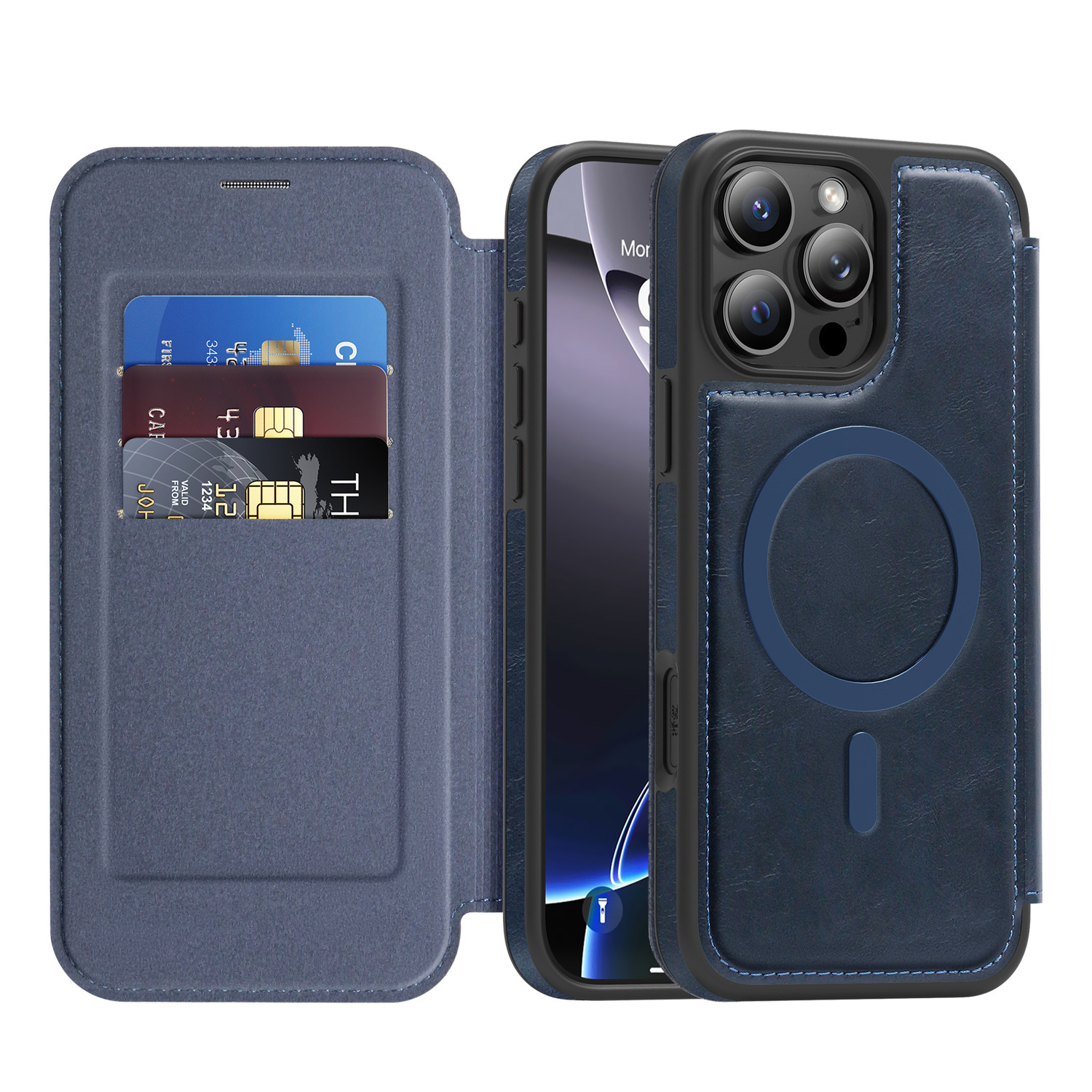 아이폰17 휴대폰 케이스에 적합, 린덴 마그네틱 플립 가죽 케이스, 애플 16ProMax 카드 수납 보호 케이스, 수출용