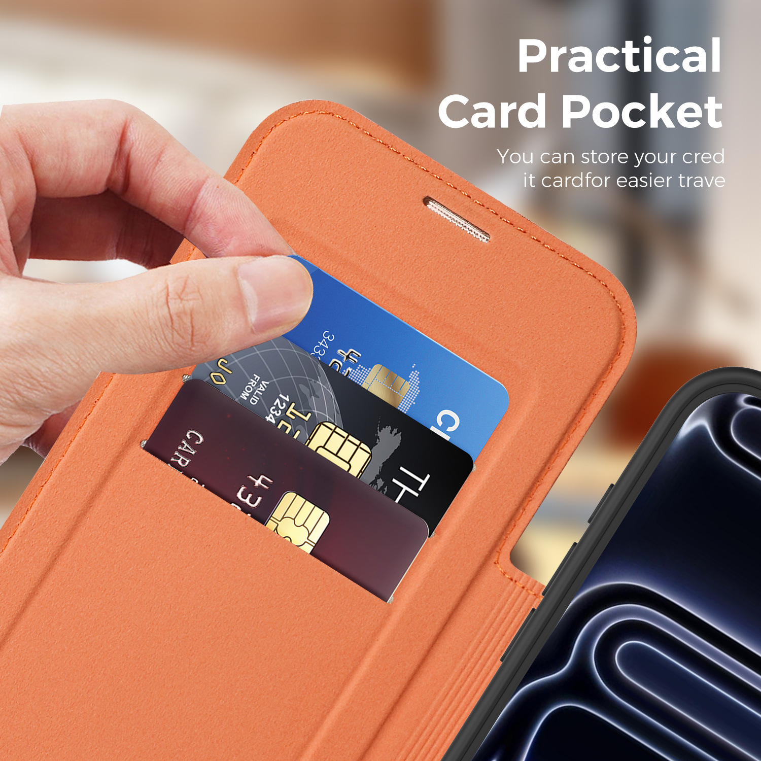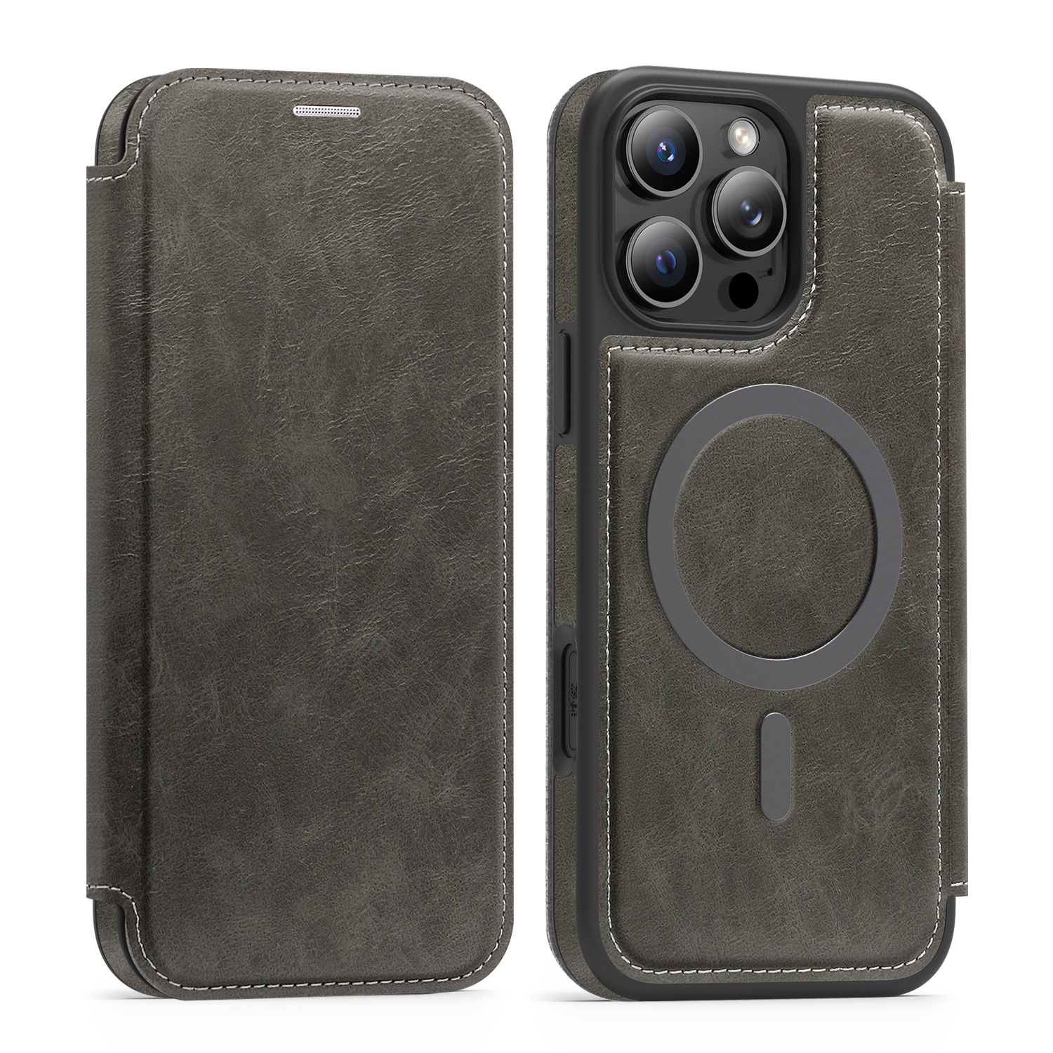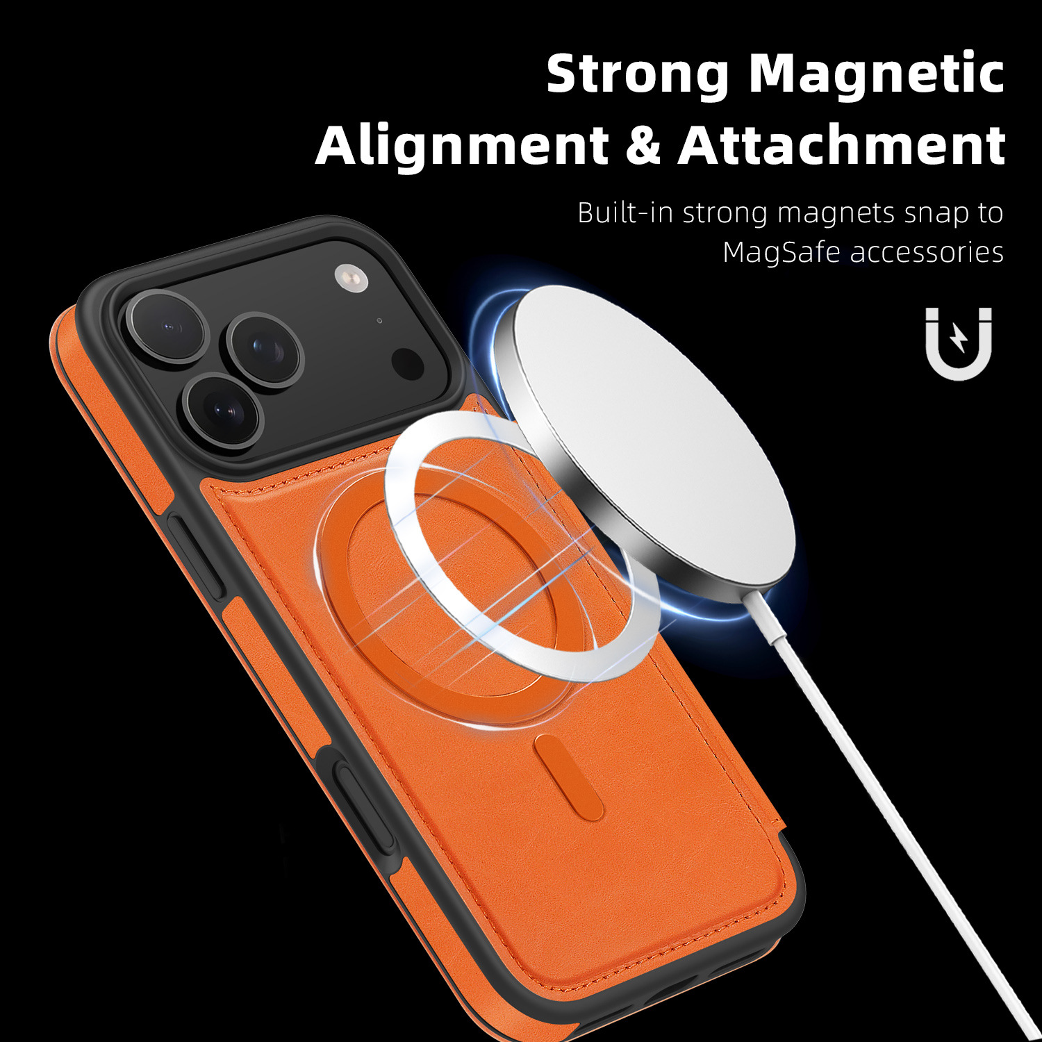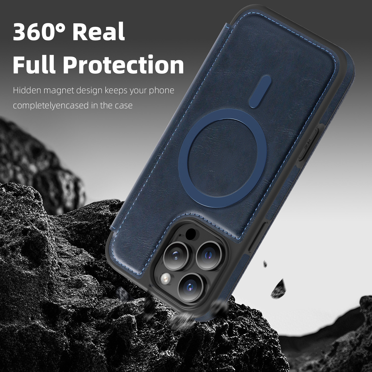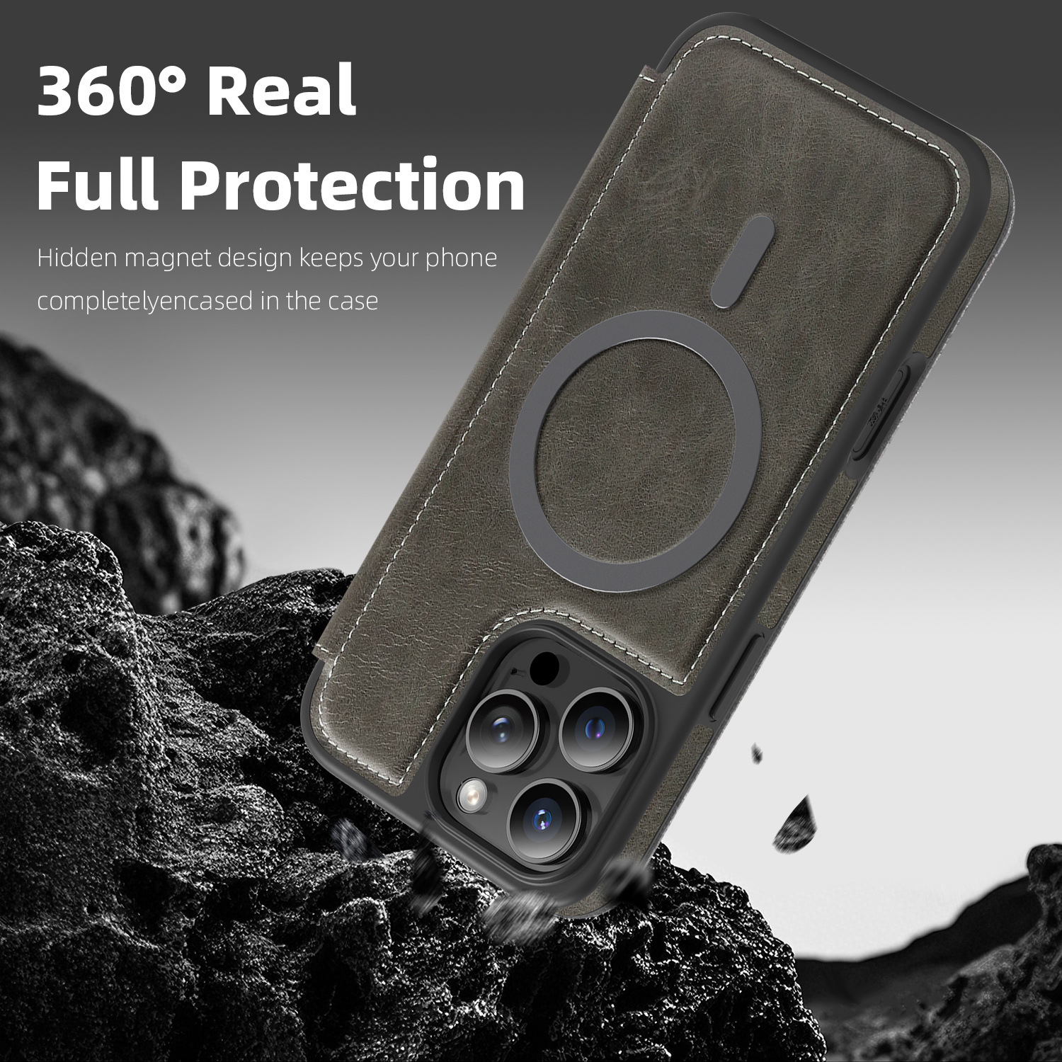 아이폰17 휴대폰 케이스에 적합, 린덴 마그네틱 플립 가죽 케이스, 애플 16ProMax 카드 수납 보호 케이스, 수출용