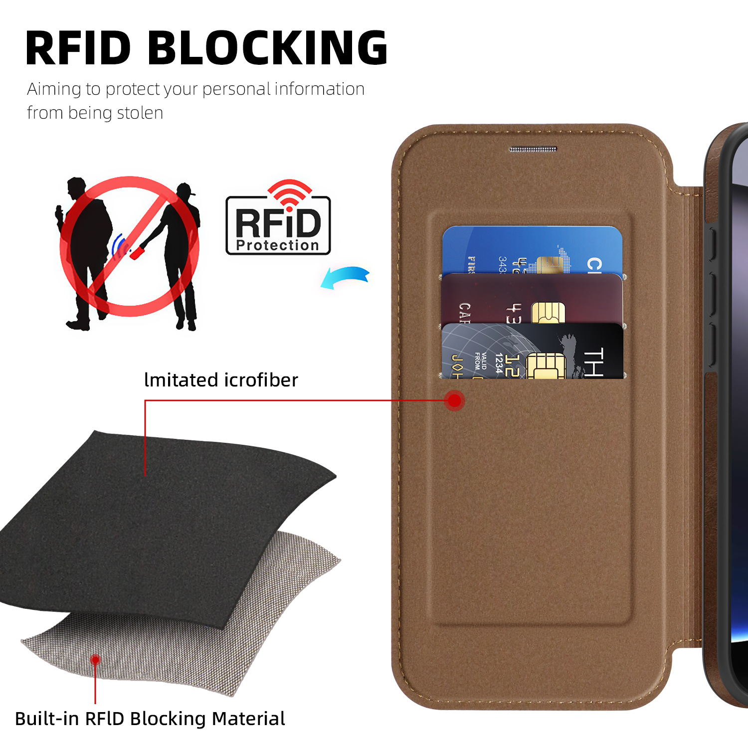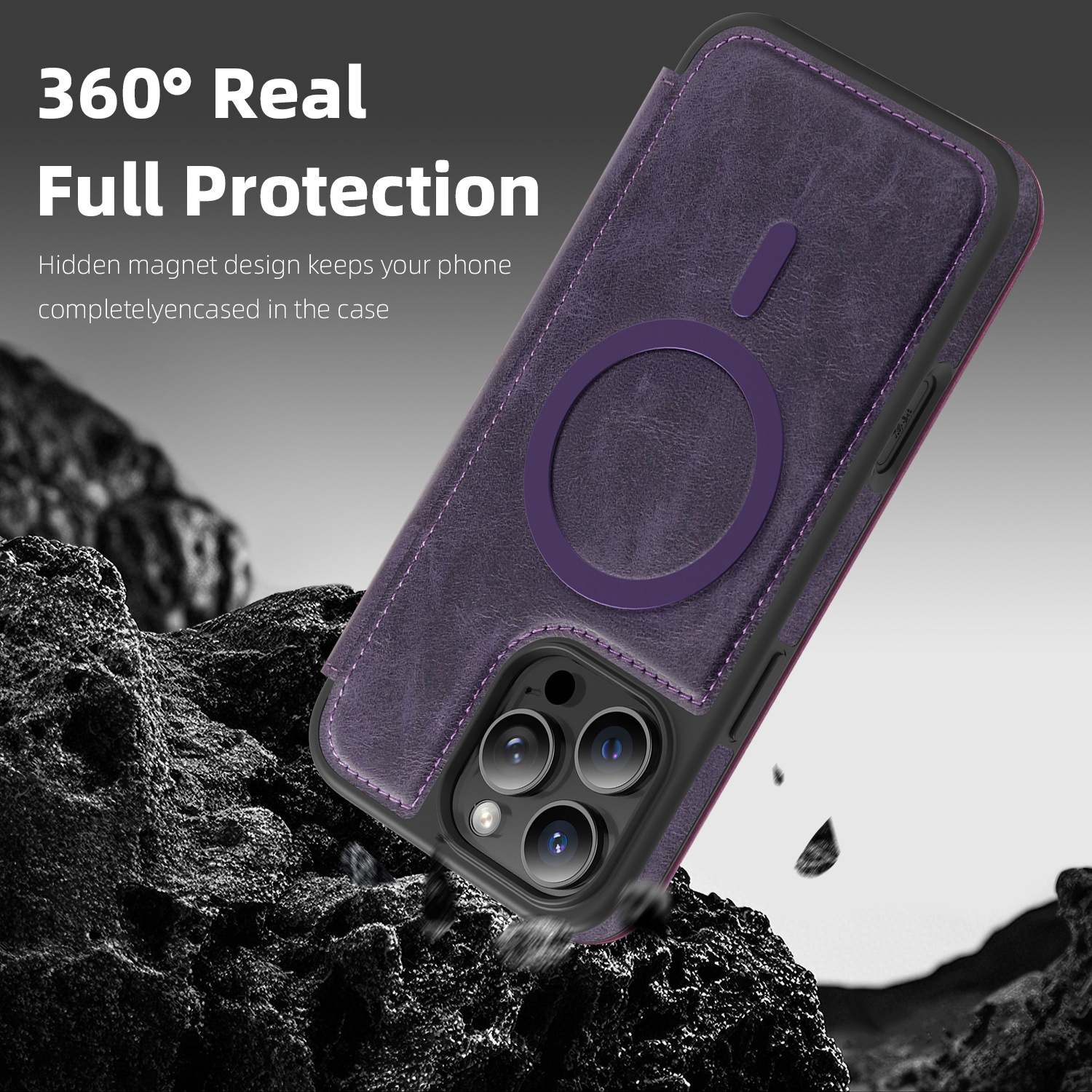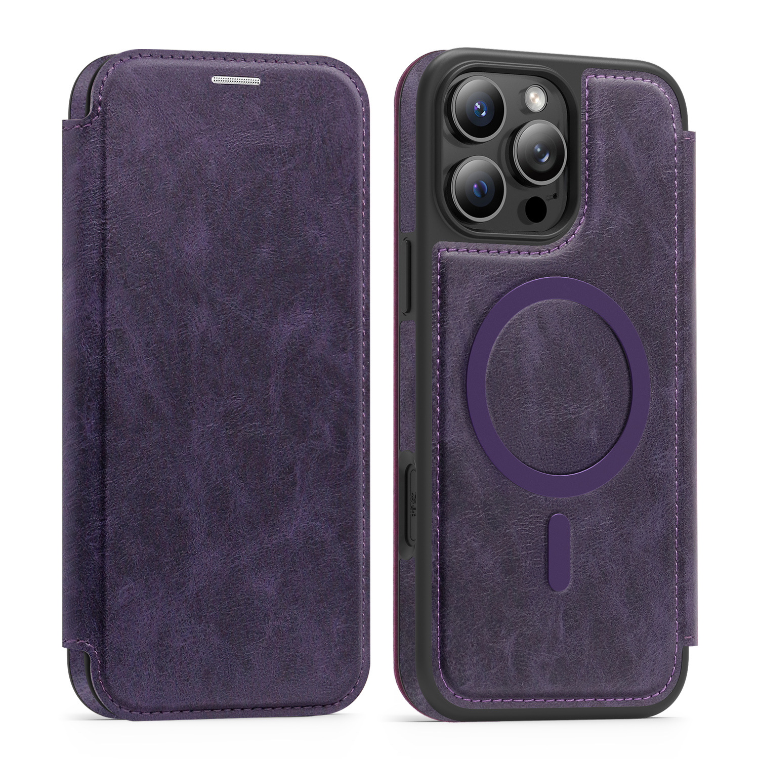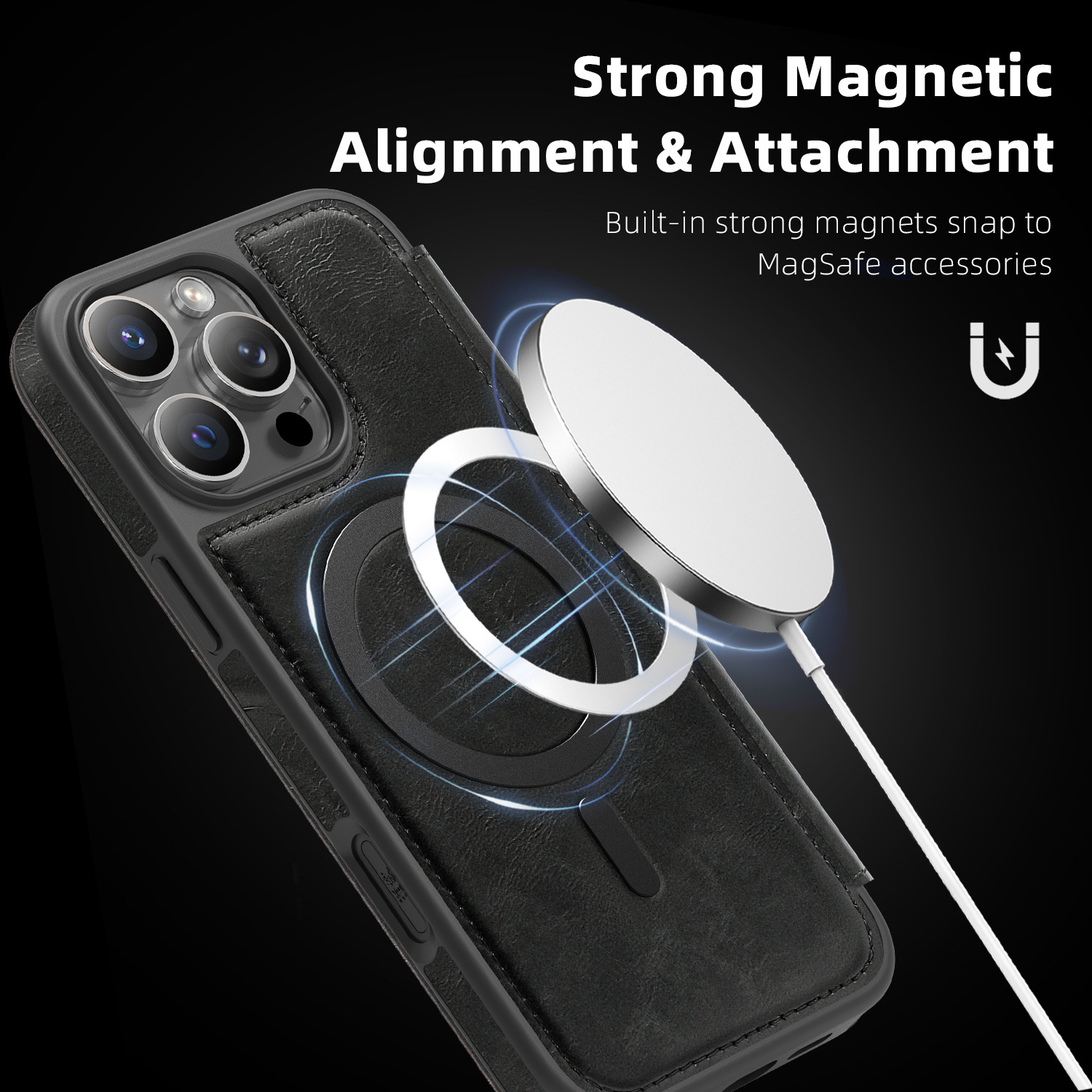 아이폰17 휴대폰 케이스에 적합, 린덴 마그네틱 플립 가죽 케이스, 애플 16ProMax 카드 수납 보호 케이스, 수출용