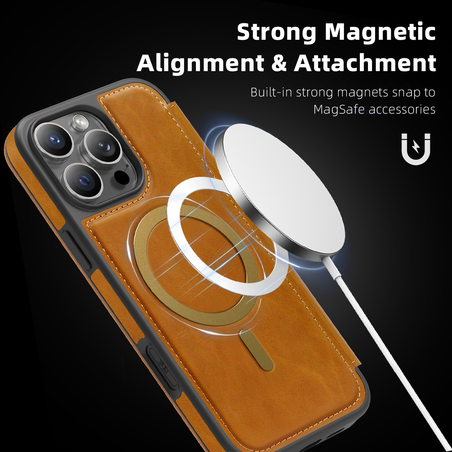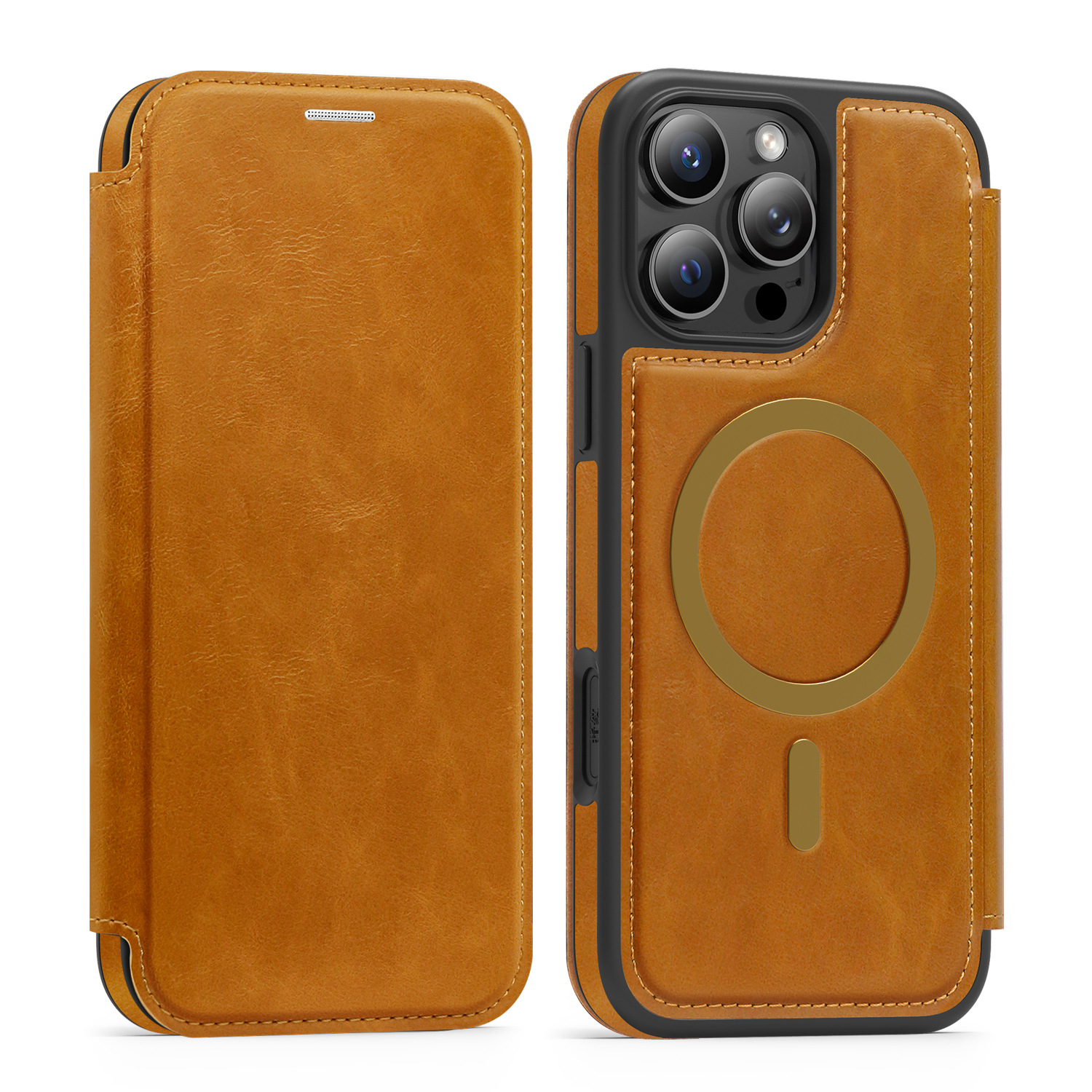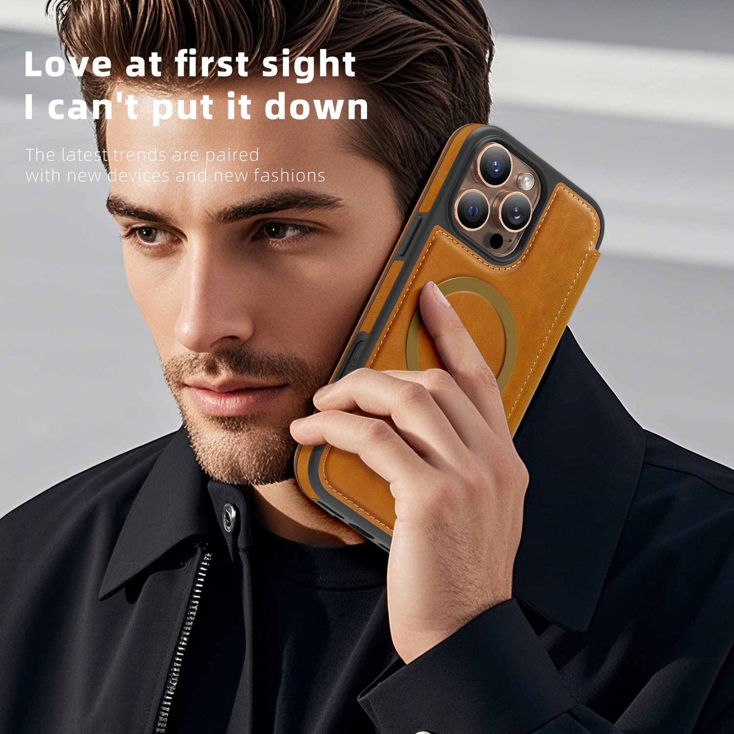 아이폰17 휴대폰 케이스에 적합, 린덴 마그네틱 플립 가죽 케이스, 애플 16ProMax 카드 수납 보호 케이스, 수출용스토어 가기
