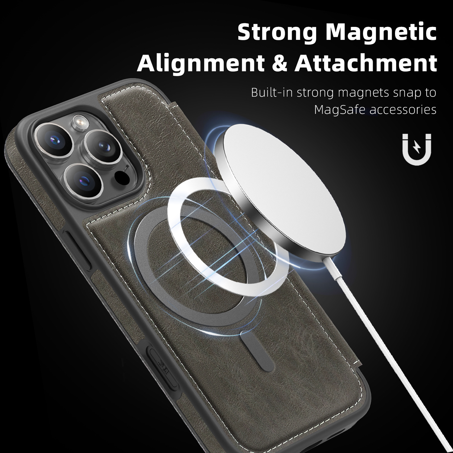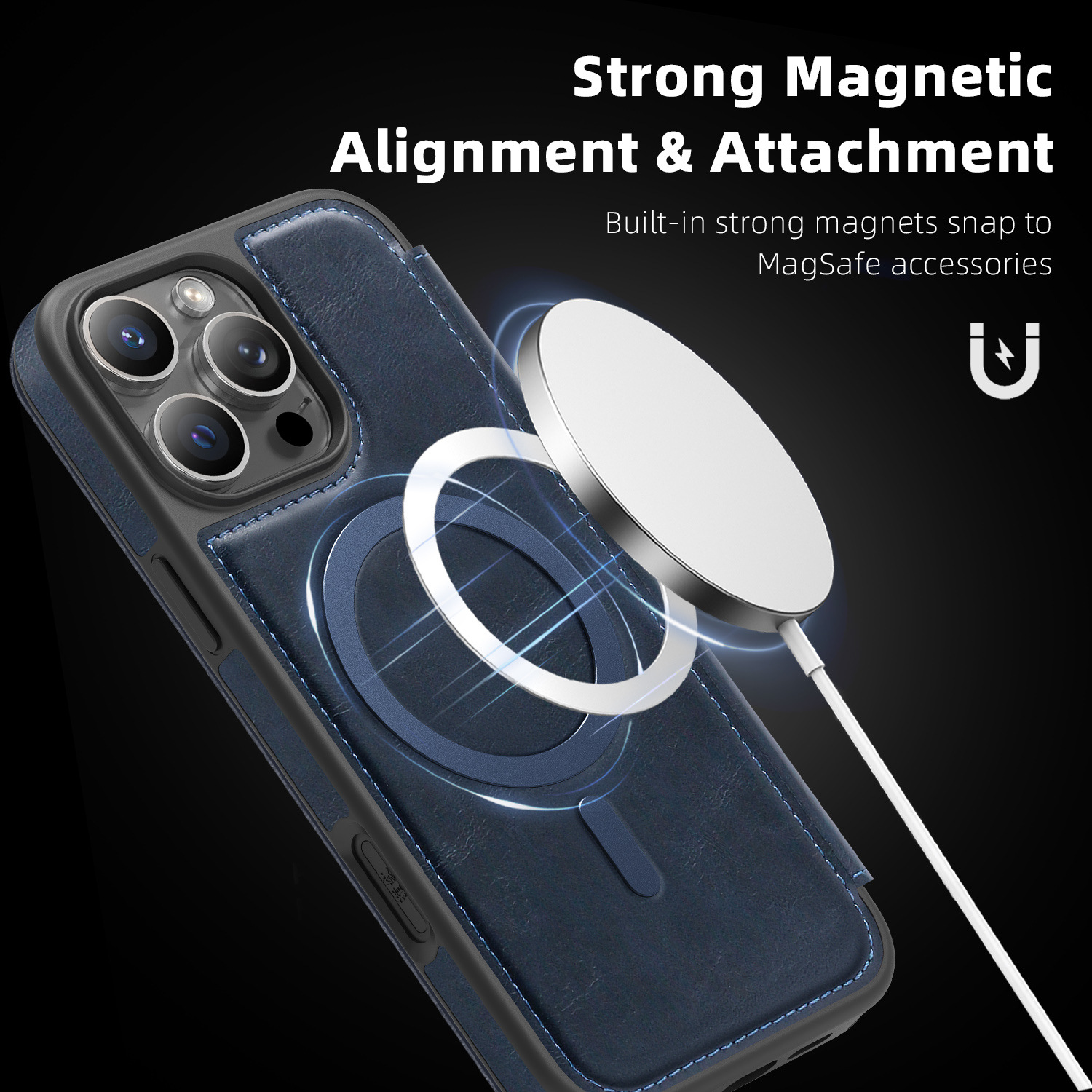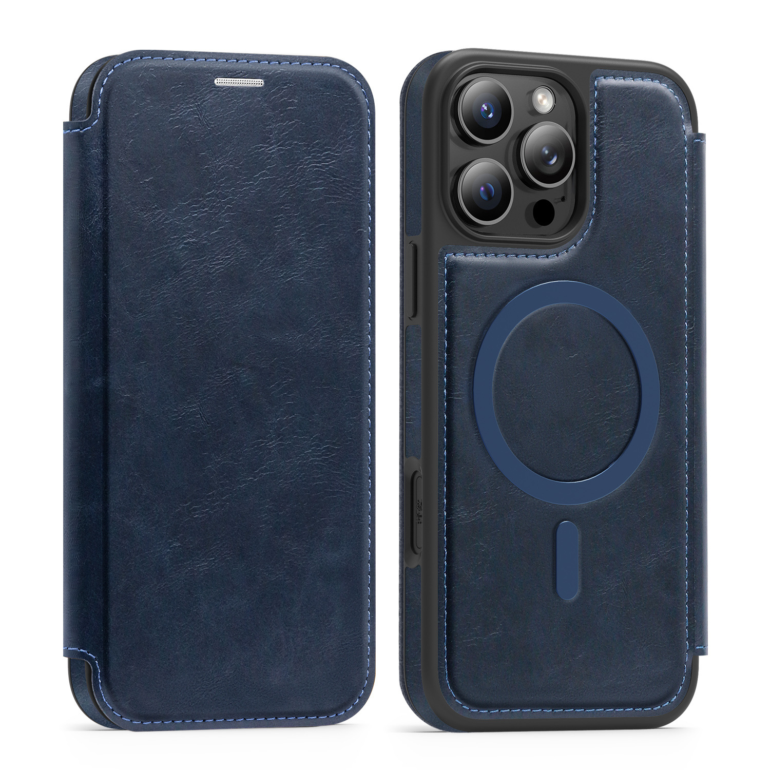 아이폰17 휴대폰 케이스에 적합, 린덴 마그네틱 플립 가죽 케이스, 애플 16ProMax 카드 수납 보호 케이스, 수출용스토어 가기