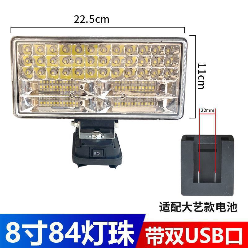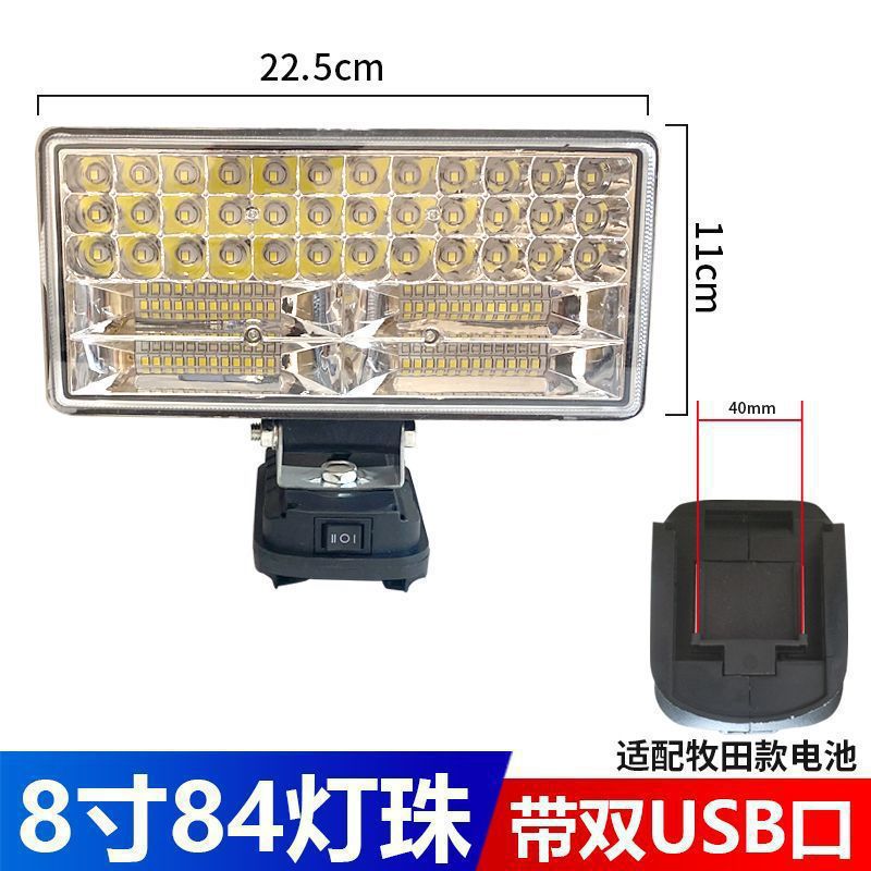 • Makita 배터리 카드 슬롯용 [듀얼 USB 고속 충전 포함] - 8inch 사각 조명 [하이빔 및 로우빔 포함] 배터리는 포함되어 있지 않습니다.