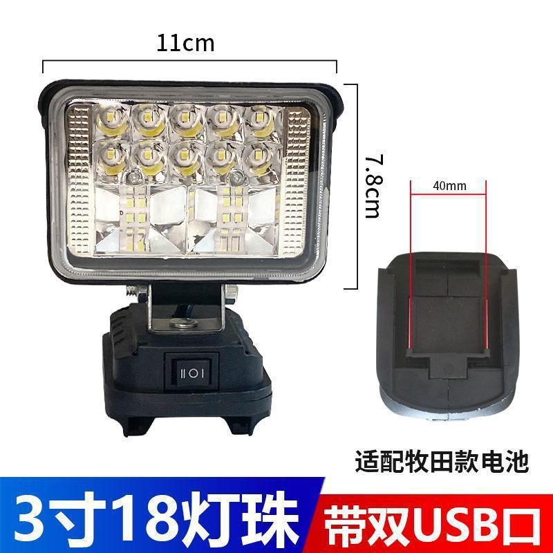 • Makita 배터리 카드 슬롯용 [듀얼 USB 고속 충전 포함] - 4inch 사각 조명 [하이빔 및 로우빔 포함] 배터리는 포함되어 있지 않습니다.