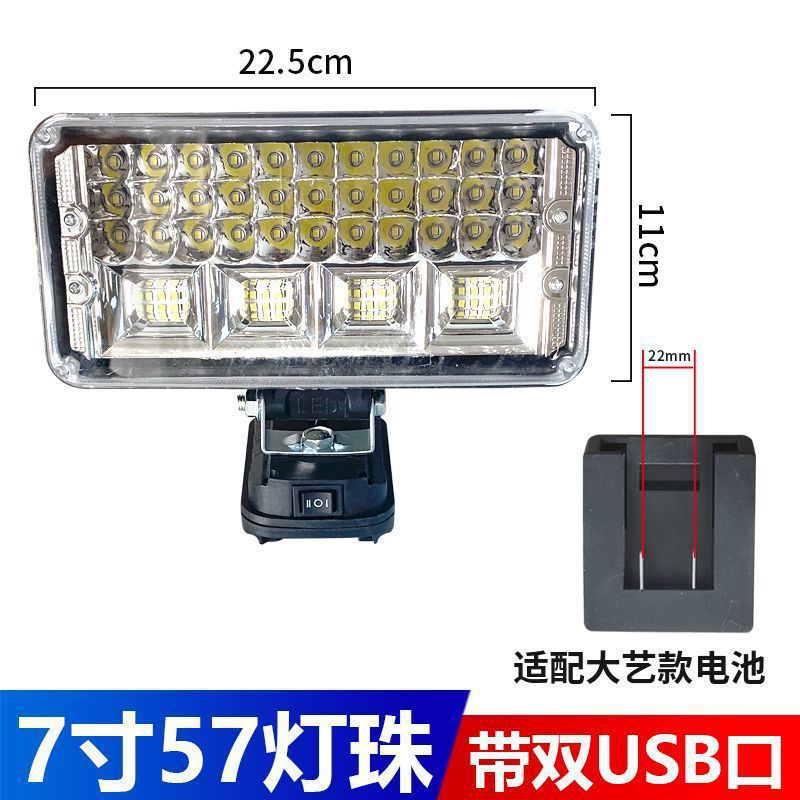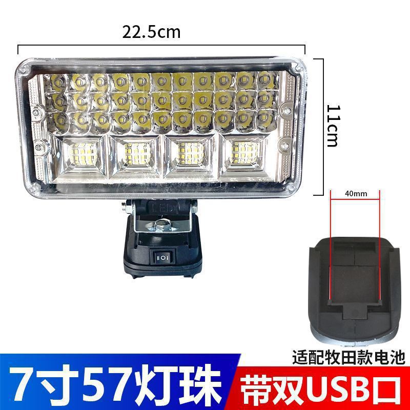 • Makita 배터리 카드 슬롯용 [듀얼 USB 고속 충전 포함] - 7inch 사각 조명 [하이빔 및 로우빔 포함] 배터리는 포함되어 있지 않습니다.
