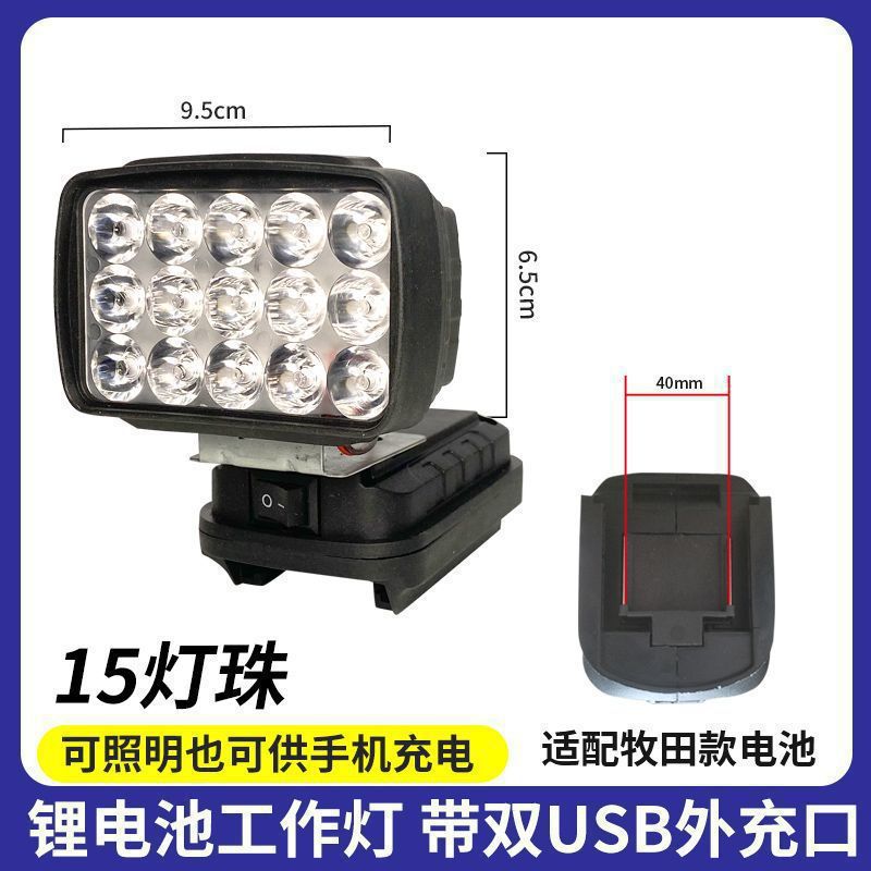 • Makita 배터리 카드 슬롯용 [듀얼 USB 고속 충전 포함] - 5inch 사각 조명 [하이빔 및 로우빔 포함] 배터리는 포함되어 있지 않습니다.