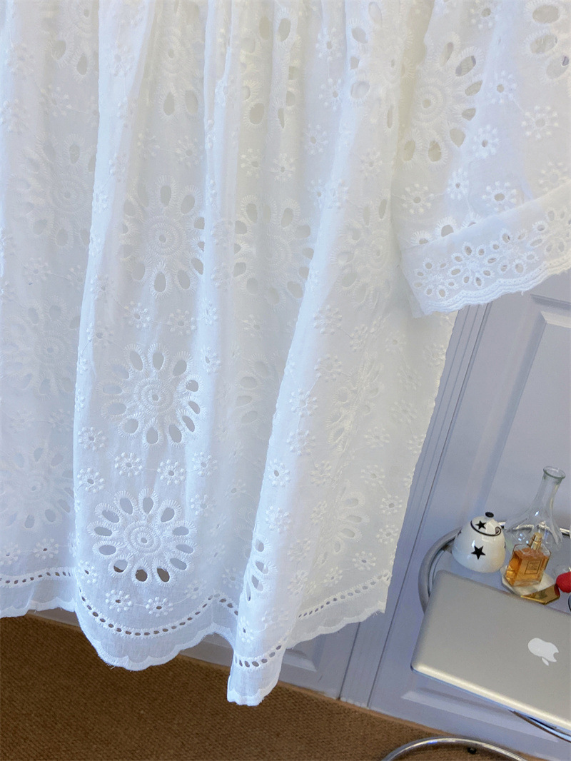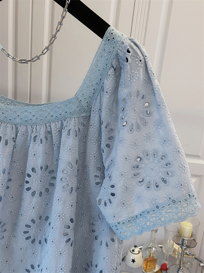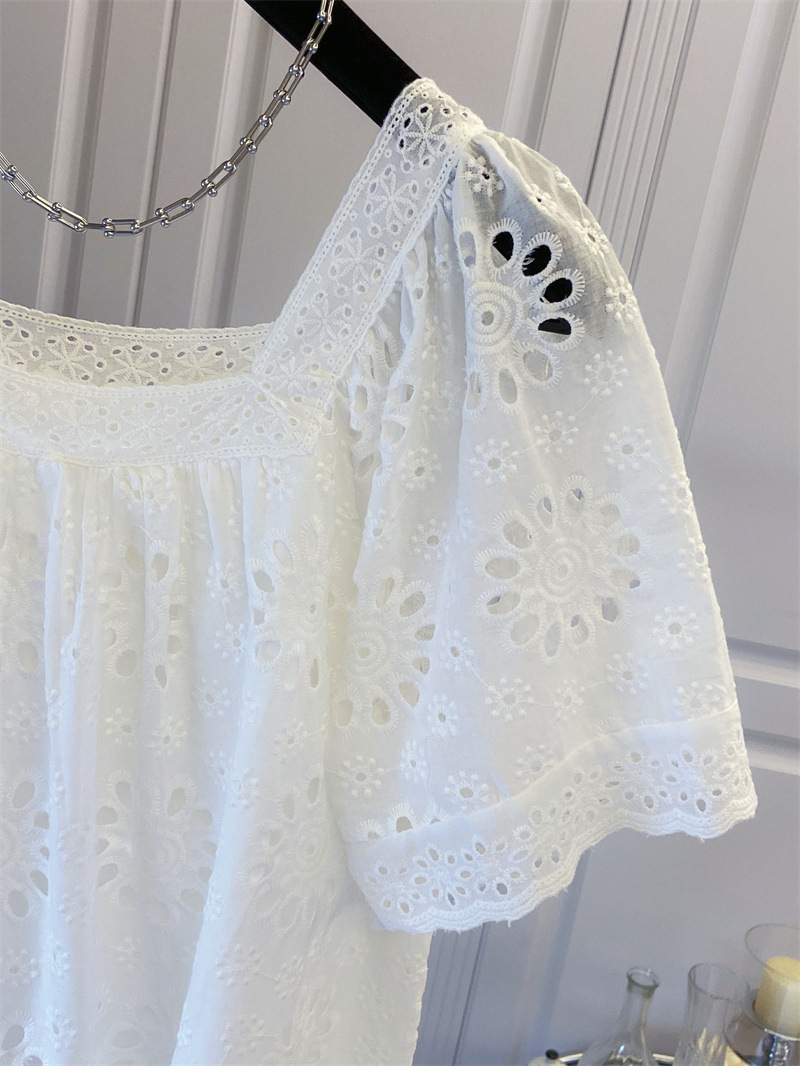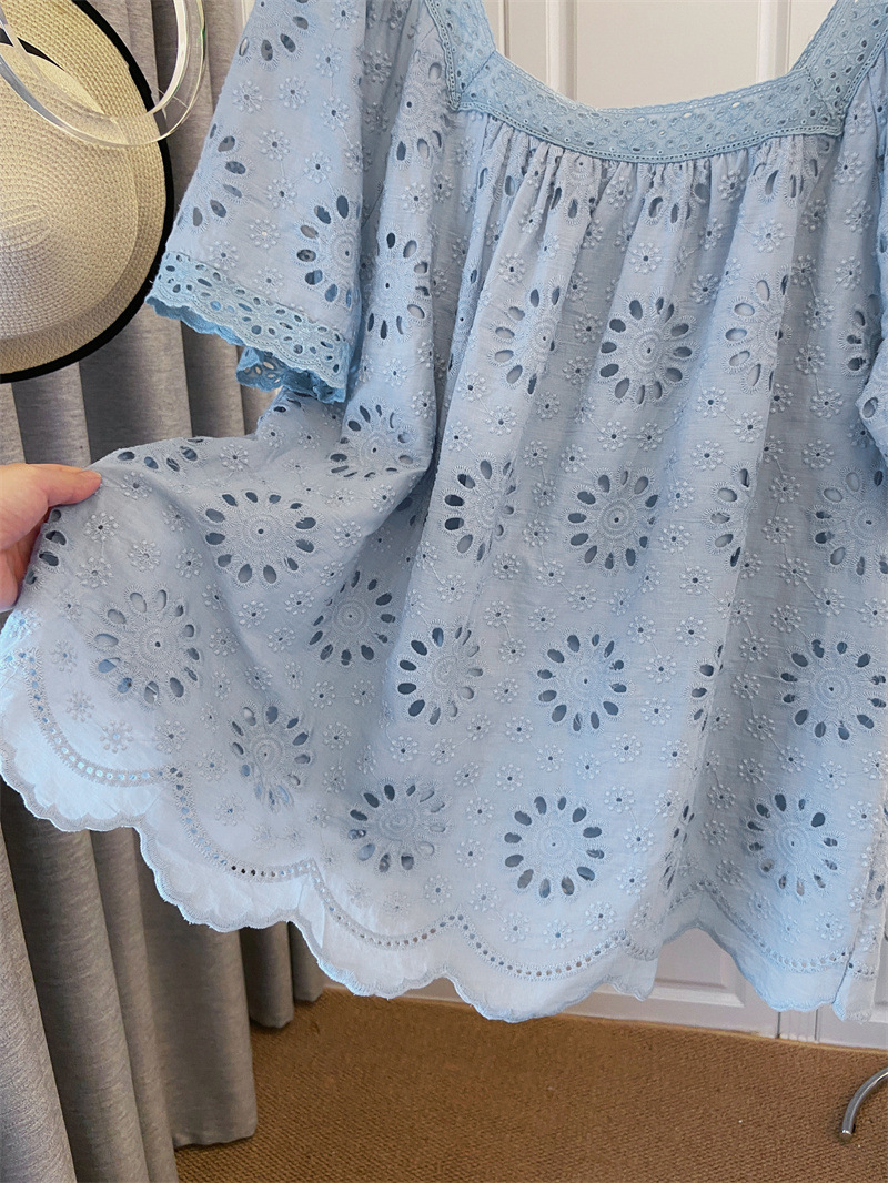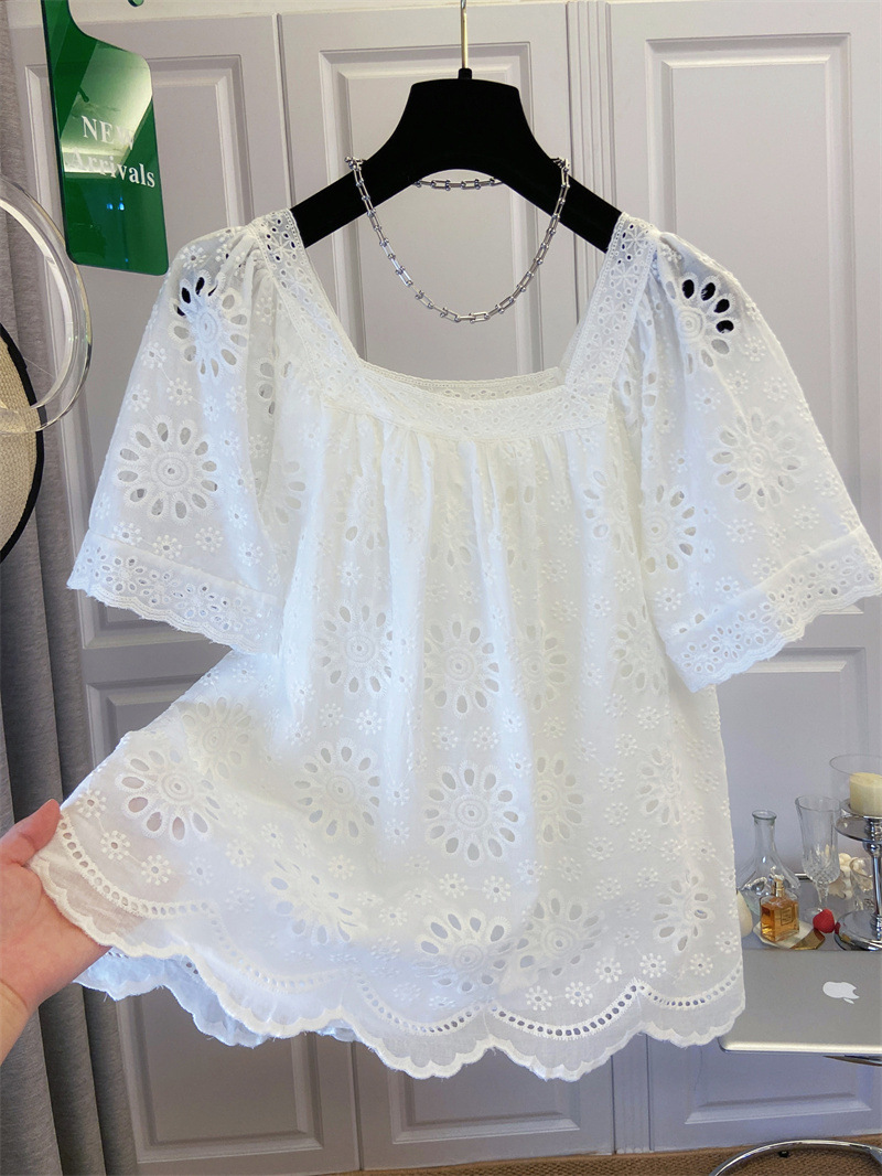 프랑스 스타일 연령 감소 로우 라운드 넥 중공 반팔 쉬폰 셔츠 탑 여성 여름 신작 대형 루즈 스위트 셔츠스토어 가기