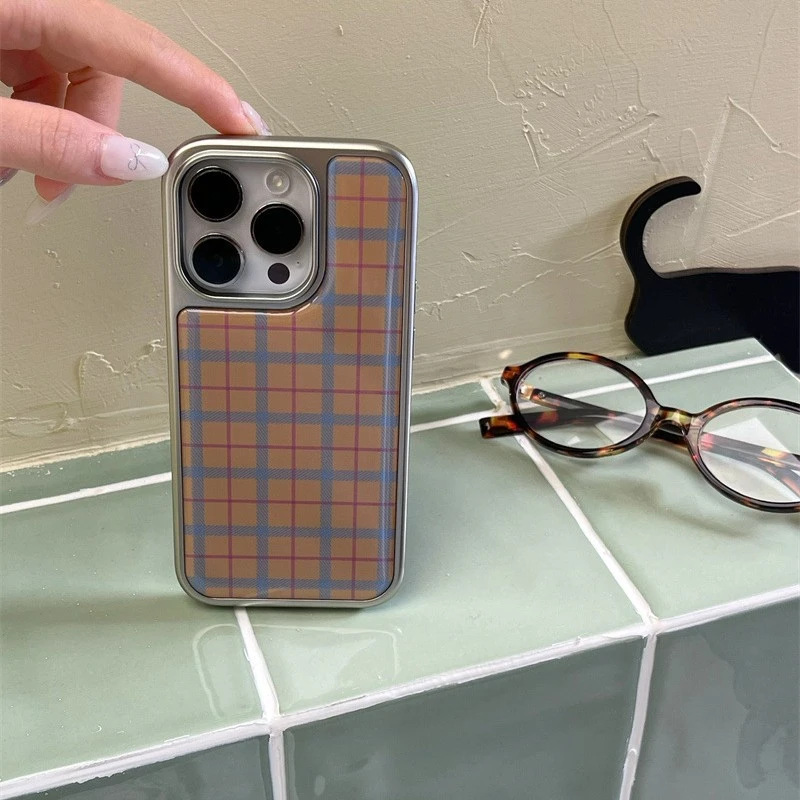 • 전기도금 은색 큰 구멍 투인원 투명 하이드로겔 쉘 [빨간색, 파란색, 갈색 격자 무늬]