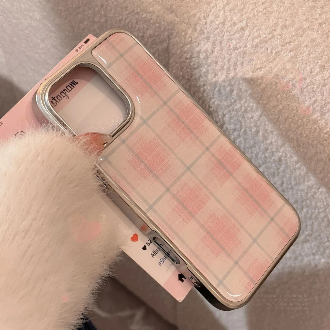 • 전기도금 실버 대형 홀 투인원 투명 하이드로겔 쉘 [핑크 얼룩진 체크 무늬]