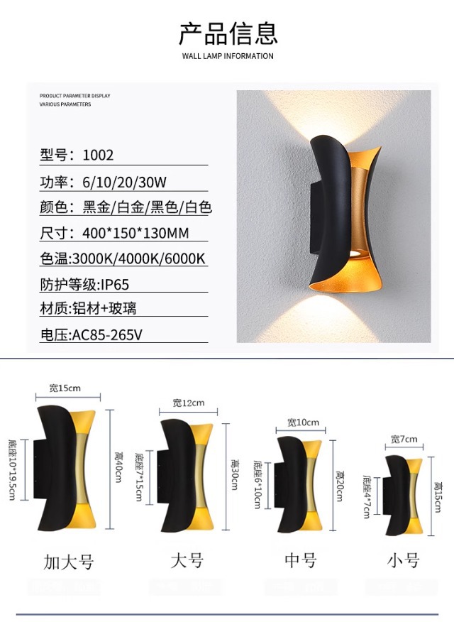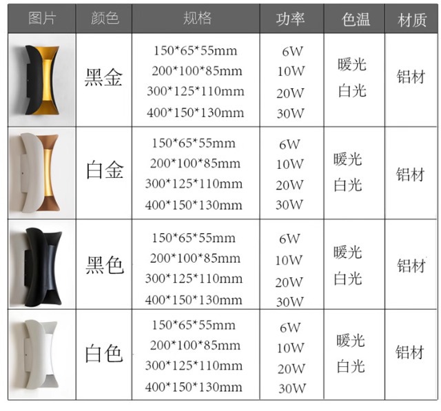 • 200 높이 블랙 골드-따뜻한 백색광-10W 백색광 비고