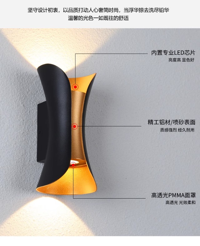 야외 방수 벽 램프 현대 빌라 발코니 안뜰 통로 계단 외부 벽 문 램프 작은 허리 머리맡 벽 램프