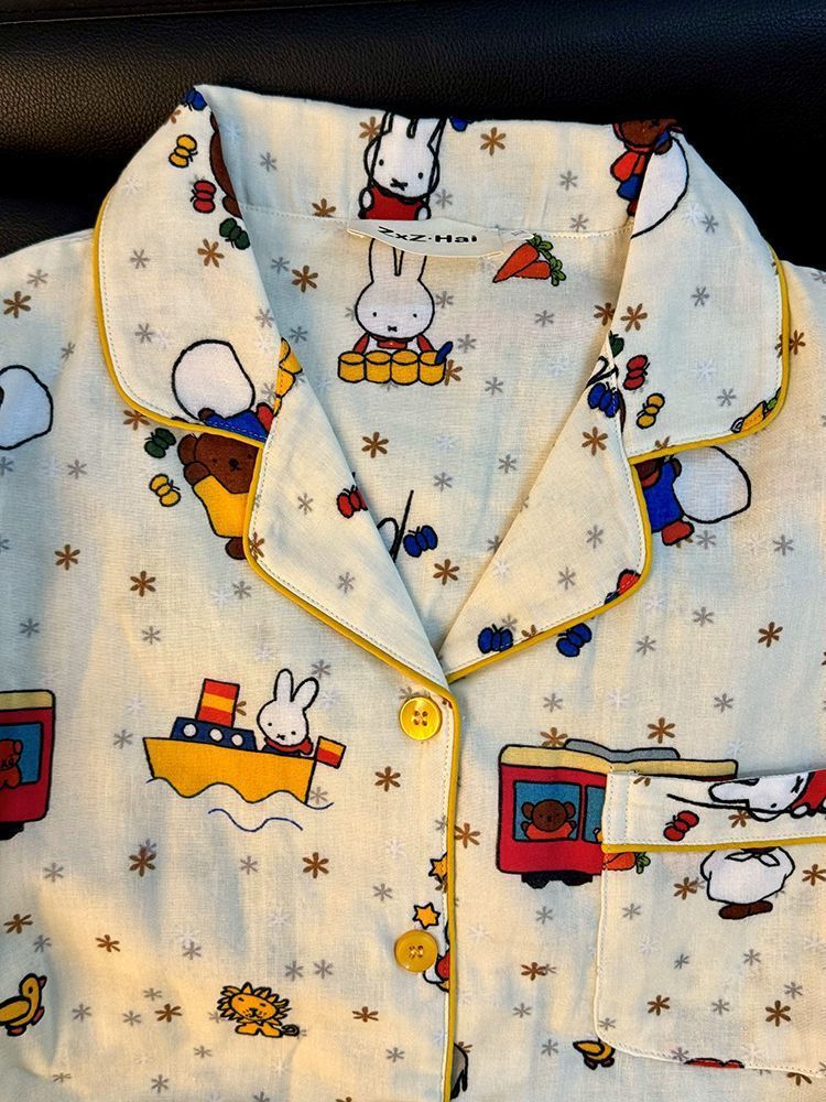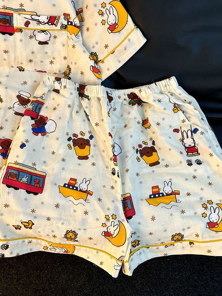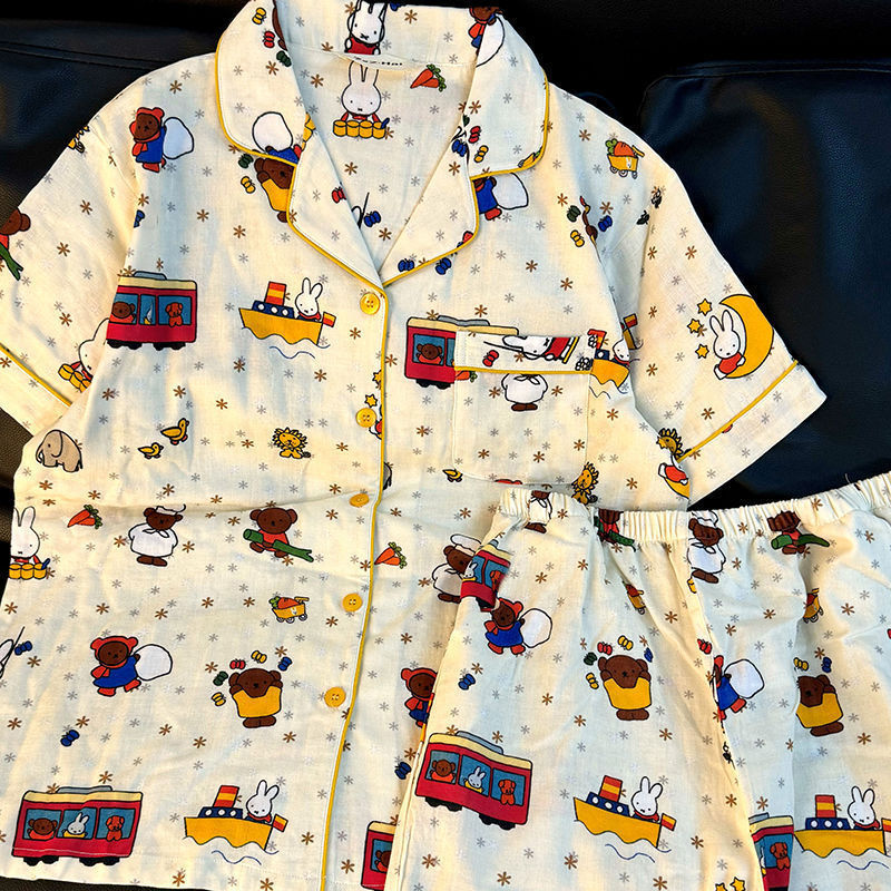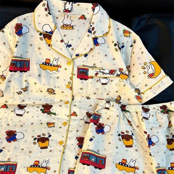 대외 무역 국경 간 인터넷 연예인 생방송 한국 스타일 ins 스타일 여성용 잠옷 여름 달콤한 느슨한 가정복 세트는 외부에서 착용 가능스토어 가기