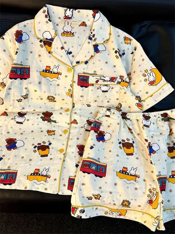 대외 무역 국경 간 인터넷 연예인 생방송 한국 스타일 ins 스타일 여성용 잠옷 여름 달콤한 느슨한 가정복 세트는 외부에서 착용 가능