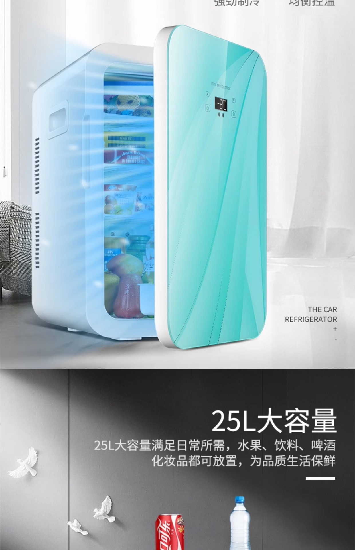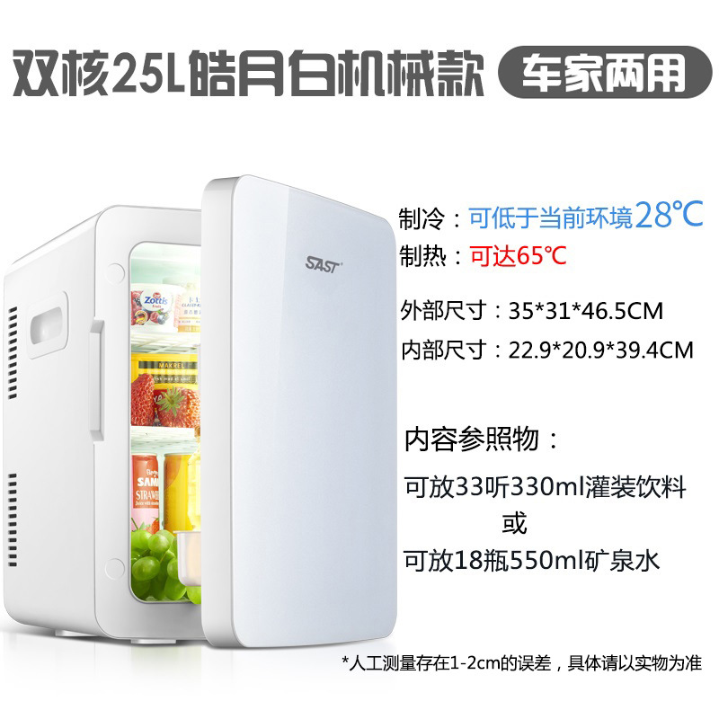 SAST25L 자동차 미니 미니 냉장고 가정용 단일 도어 기숙사 듀얼 코어 냉동 학생 기숙사 자동차 홈 듀얼 사용