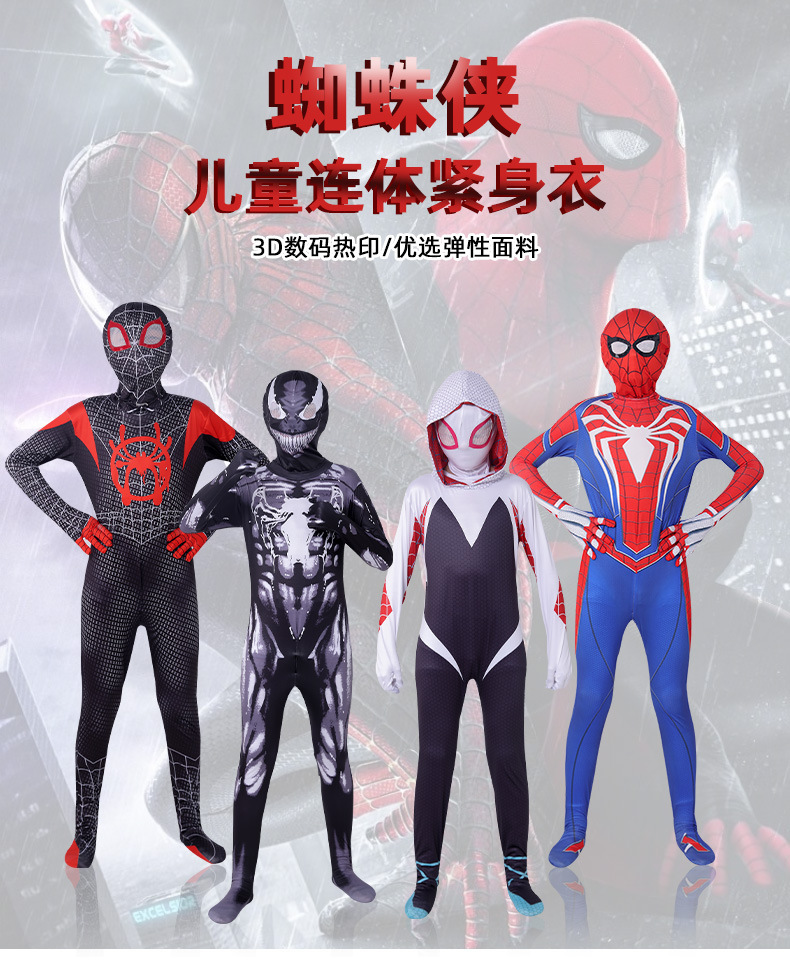 儿童成人经典迈尔斯钢铁远征超凡蜘蛛连体紧身衣cosplay 万圣节服