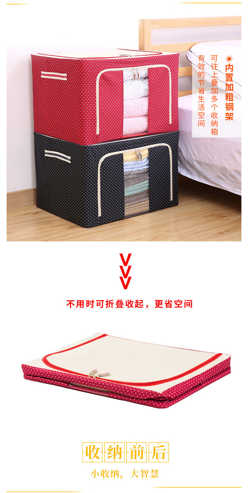 의류 저장 상자 옥스포드 천 방수 강철 프레임 투명 접이식 베너 상자 옷장 이불 저장 차 저장 상자