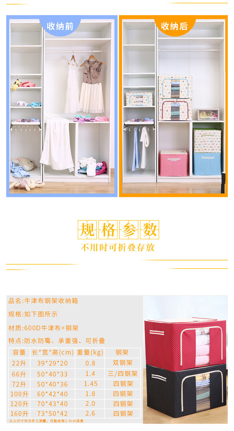 의류 저장 상자 옥스포드 천 방수 강철 프레임 투명 접이식 베너 상자 옷장 이불 저장 차 저장 상자스토어 가기