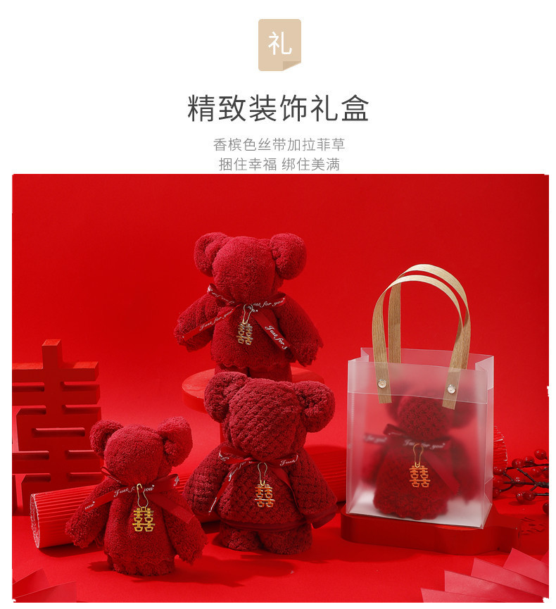창의적이고 실용적인 웨딩 기념품, 버건디 베어 타월, 웨딩 펜던트, 웨딩 캔디 박스, 웨딩 스카프