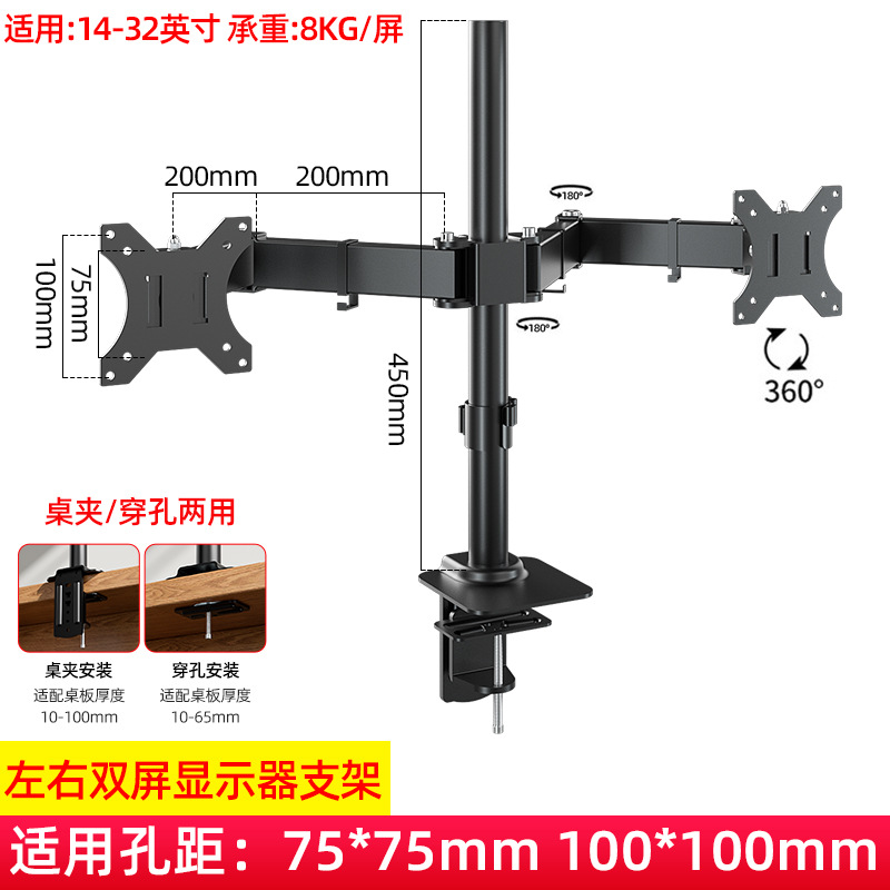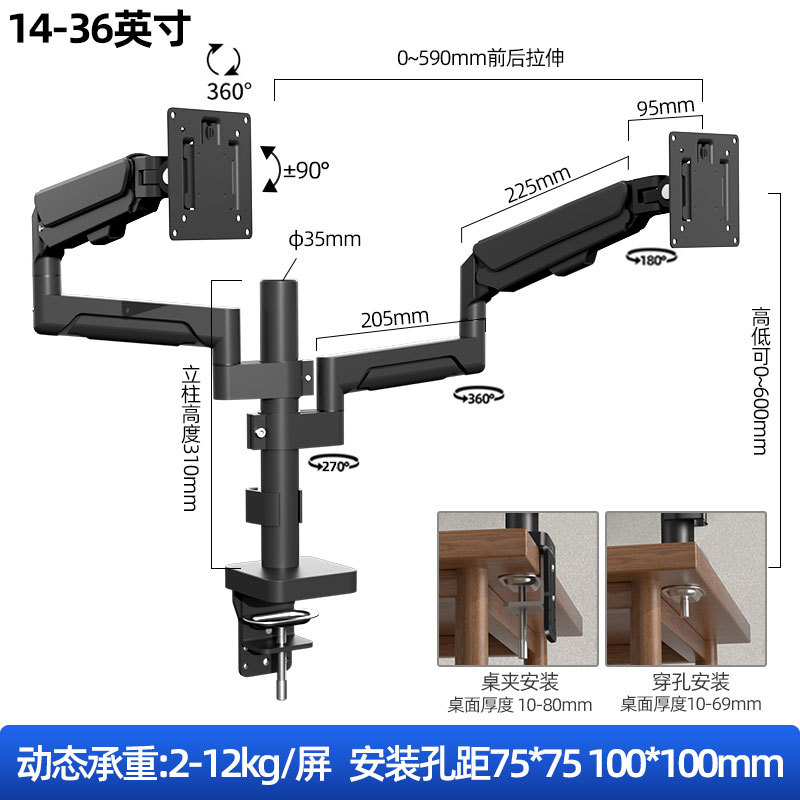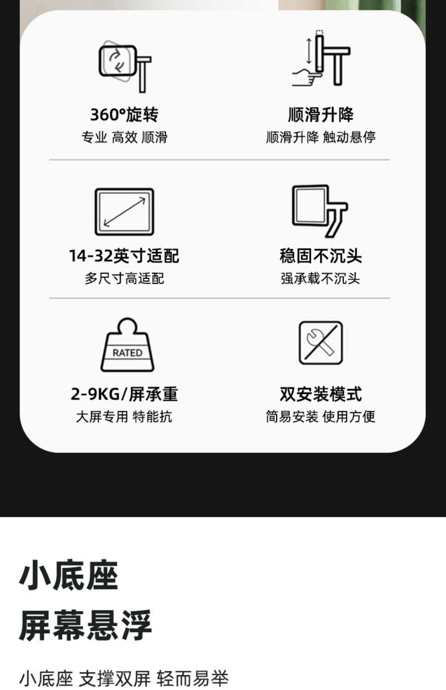듀얼 스크린 데스크탑 컴퓨터 모니터 브래킷 기계식 암 24/27/32 인치 스크린 데스크탑 리프팅 캔틸레버베이스
