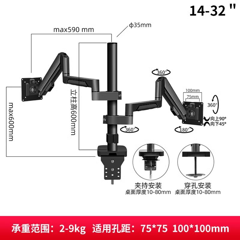 • 기계식 지원 암 14-32inch / 좌우 듀얼 스크린