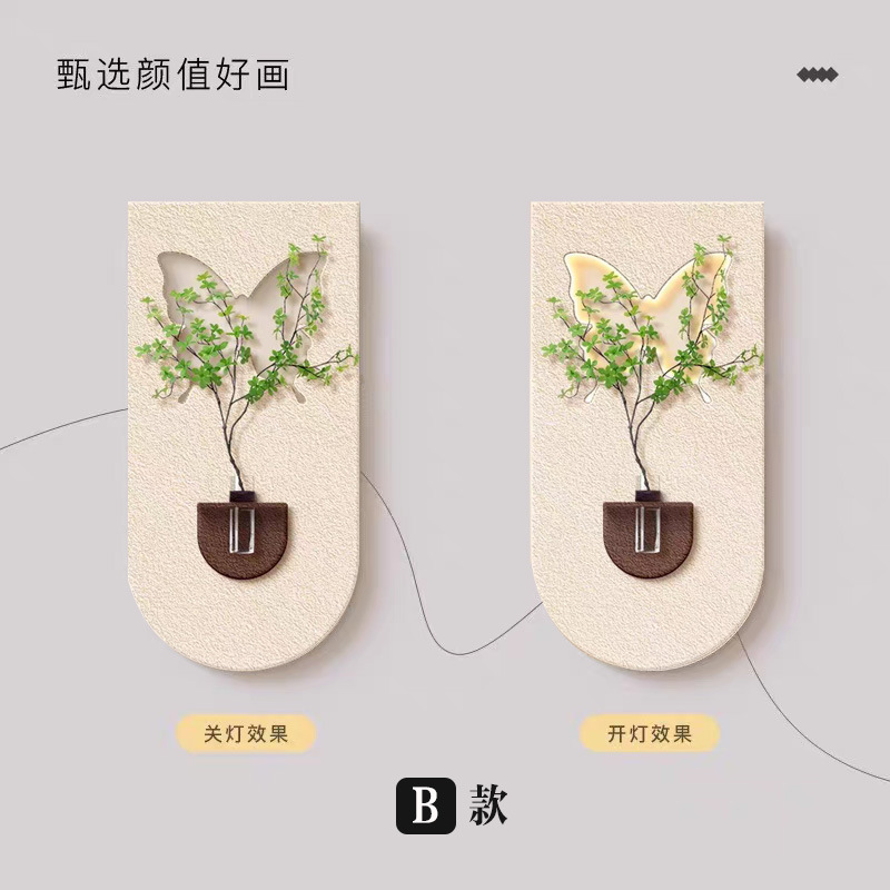 입구 및 복도 벽화를 위한 입체적인 사암 수경 녹색 식물 조명 그림 거실 TV 배경 벽걸이 그림스토어 가기