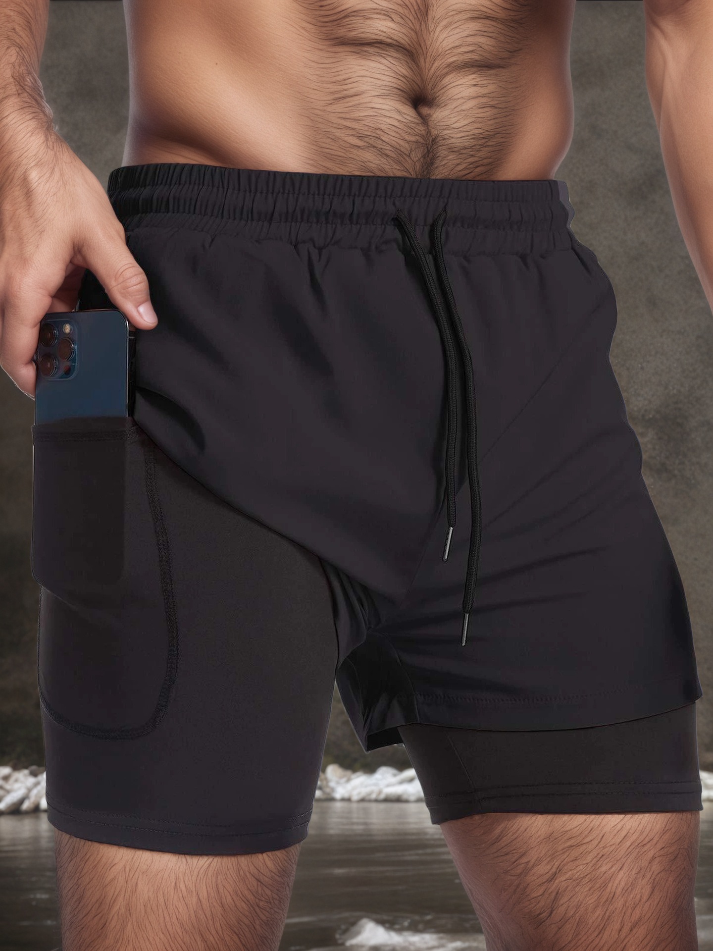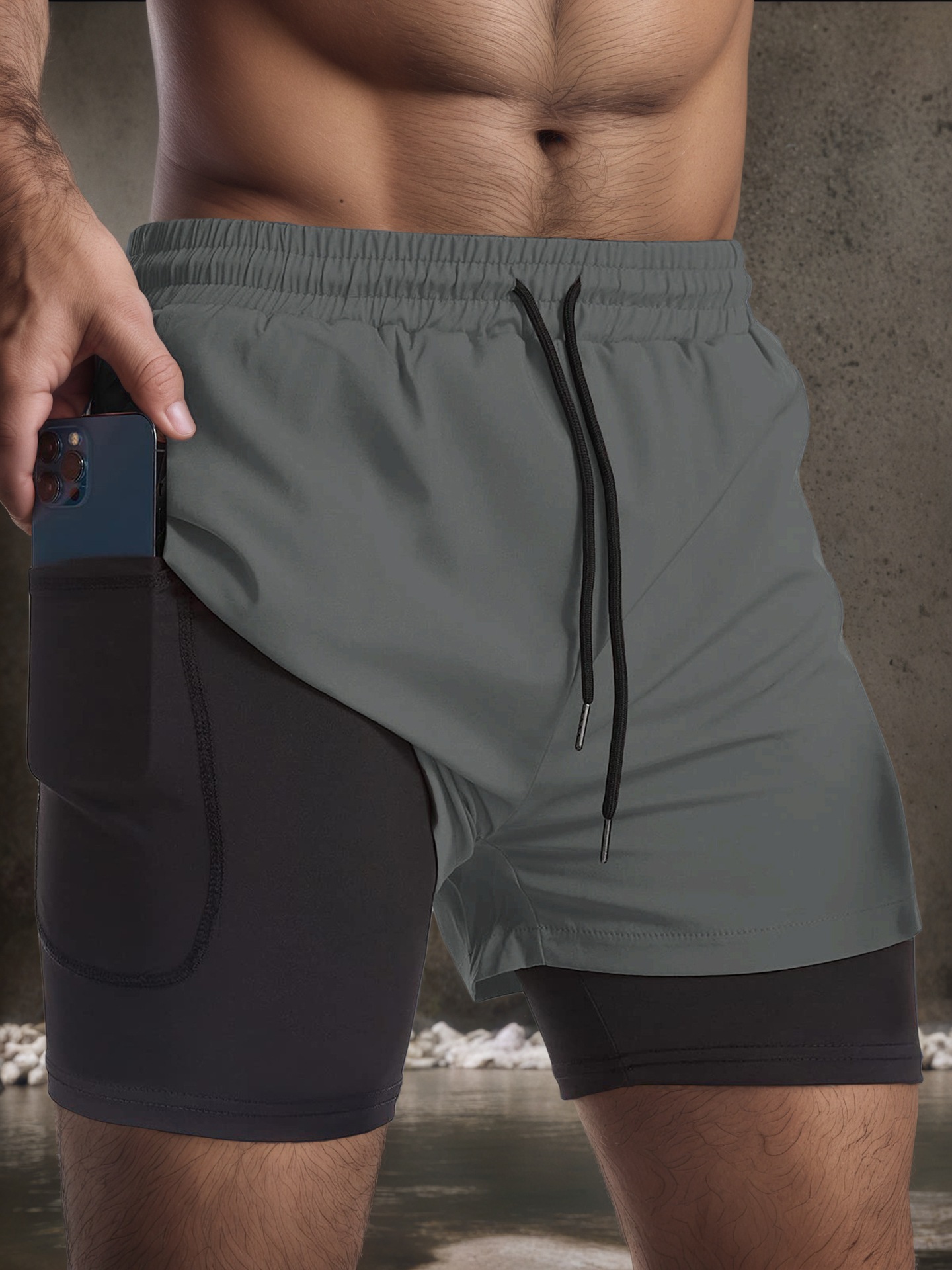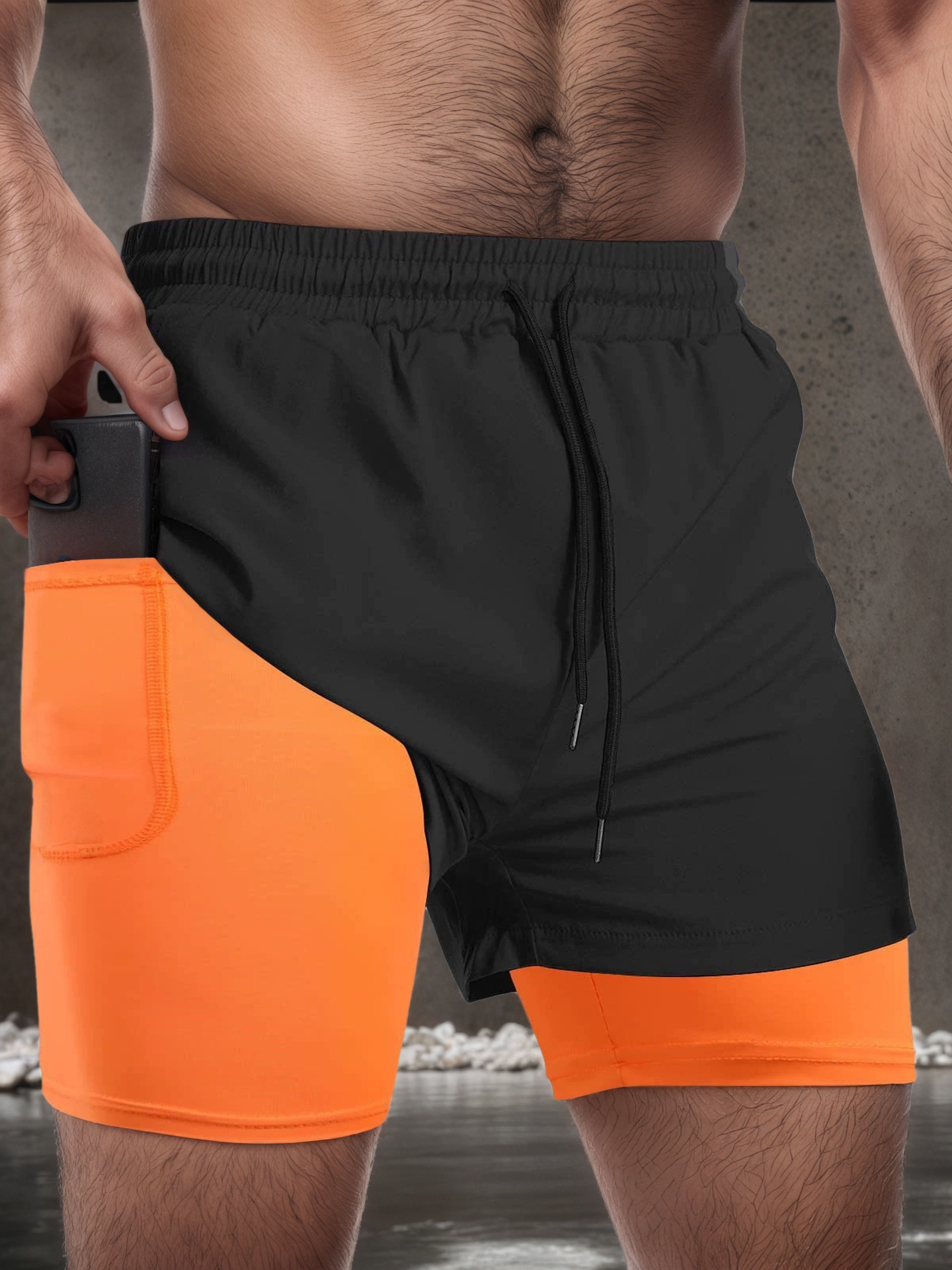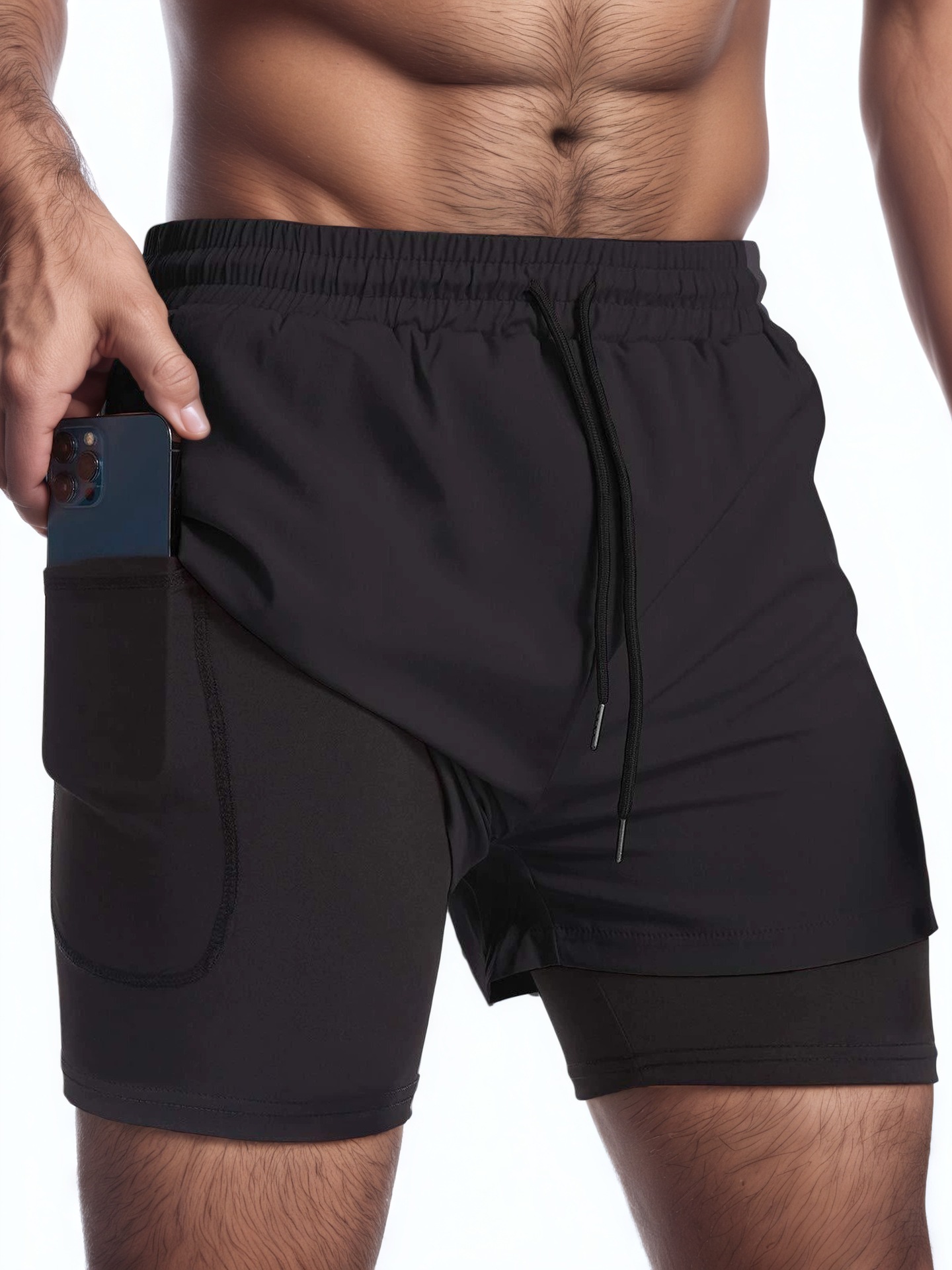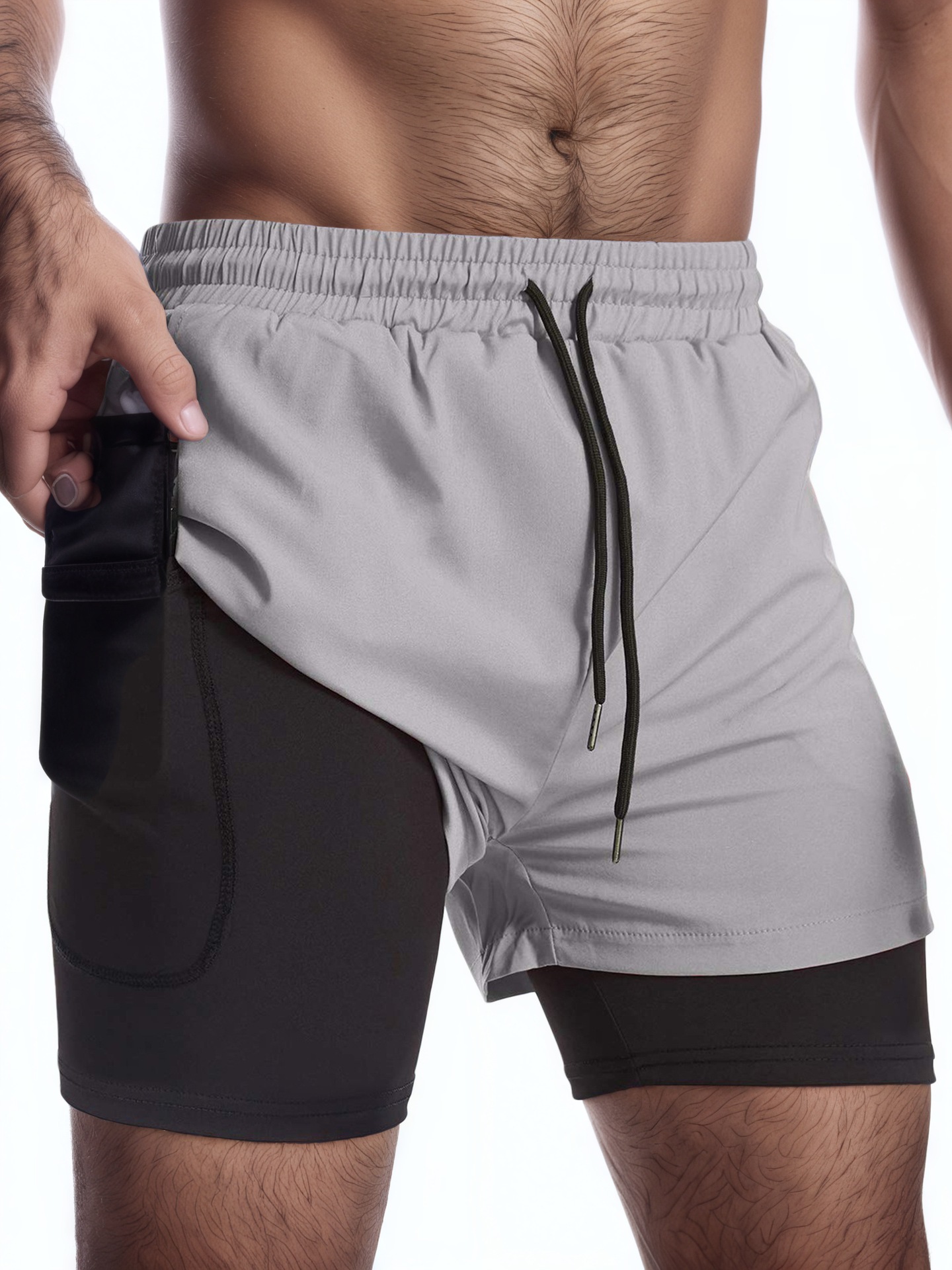 여름 스포츠 반바지 남자 달리기 마라톤 트랙 및 필드 느슨한 3 점 바지 빠른 건조 라인 더블 레이어 반바지스토어 가기