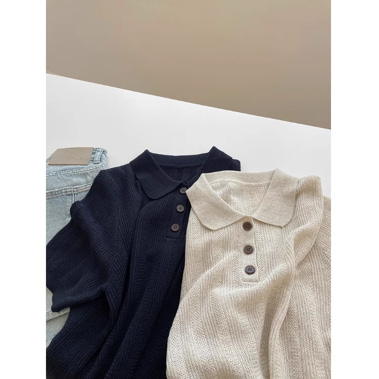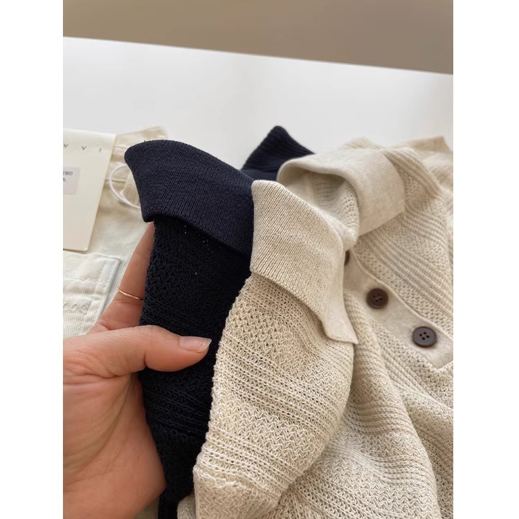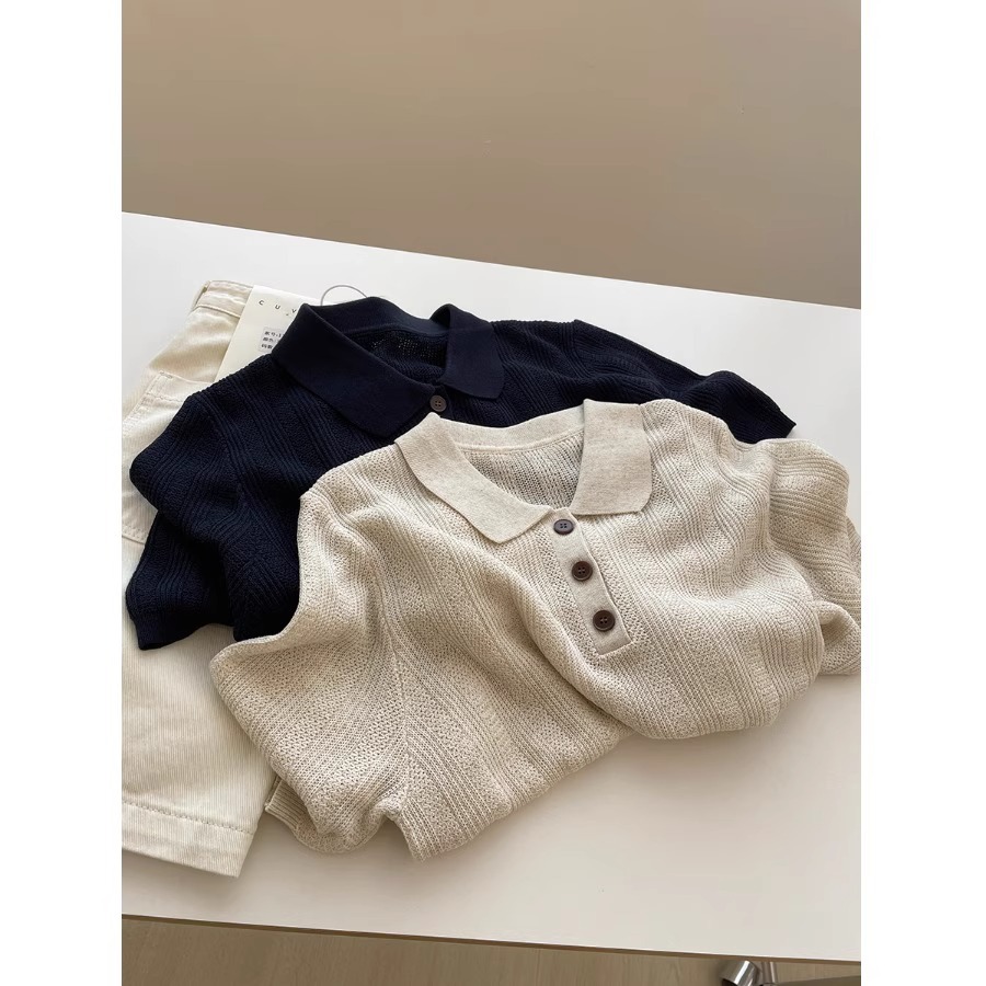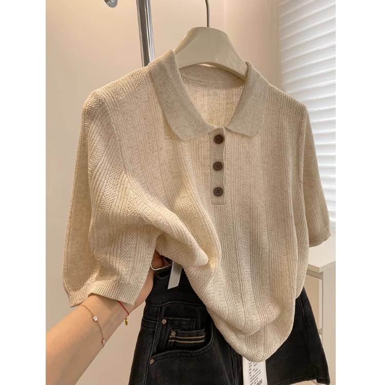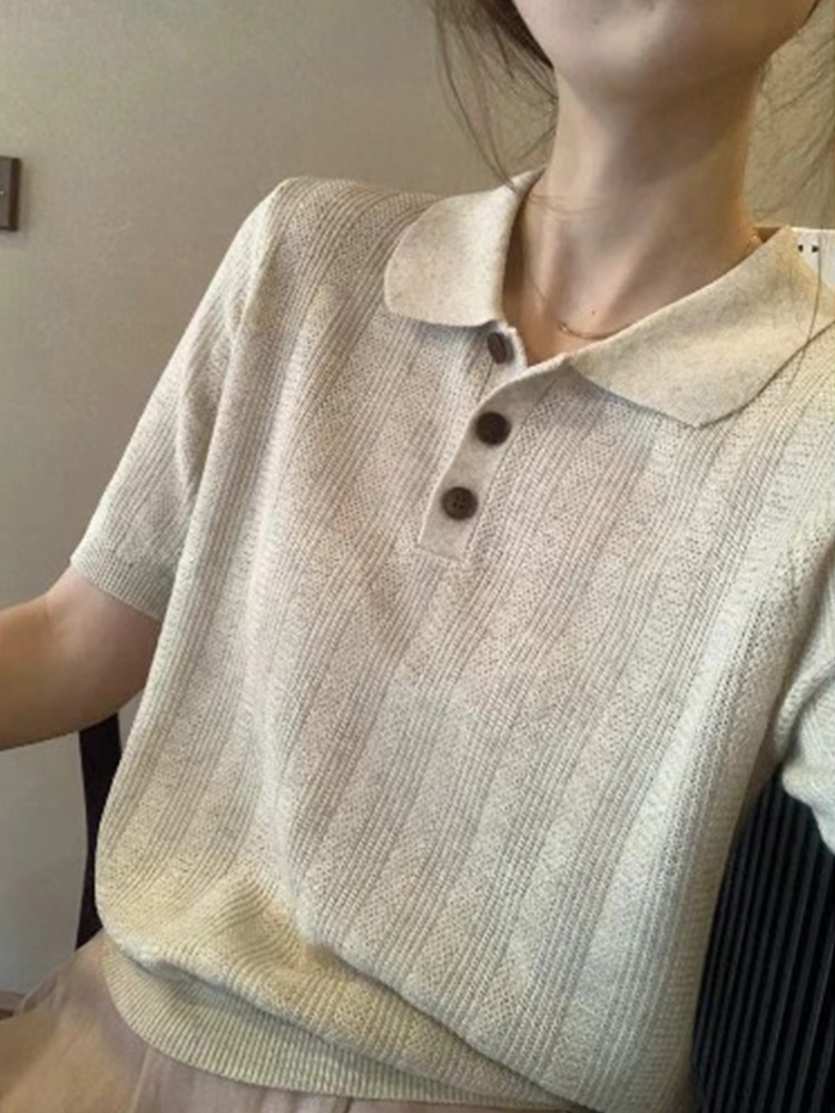 프렌치 린넨 아이스 실크 라펠 니트 반팔 티셔츠 여성용 2026 여름 스타일리쉬하고 다재다능한 슬림핏 폴로 셔츠 탑스토어 가기