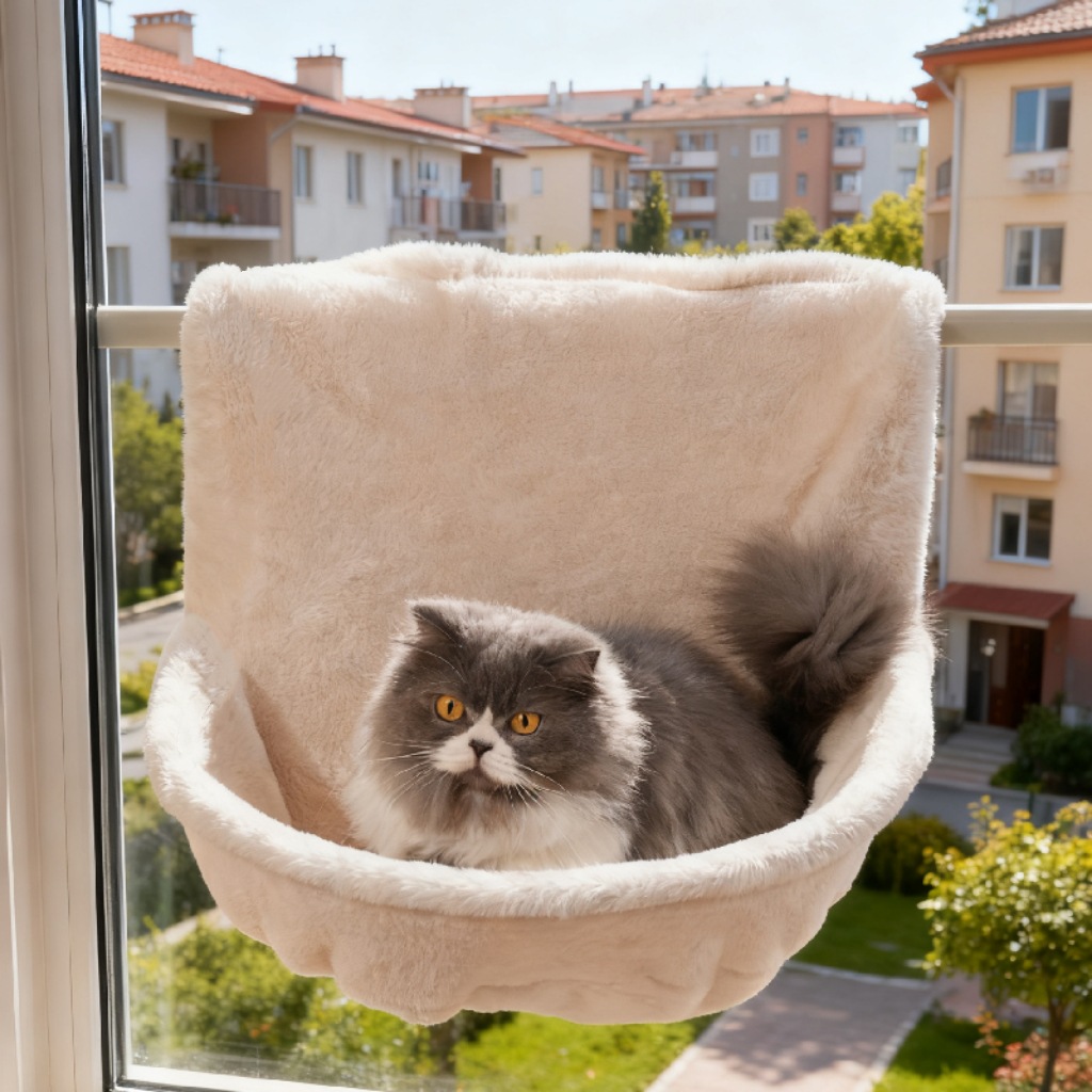 국경을 넘는 새로운 진짜 얼음 콩 고양이 둥지 교수형 둥지 고양이 분해 및 세척 가능한 고양이 매트 L자형 메쉬 해먹 고양이 등반 침대 애완 동물 둥지