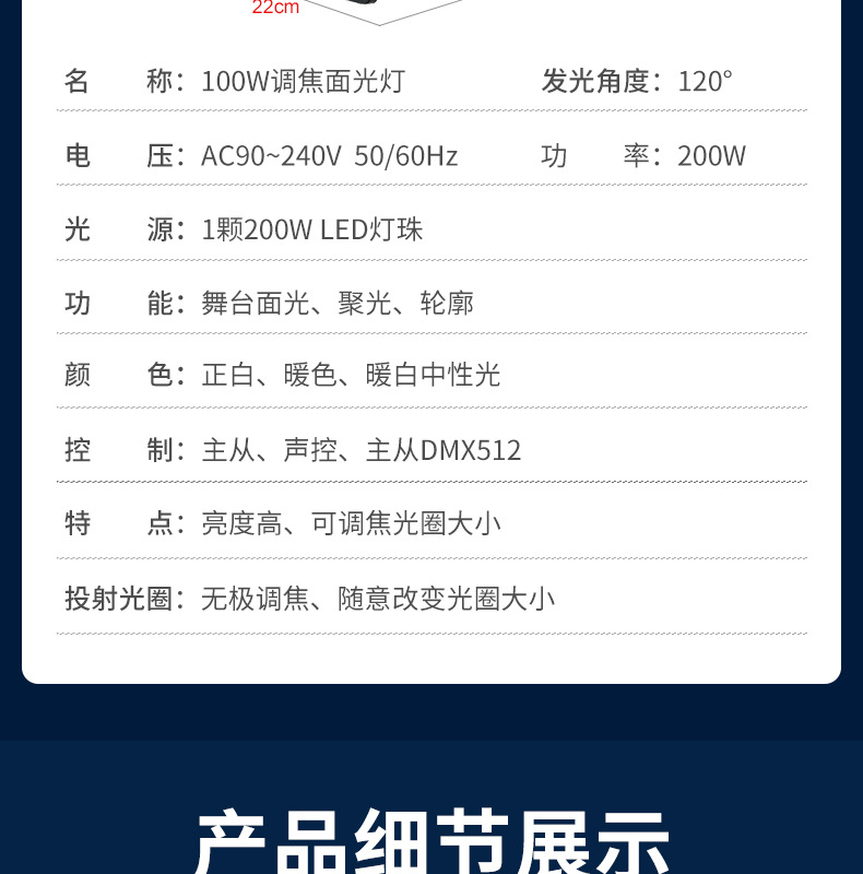 • 200W 포커싱 표면 조명 [따뜻한 색상] 3200K
