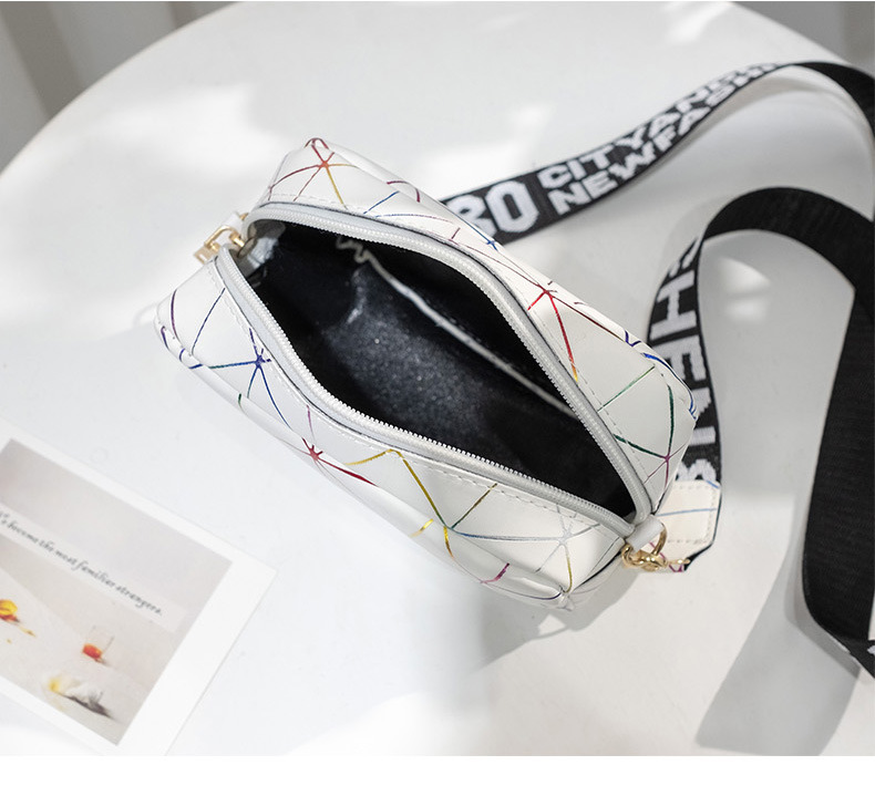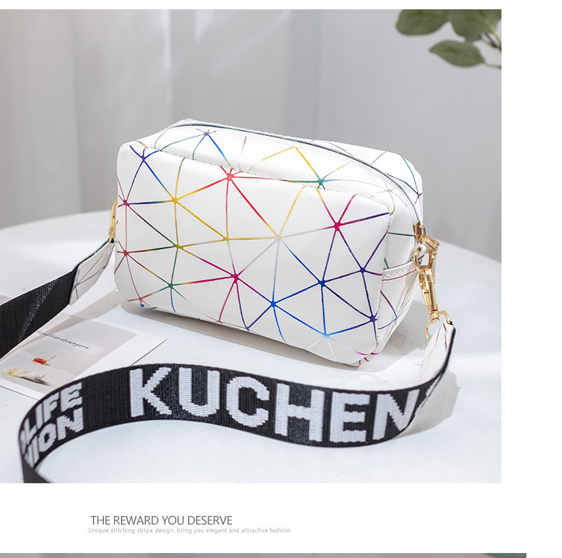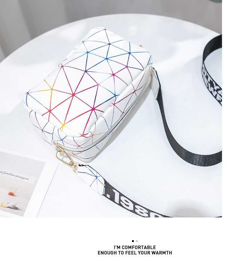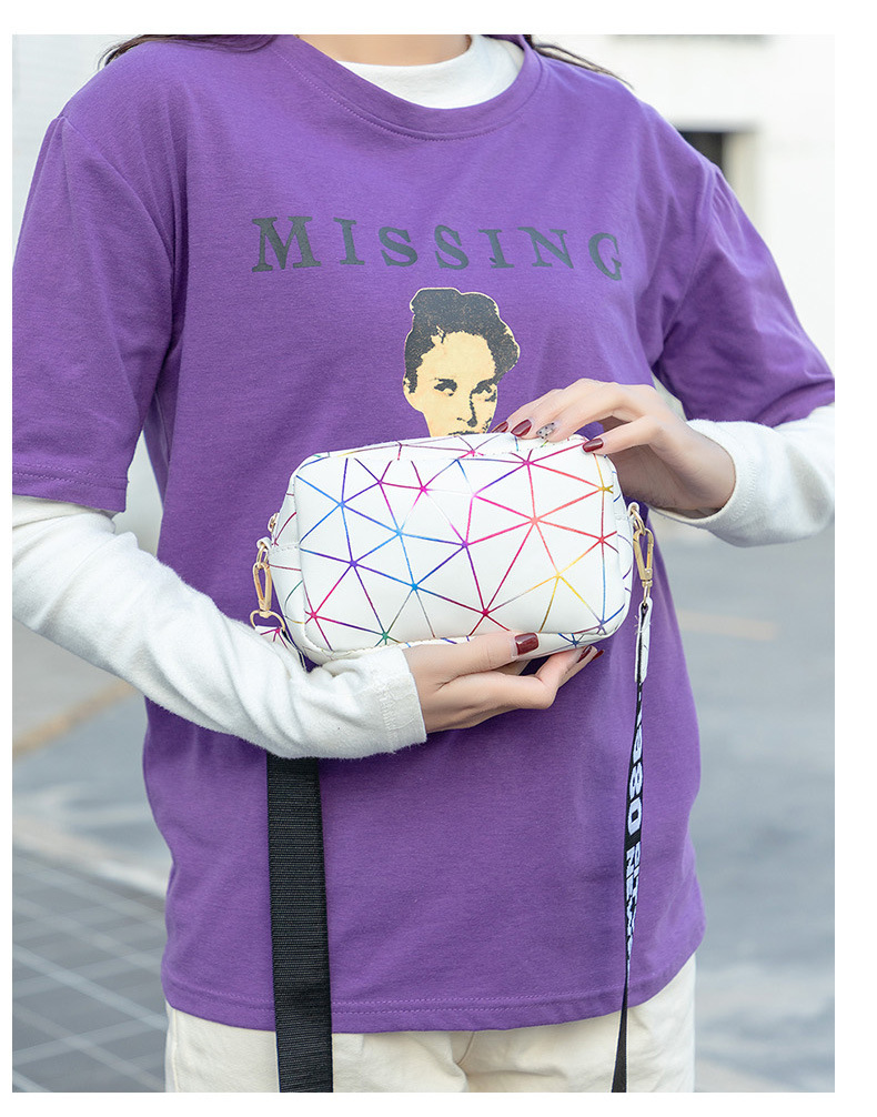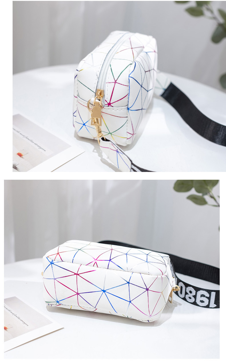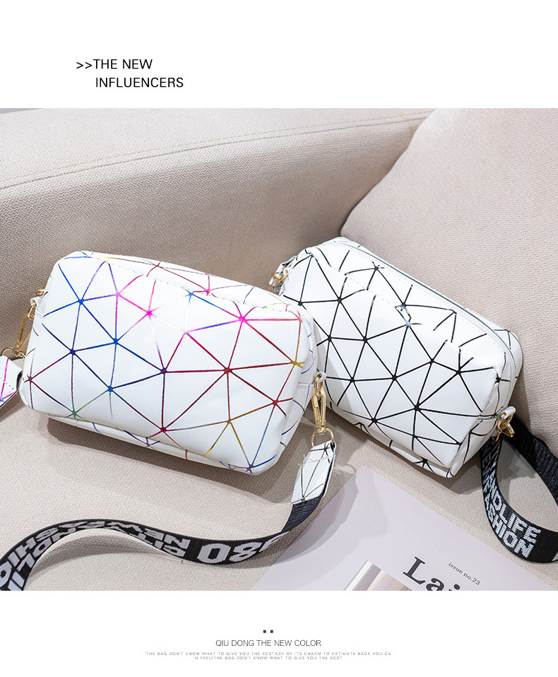 다채로운 방사선 기하학적 인쇄 2023 새로운 패션 트렌드 여성 가방 편지 어깨 스트랩 카메라 가방