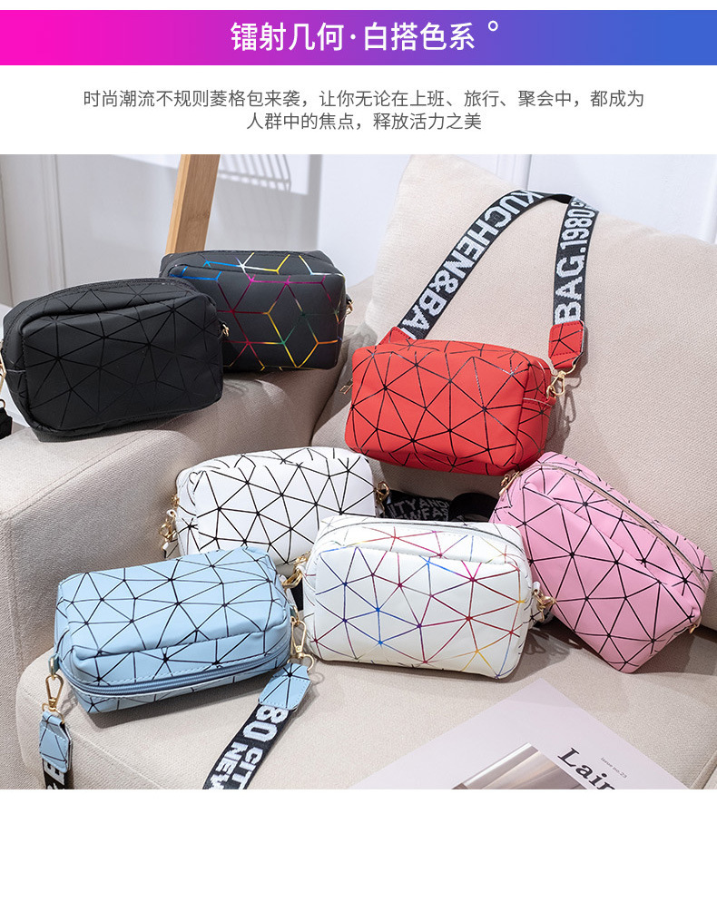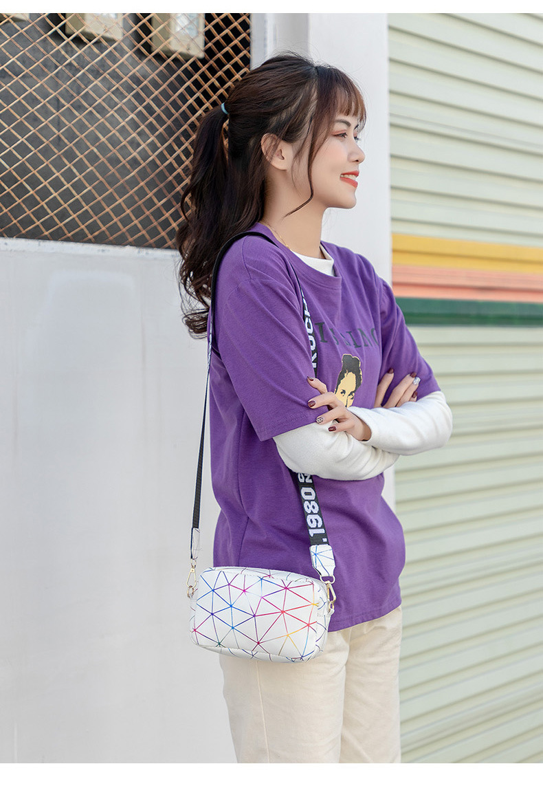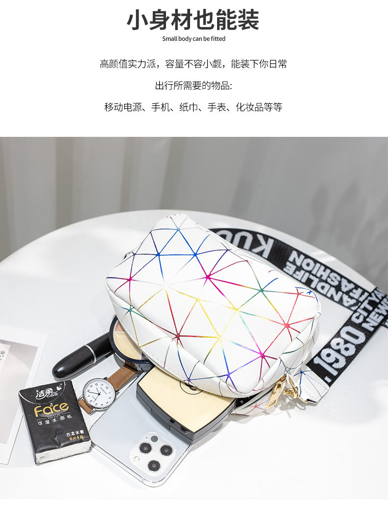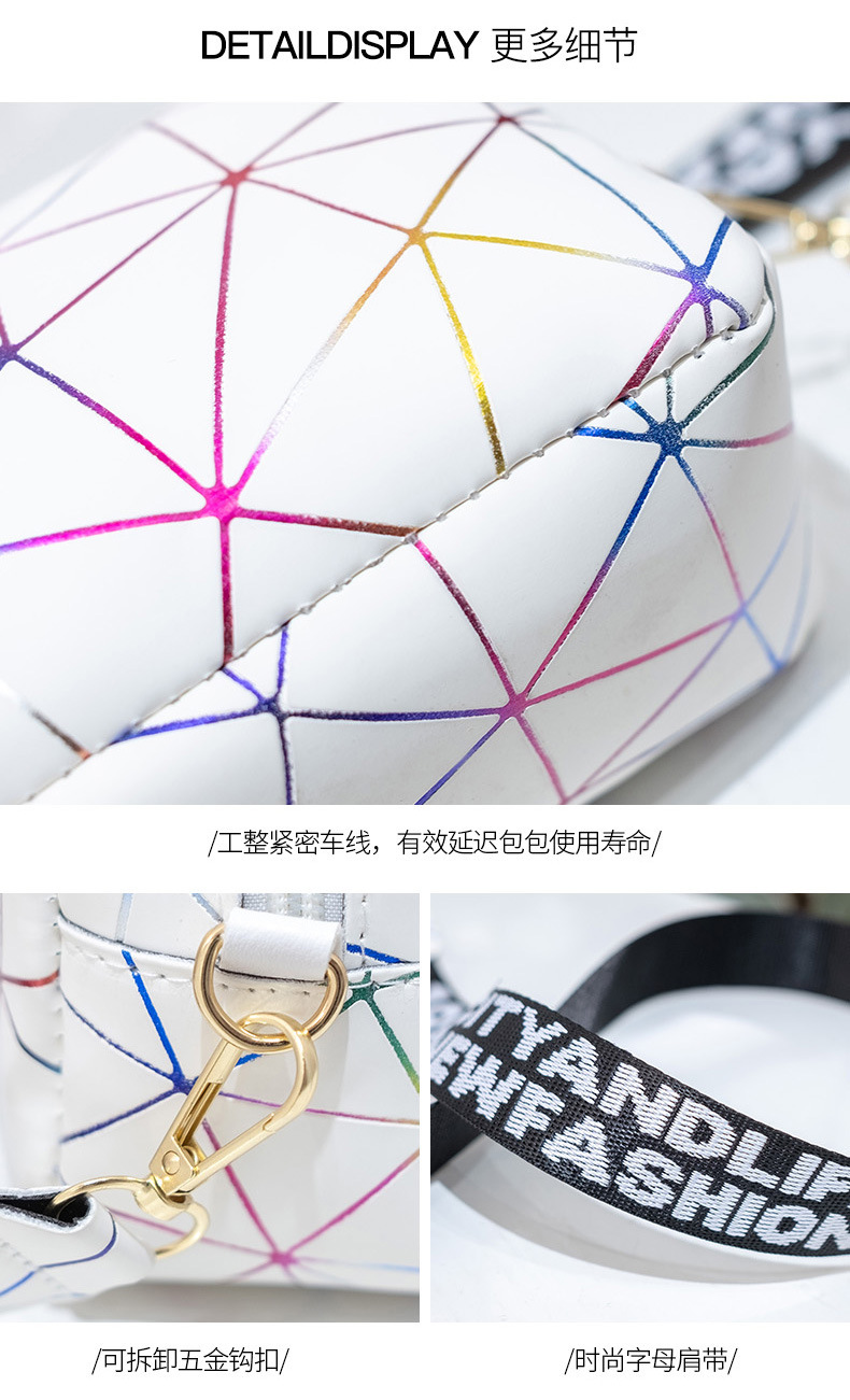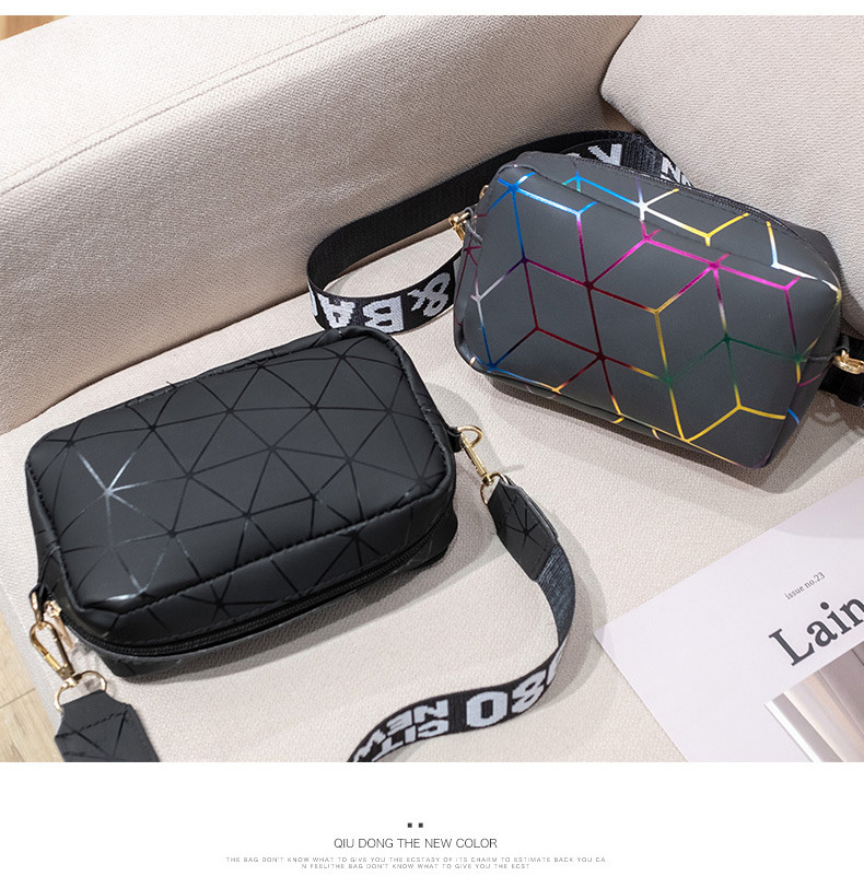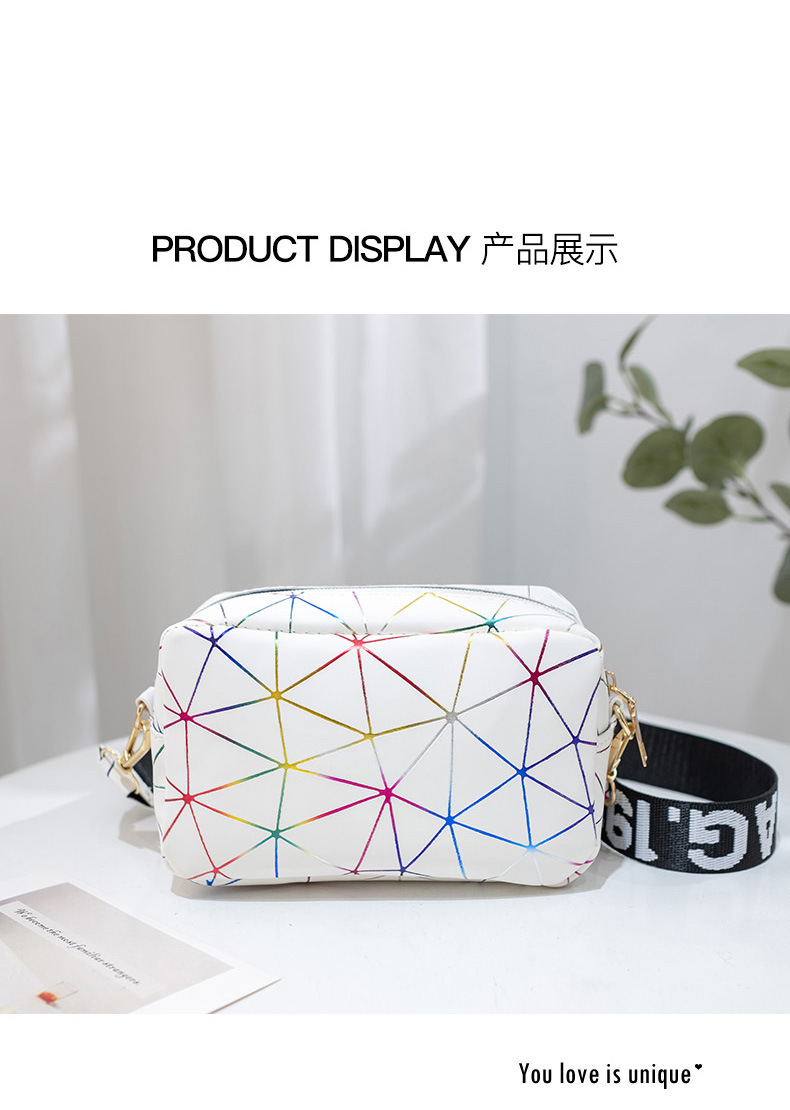 다채로운 방사선 기하학적 인쇄 2023 새로운 패션 트렌드 여성 가방 편지 어깨 스트랩 카메라 가방