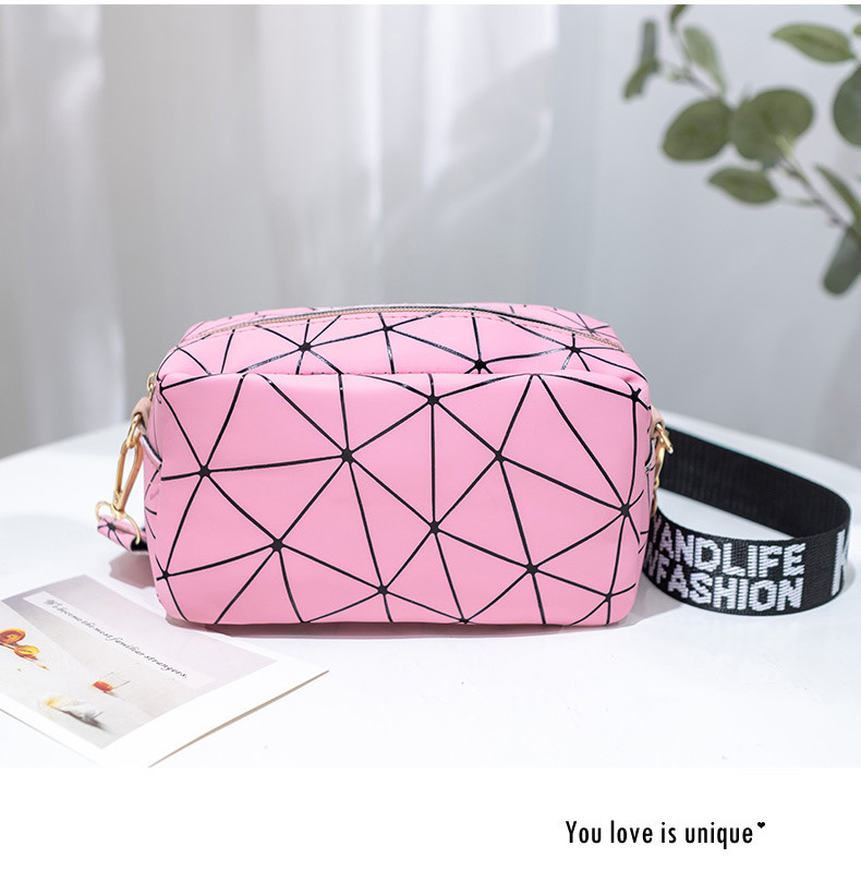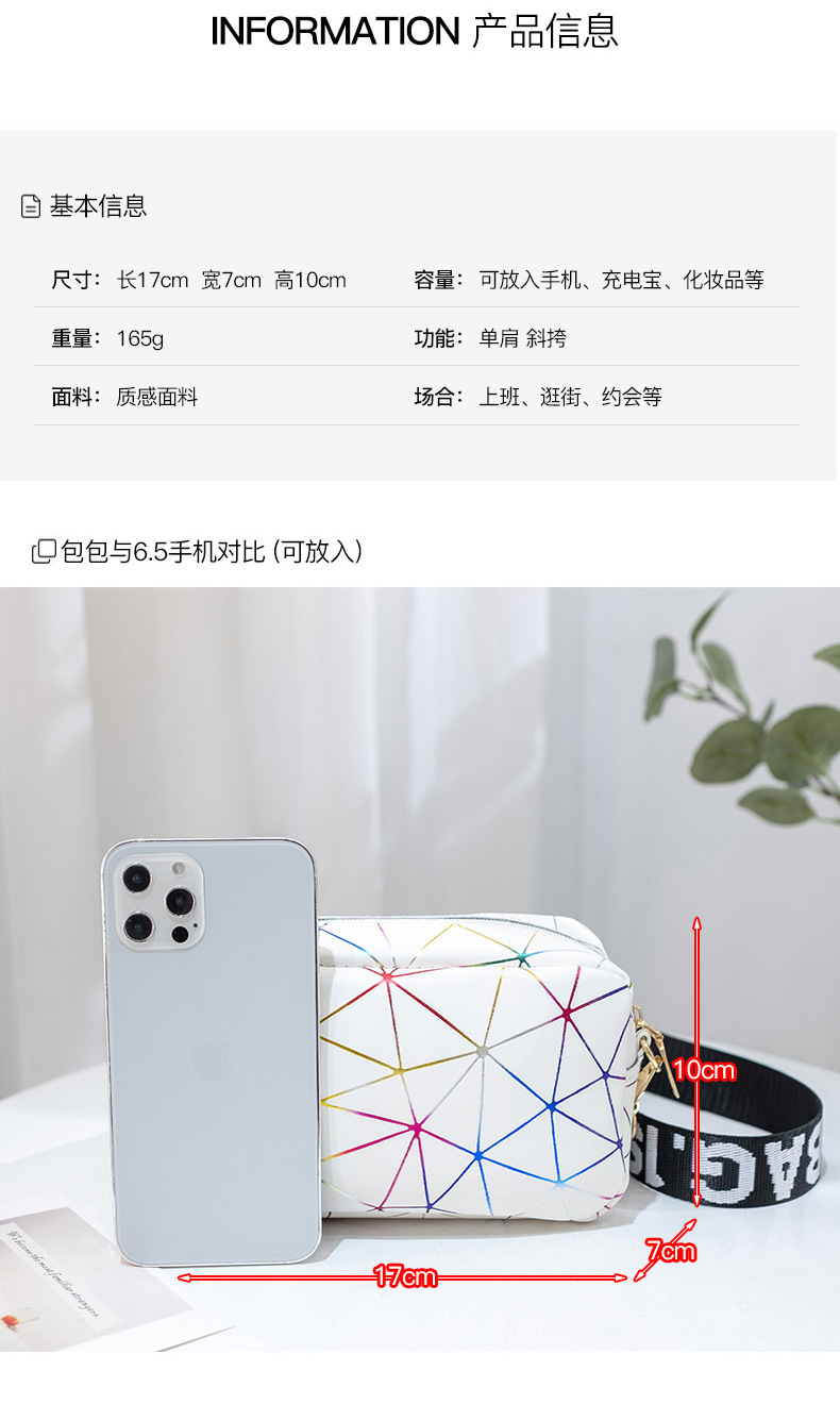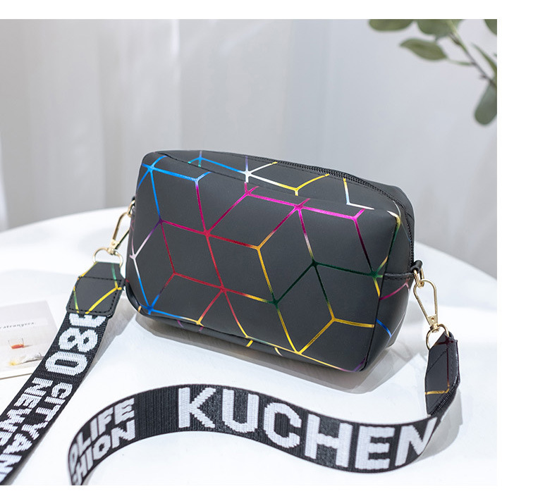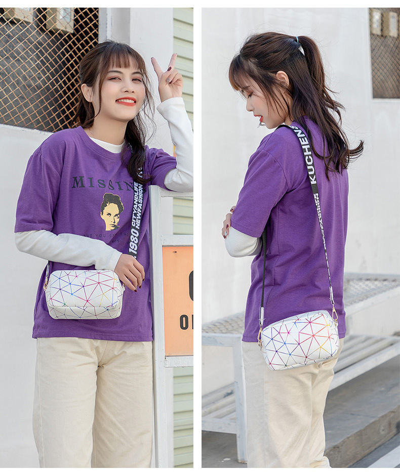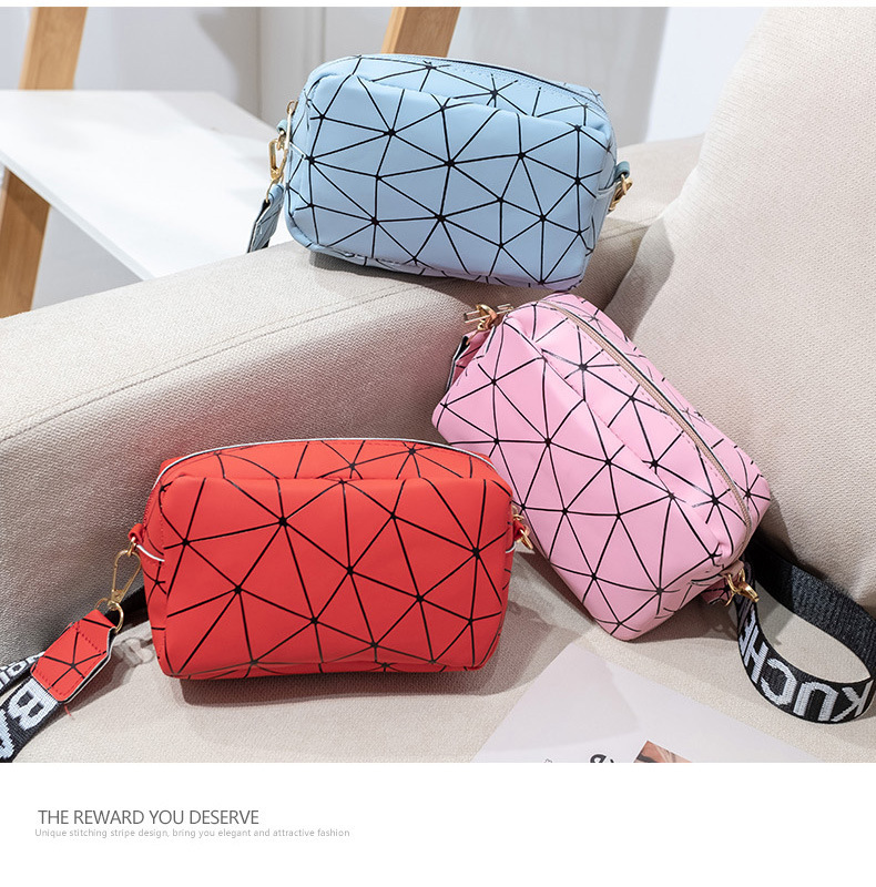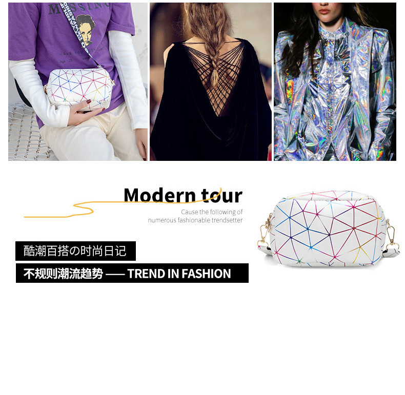 다채로운 방사선 기하학적 인쇄 2023 새로운 패션 트렌드 여성 가방 편지 어깨 스트랩 카메라 가방