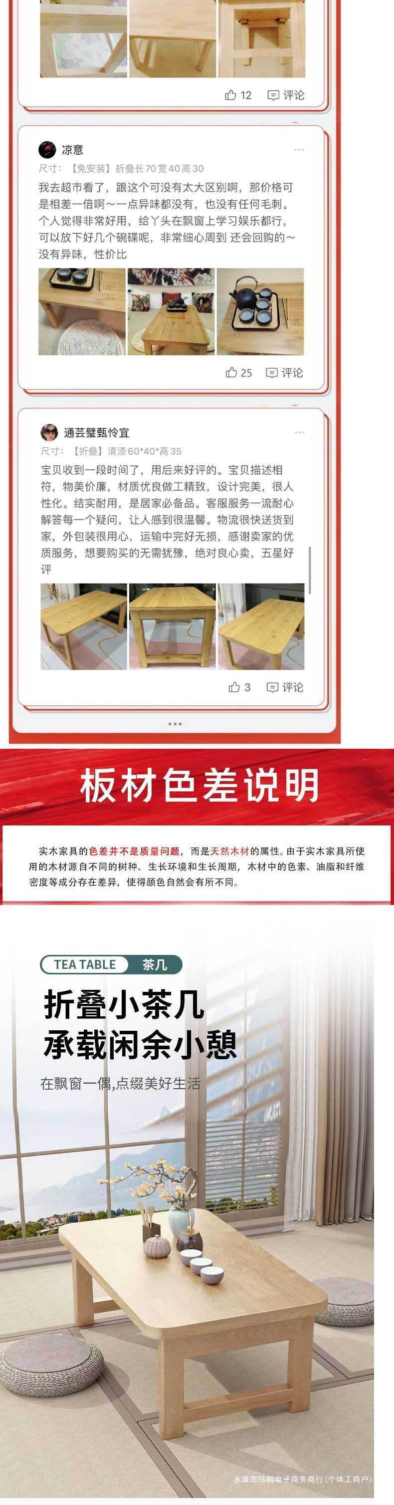 접이식 테이블 오크 가정용 단단한 나무 다다미 작은 커피 테이블 베드 창 테이블 침대 학습 테이블 컴퓨터 낮은 테이블스토어 가기