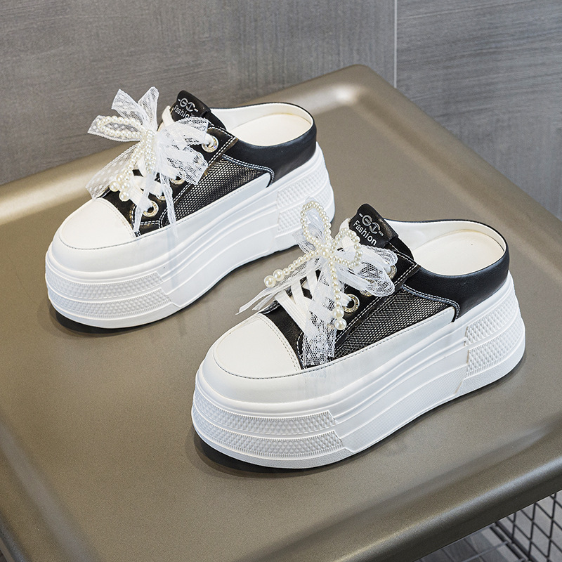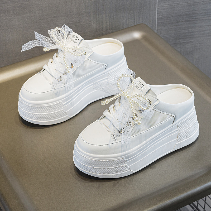 바오터우 하프 슬리퍼 여자 2025 년 여름 새 스타일 통기성 메쉬 올 매치 9CM 두꺼운 싱글 힐프리 화이트 슈즈