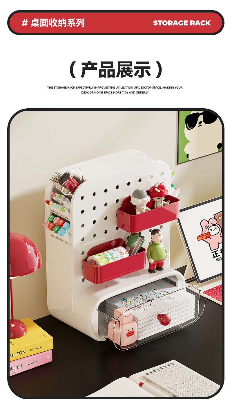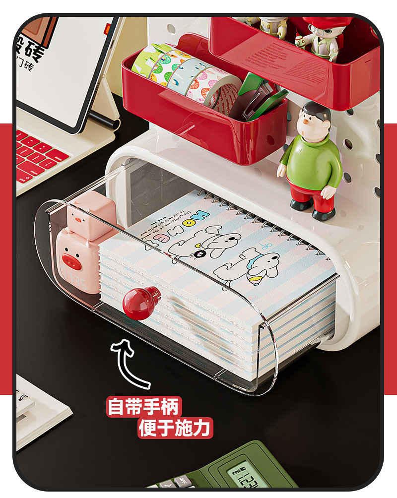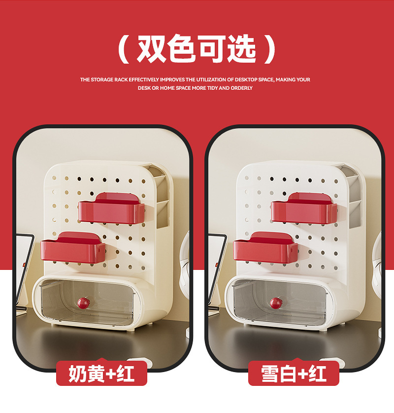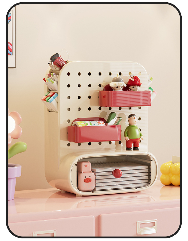 桌面洞洞板收纳盒抽屉式办公室工位神器学生书桌上文具整理置物架
