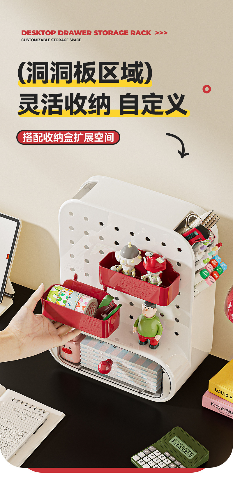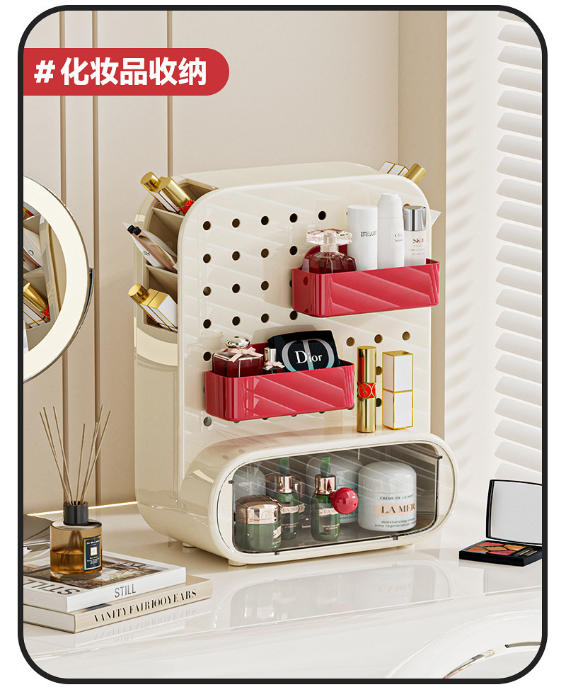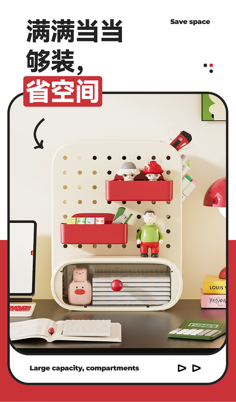 桌面洞洞板收纳盒抽屉式办公室工位神器学生书桌上文具整理置物架