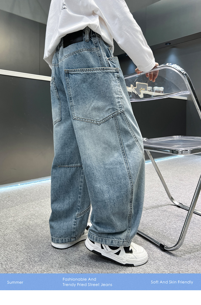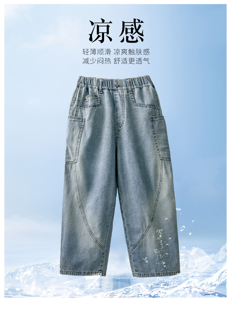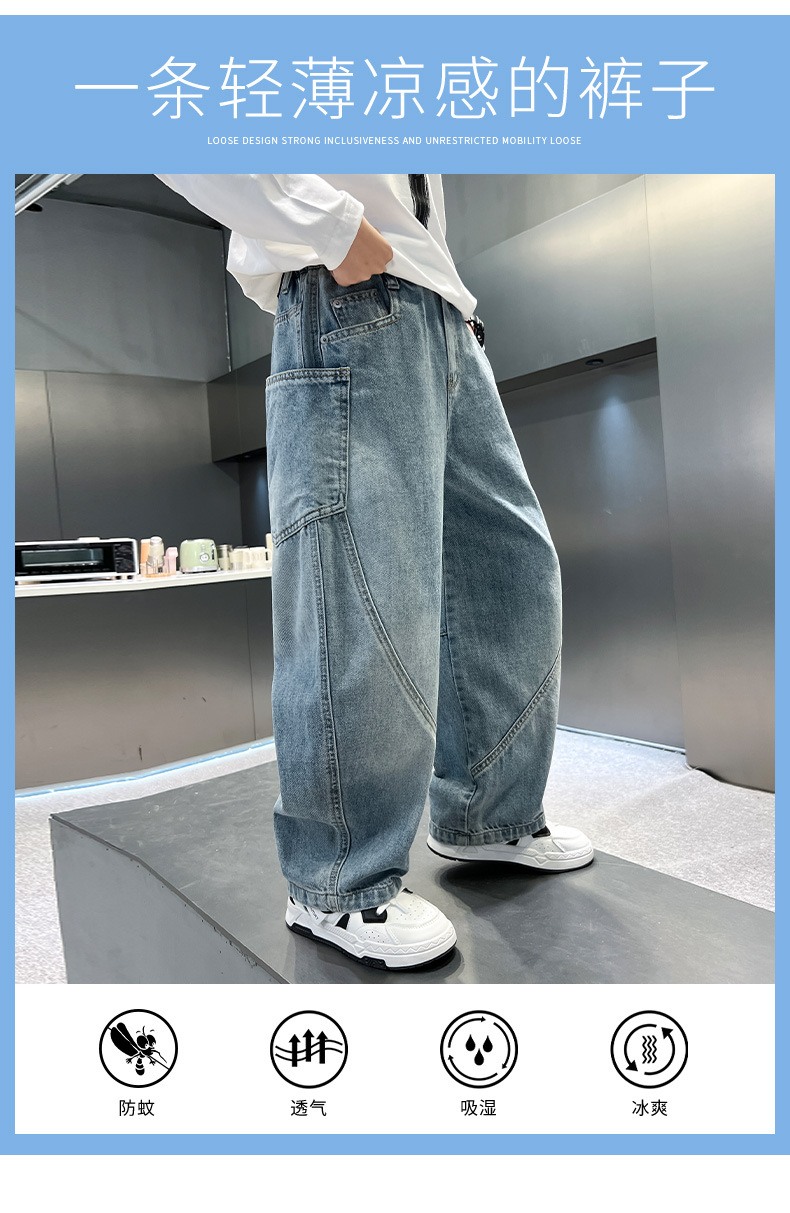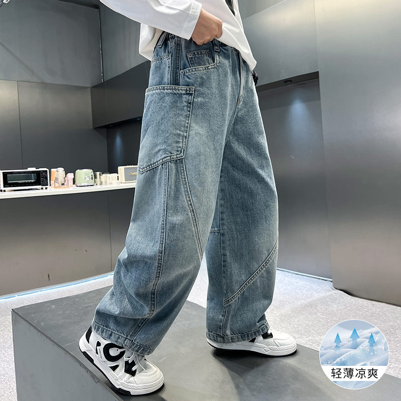2025년 신상 여름 남아 청바지, 가볍고 통기성이 좋은 아동용 중대형 아동 캐주얼 긴바지, 얇은 모기 방지 바지스토어 가기