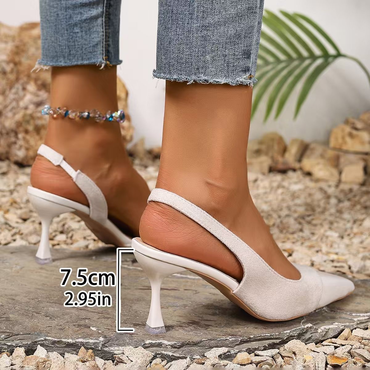 2025년 여름 신상 크로스보더 뾰족한 발가락 뒷면이 빈 원라인 슬립온 솔리드 컬러 대형 여성용 스틸레토 샌들